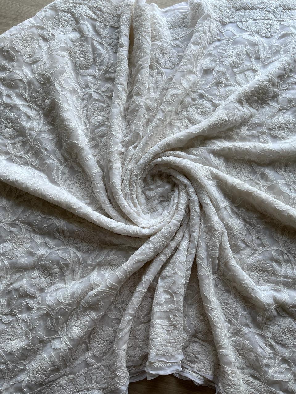 All Over Fine Chikankari Semi Georgette Saree