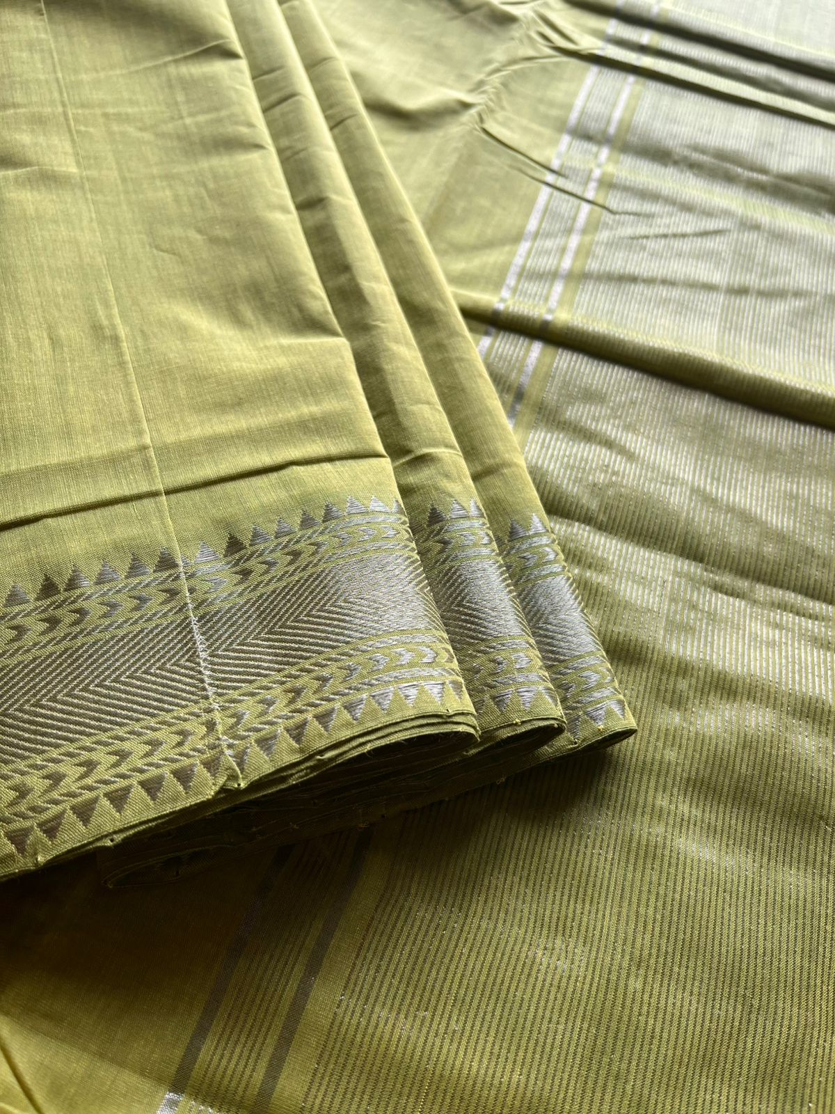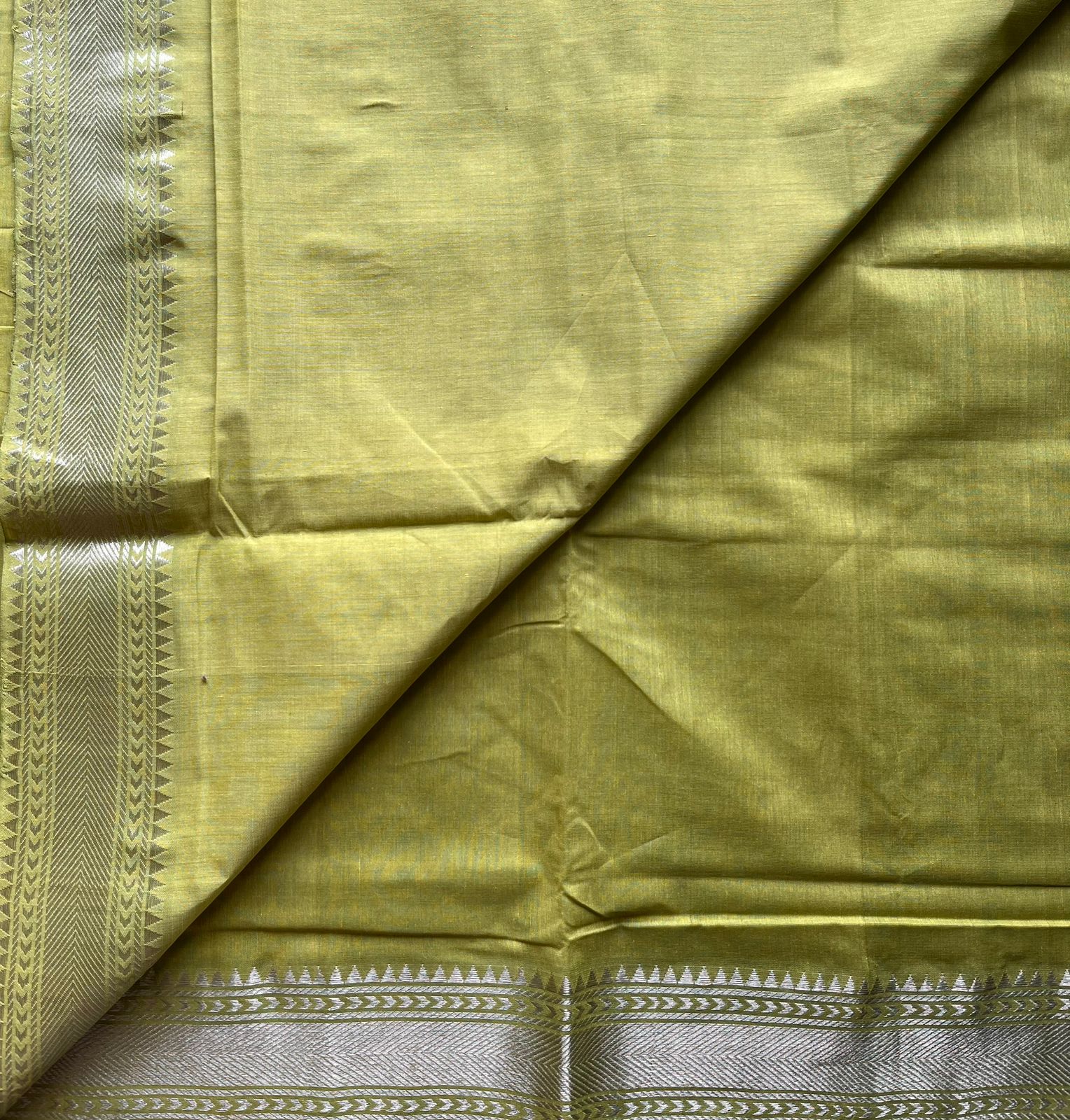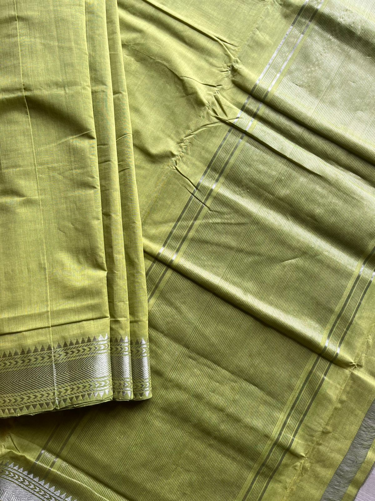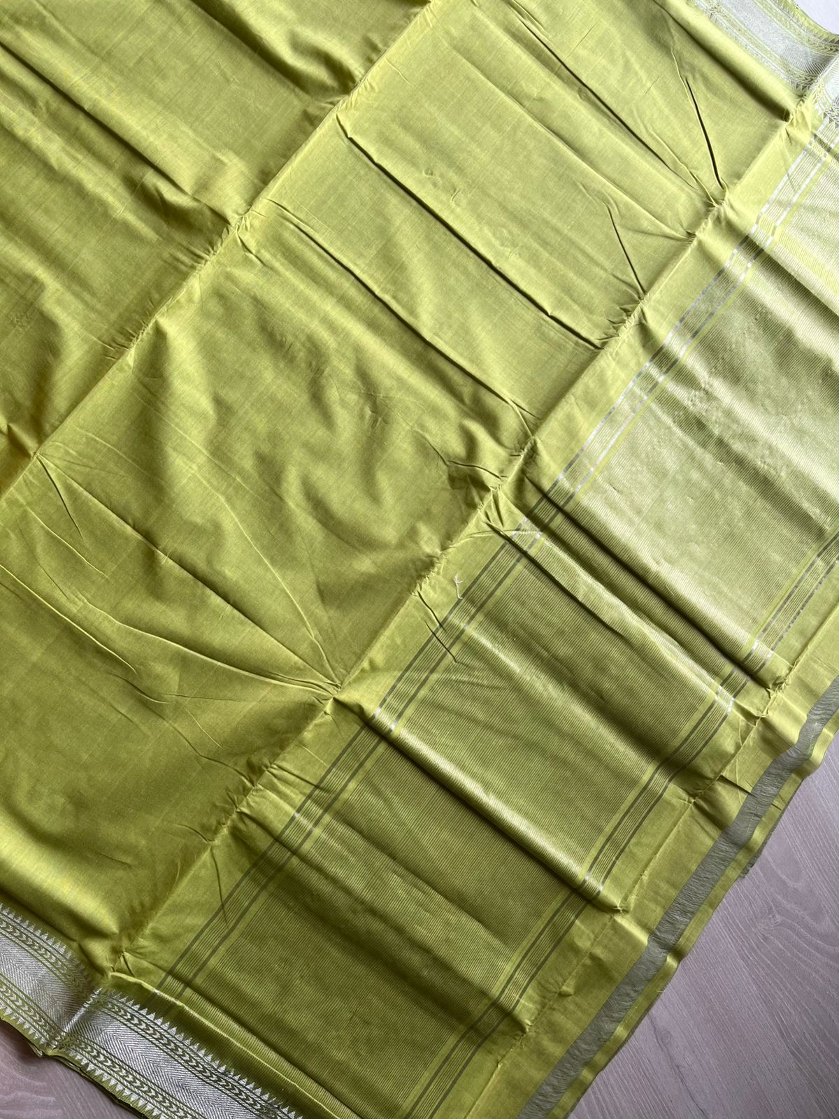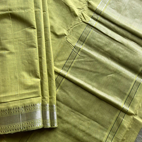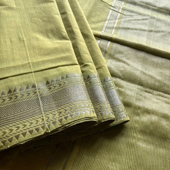 Apple GreenHandwoven Fine Zari Nizam Border Mangalagiri Cotton Saree