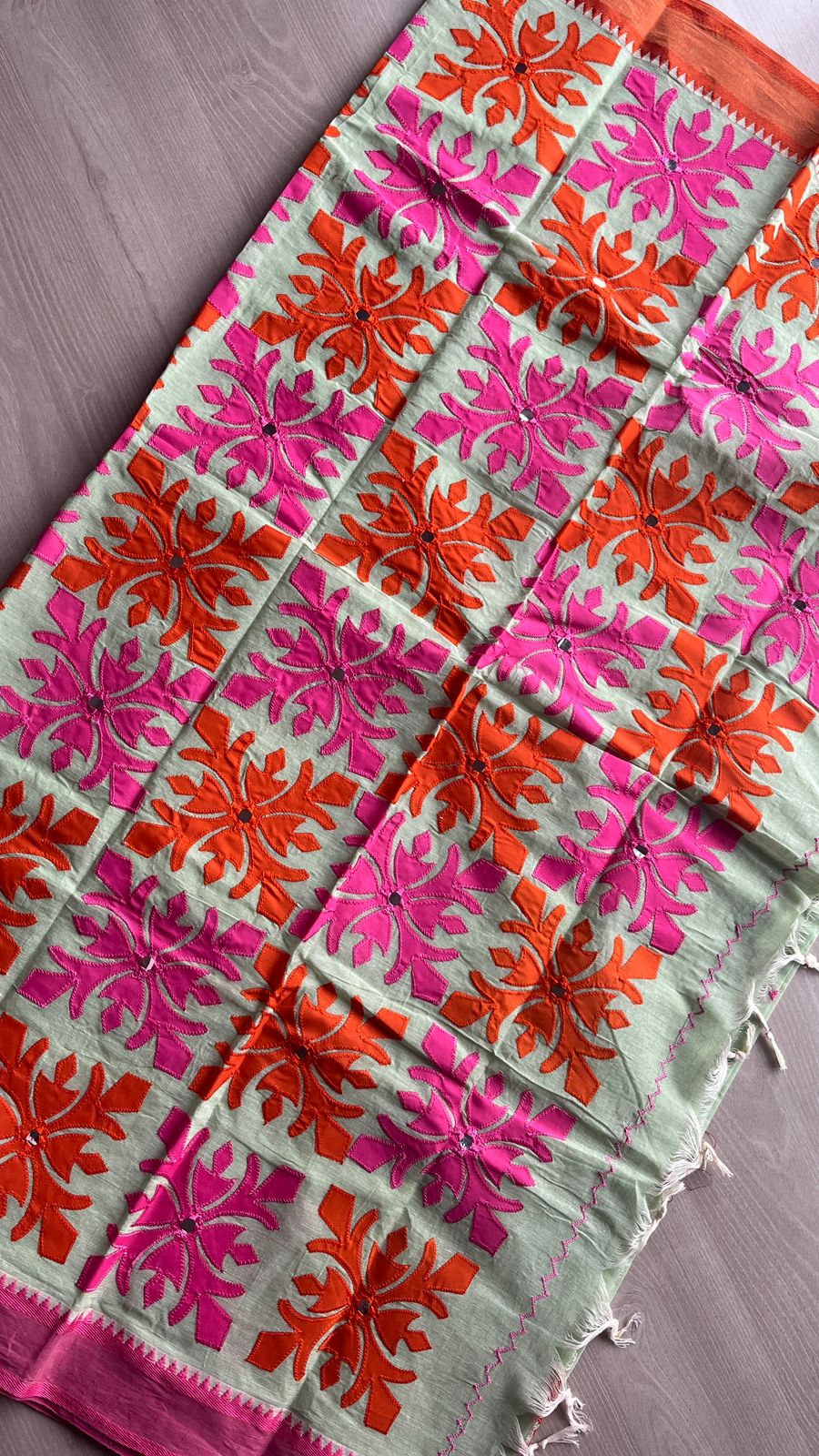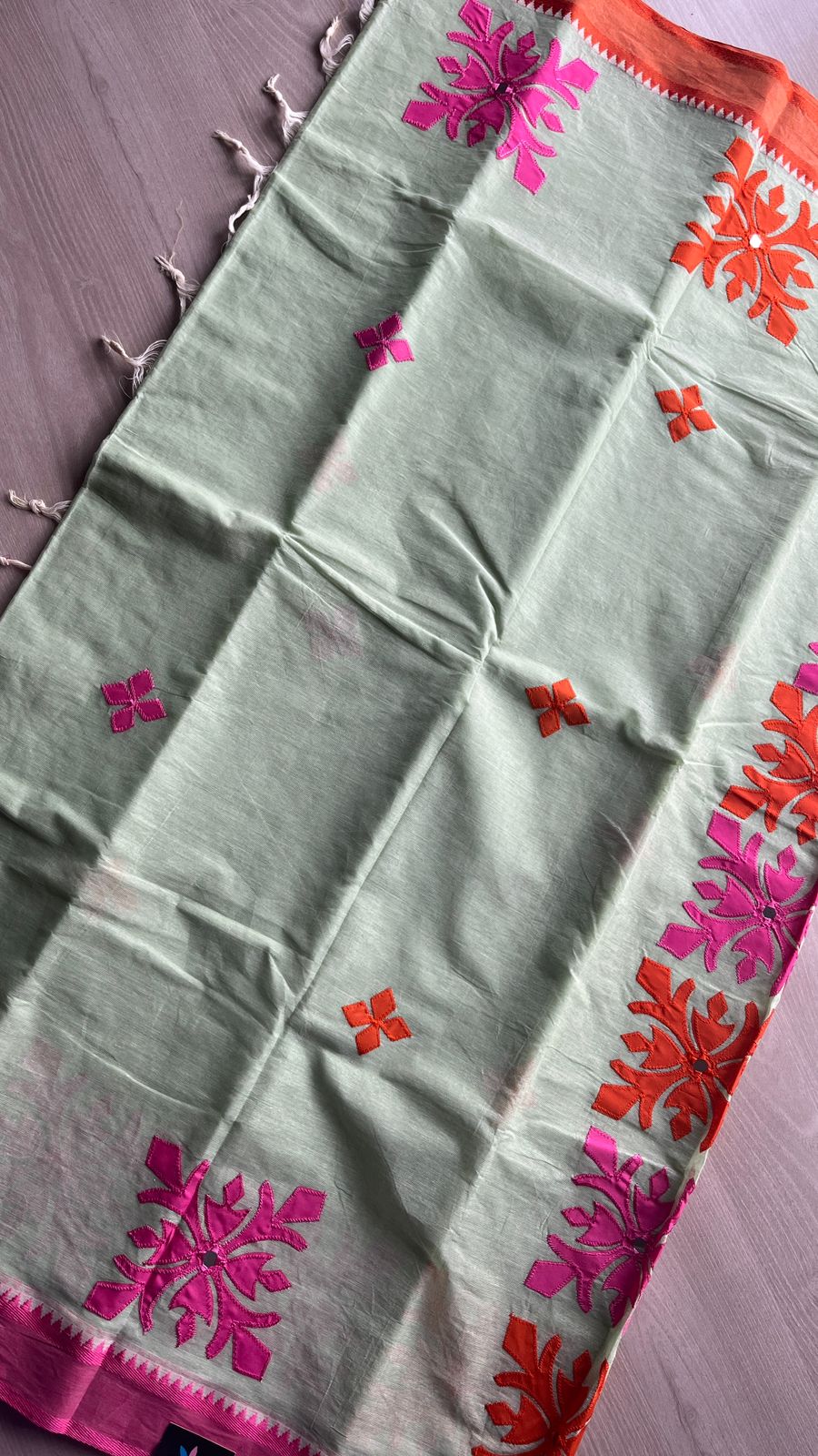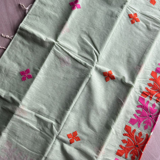 Appliqué work Bengal Cotton Saree (Without blouse) -26133
