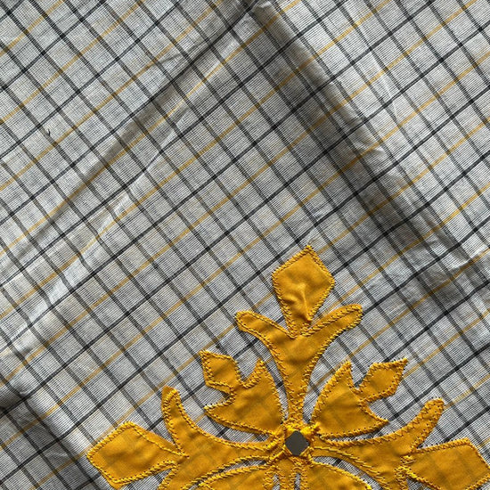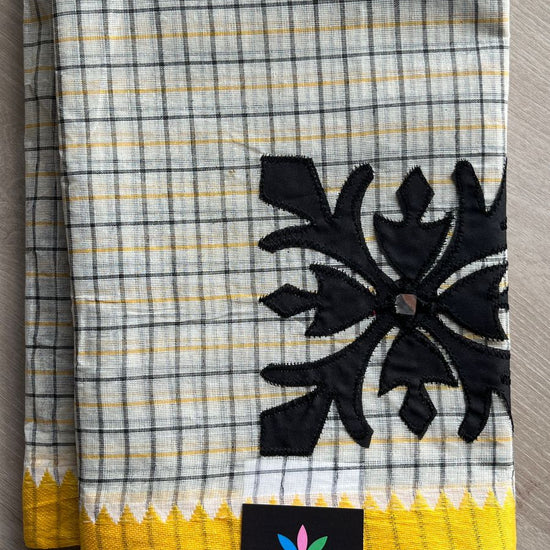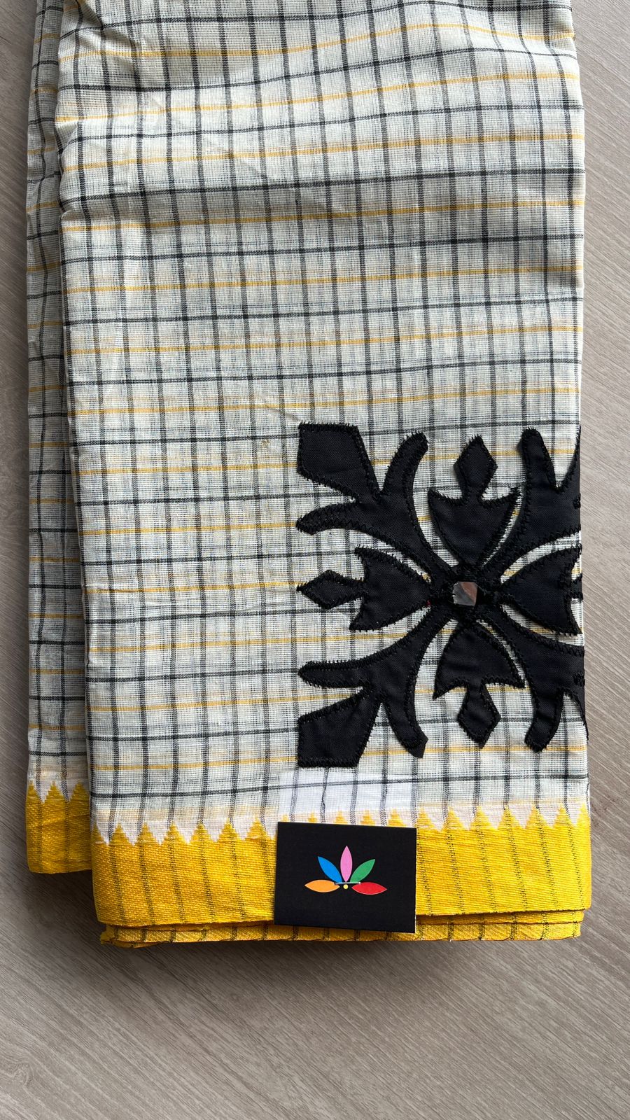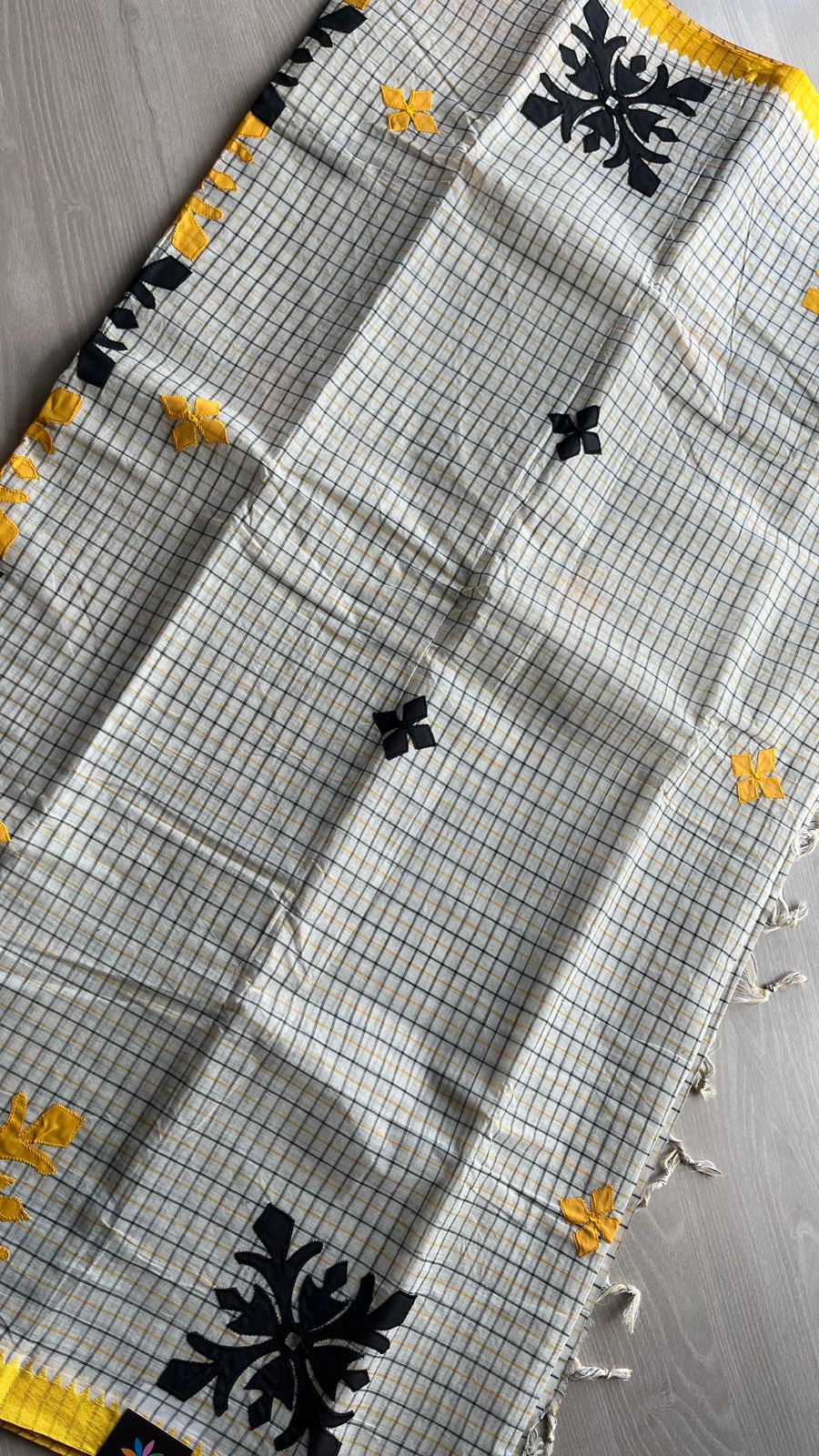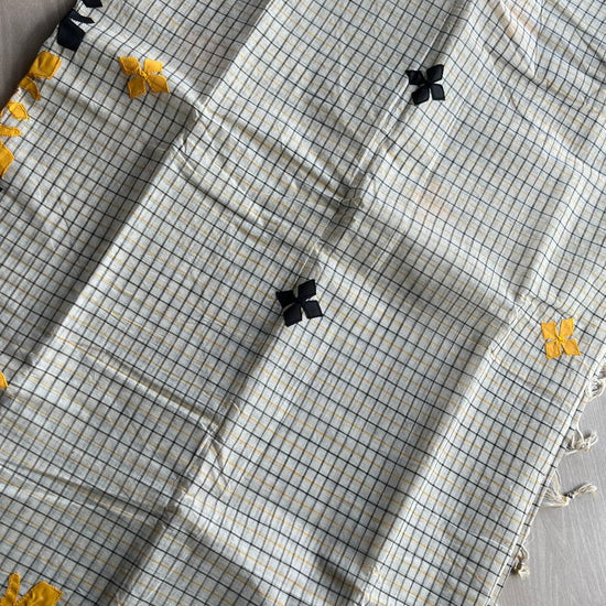 Appliqué work Checked Bengal Cotton Starched Saree -26022