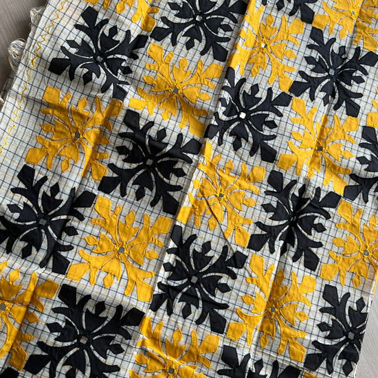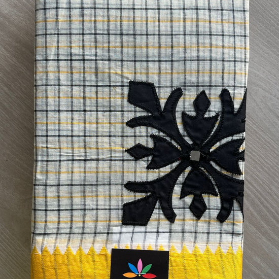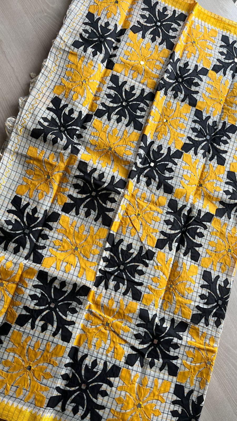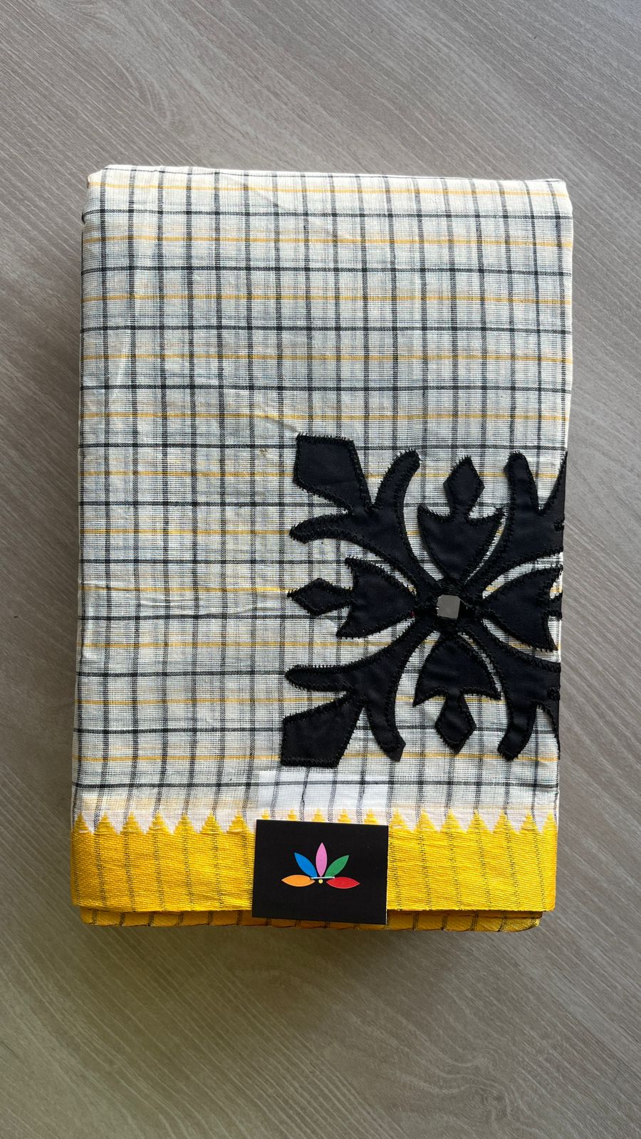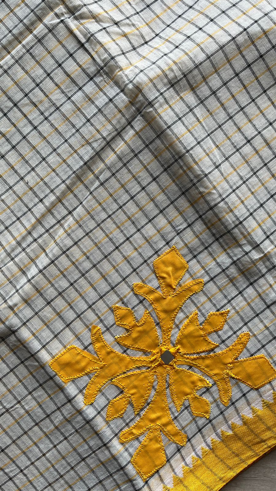 Appliqué work Checked Bengal Cotton Starched Saree -26022