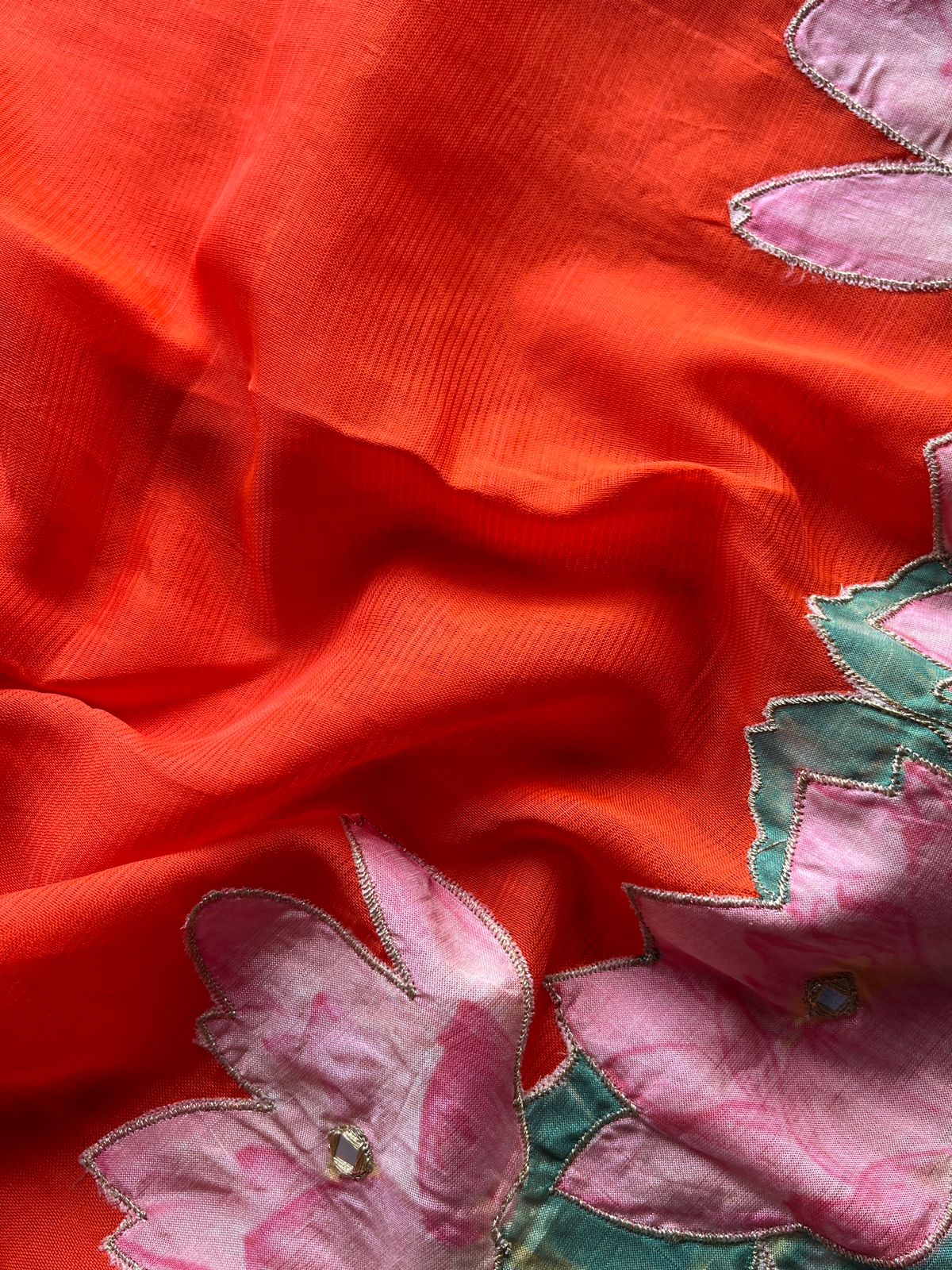 Applique Work Handloom Mangalagiri Silk Cotton Saree