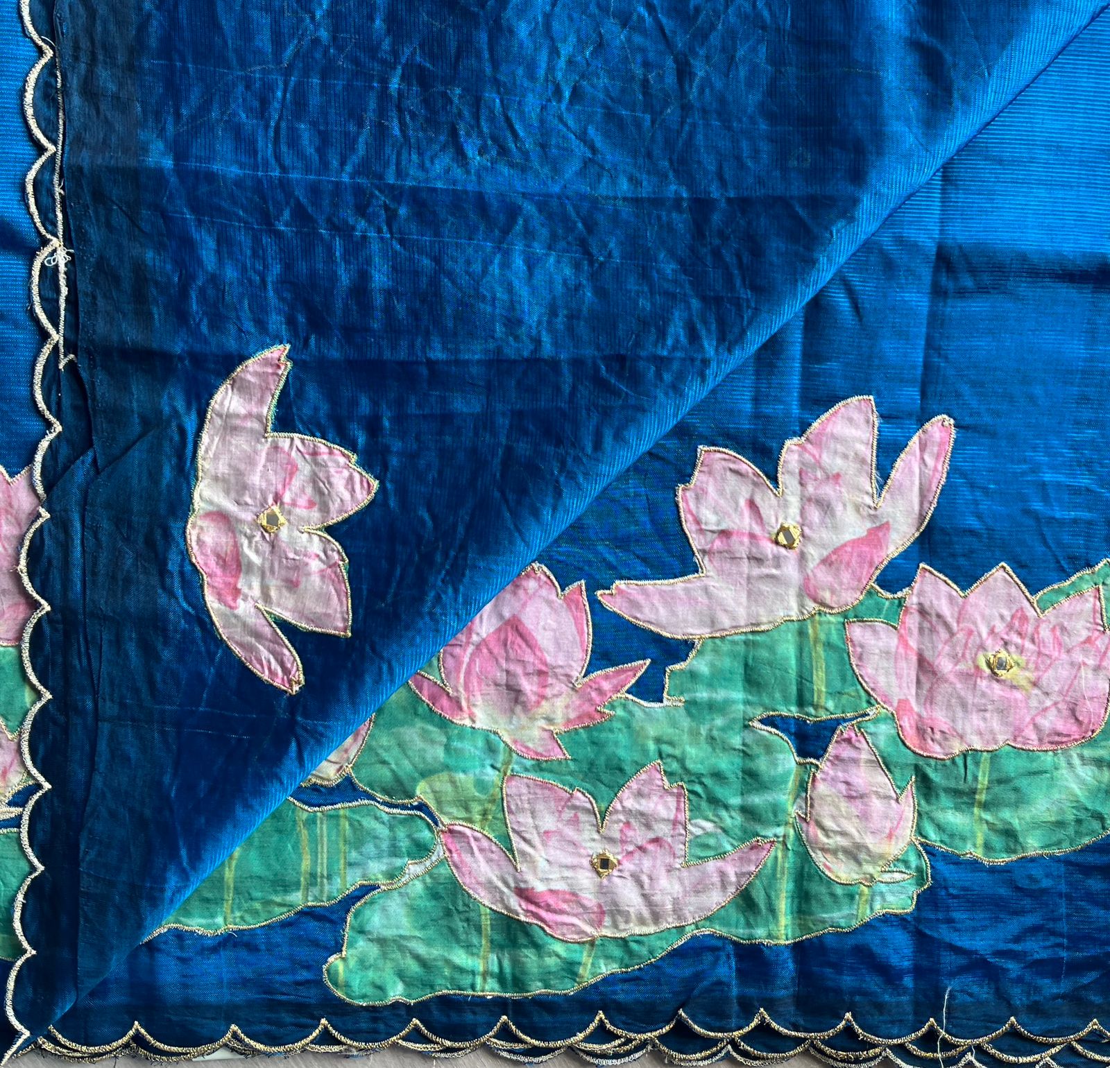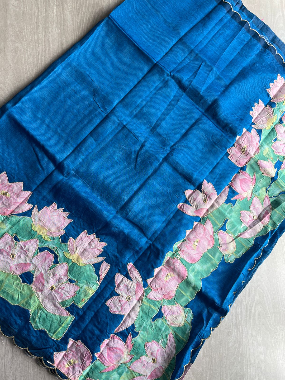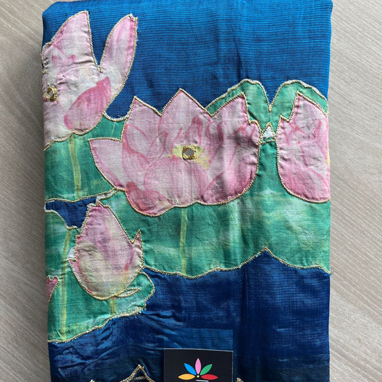 Applique Work Handloom Mangalagiri Silk Cotton Saree -27011