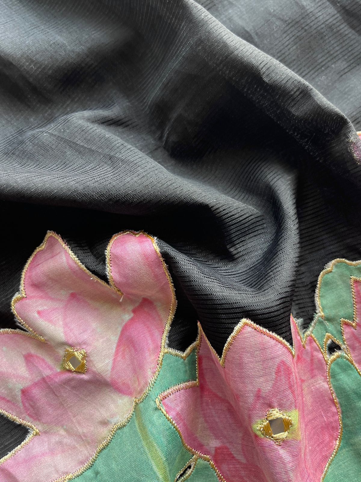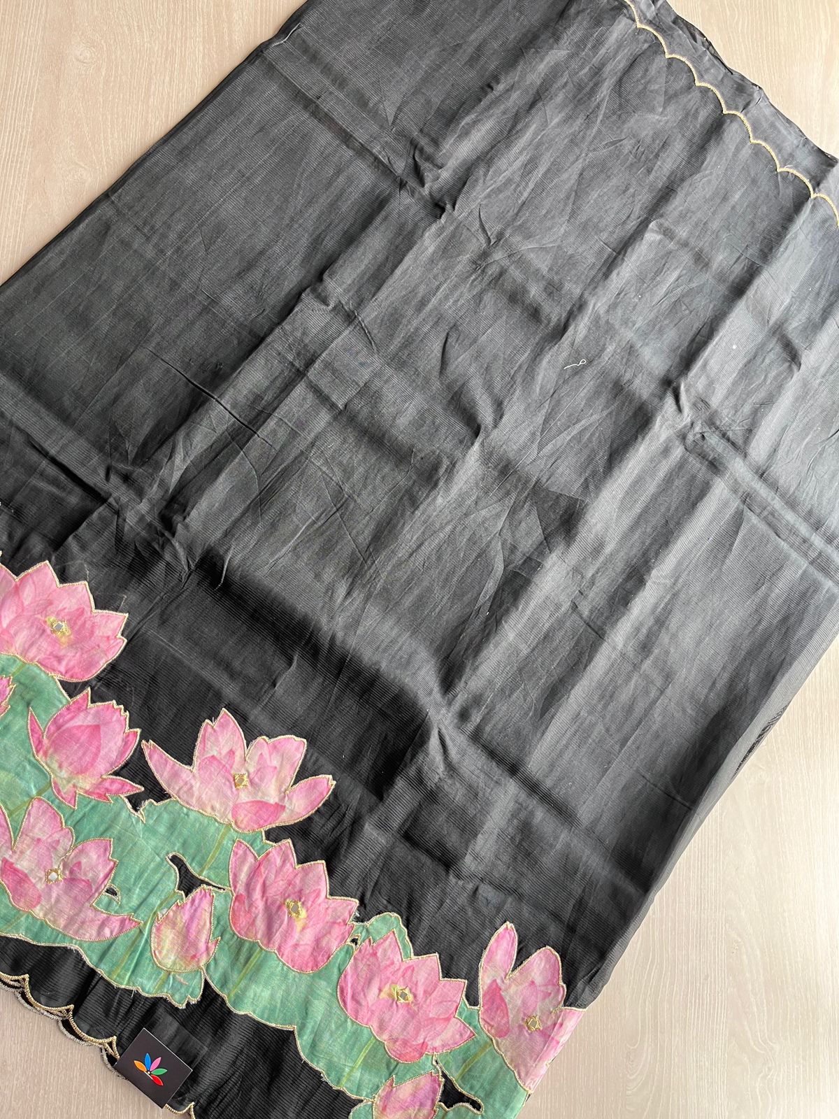 Applique Work Handloom Mangalagiri Silk Cotton Saree -27014