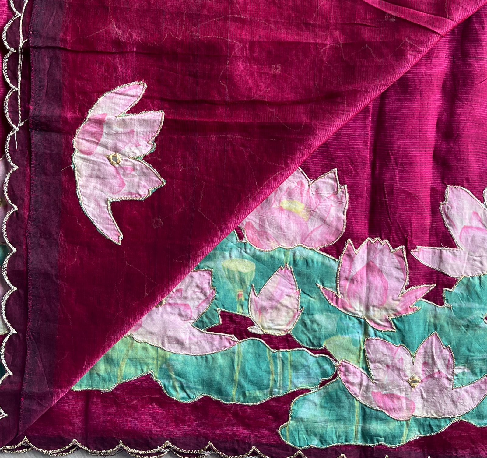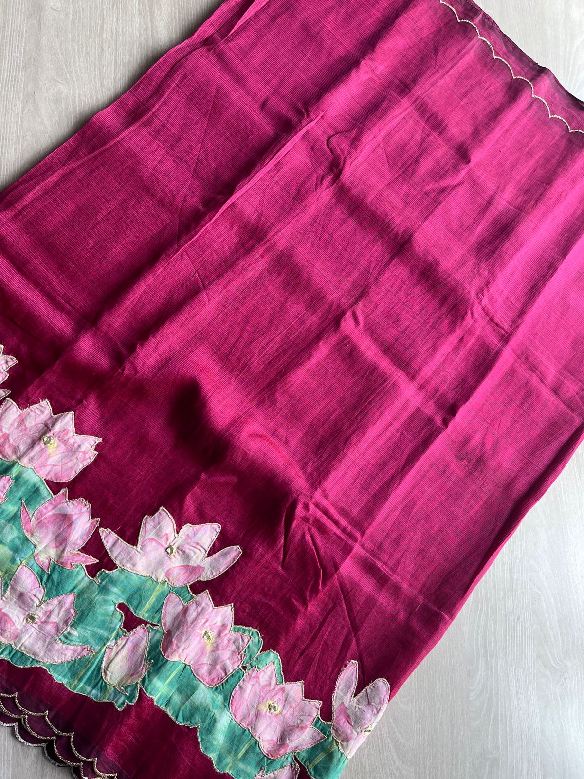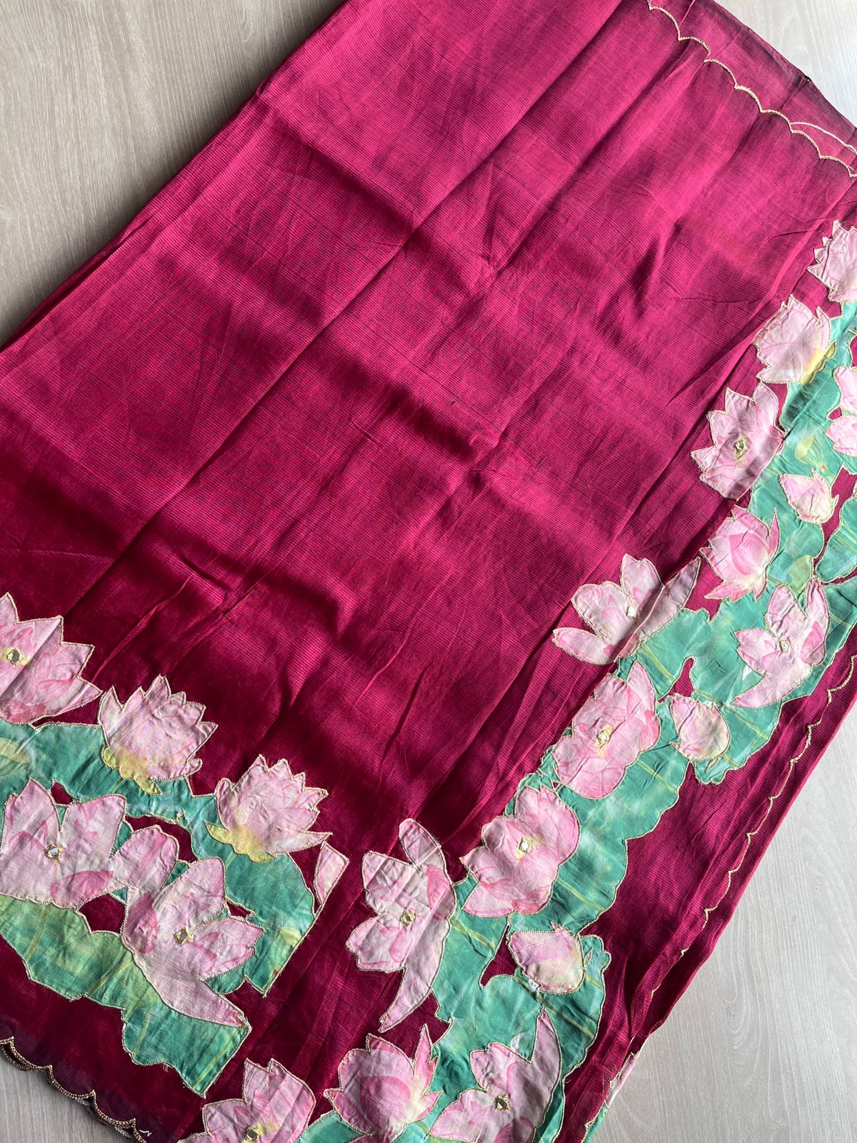 Applique Work Handloom Mangalagiri Silk Cotton Saree