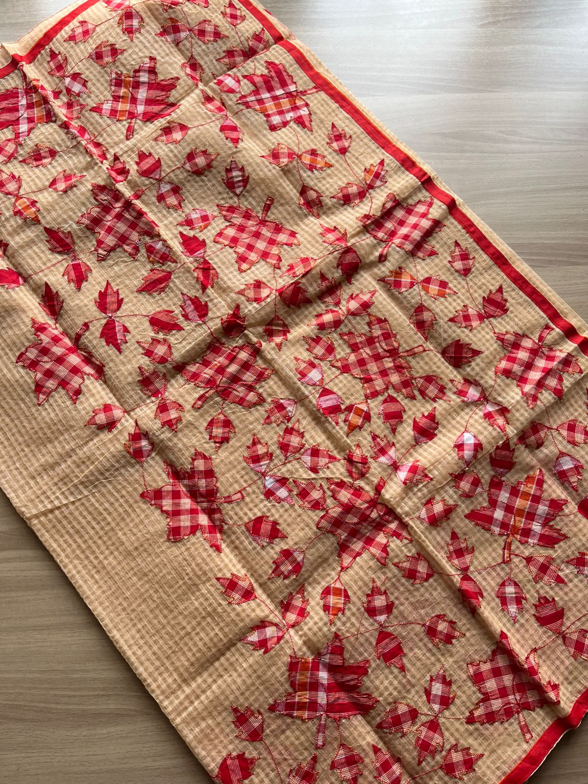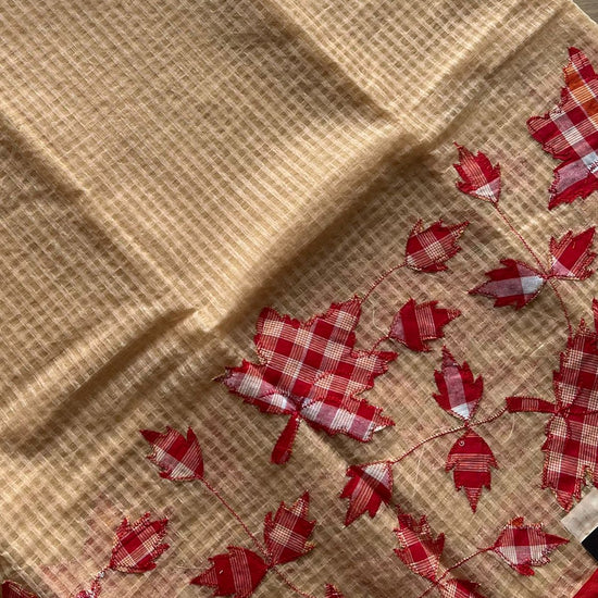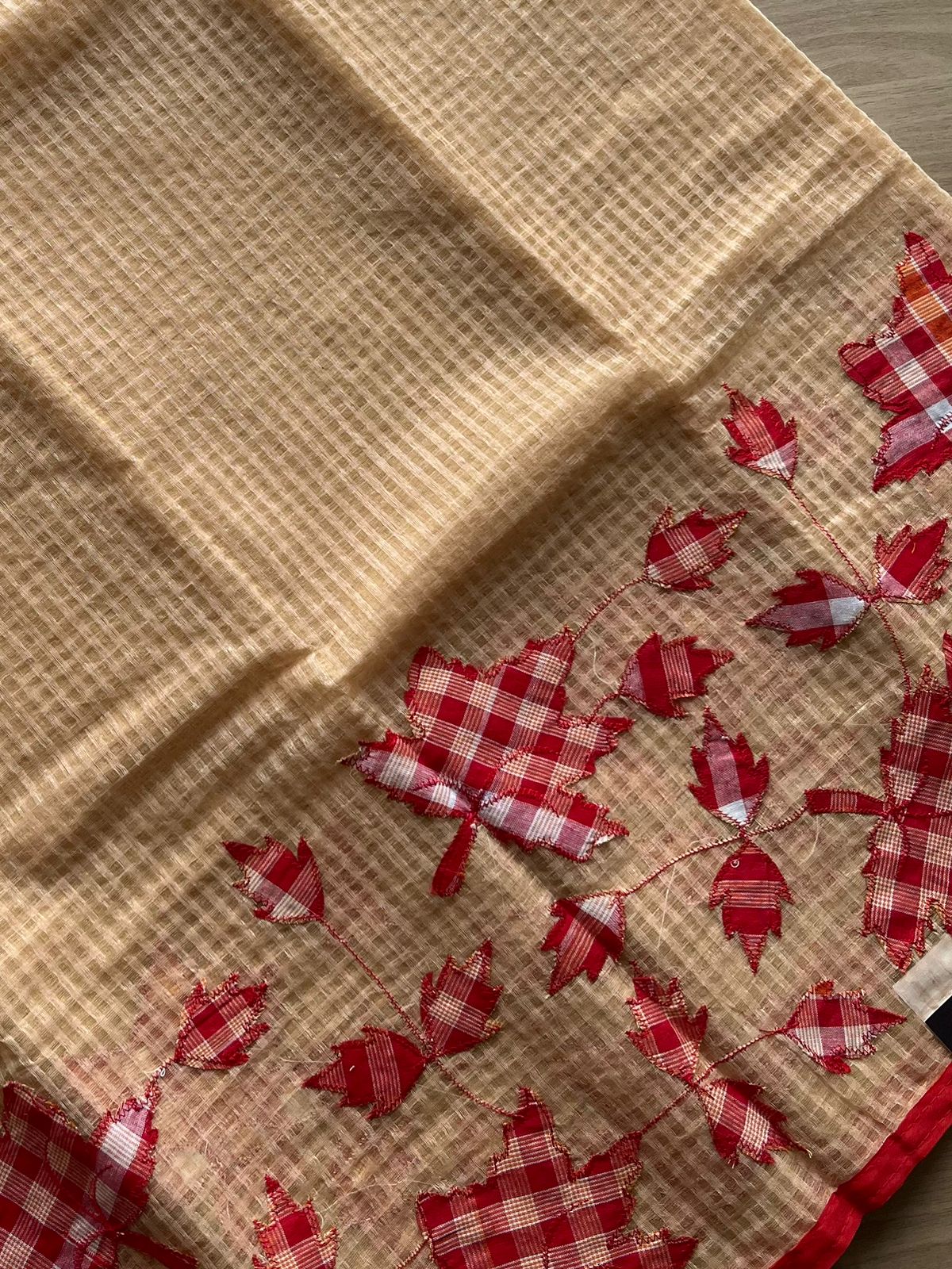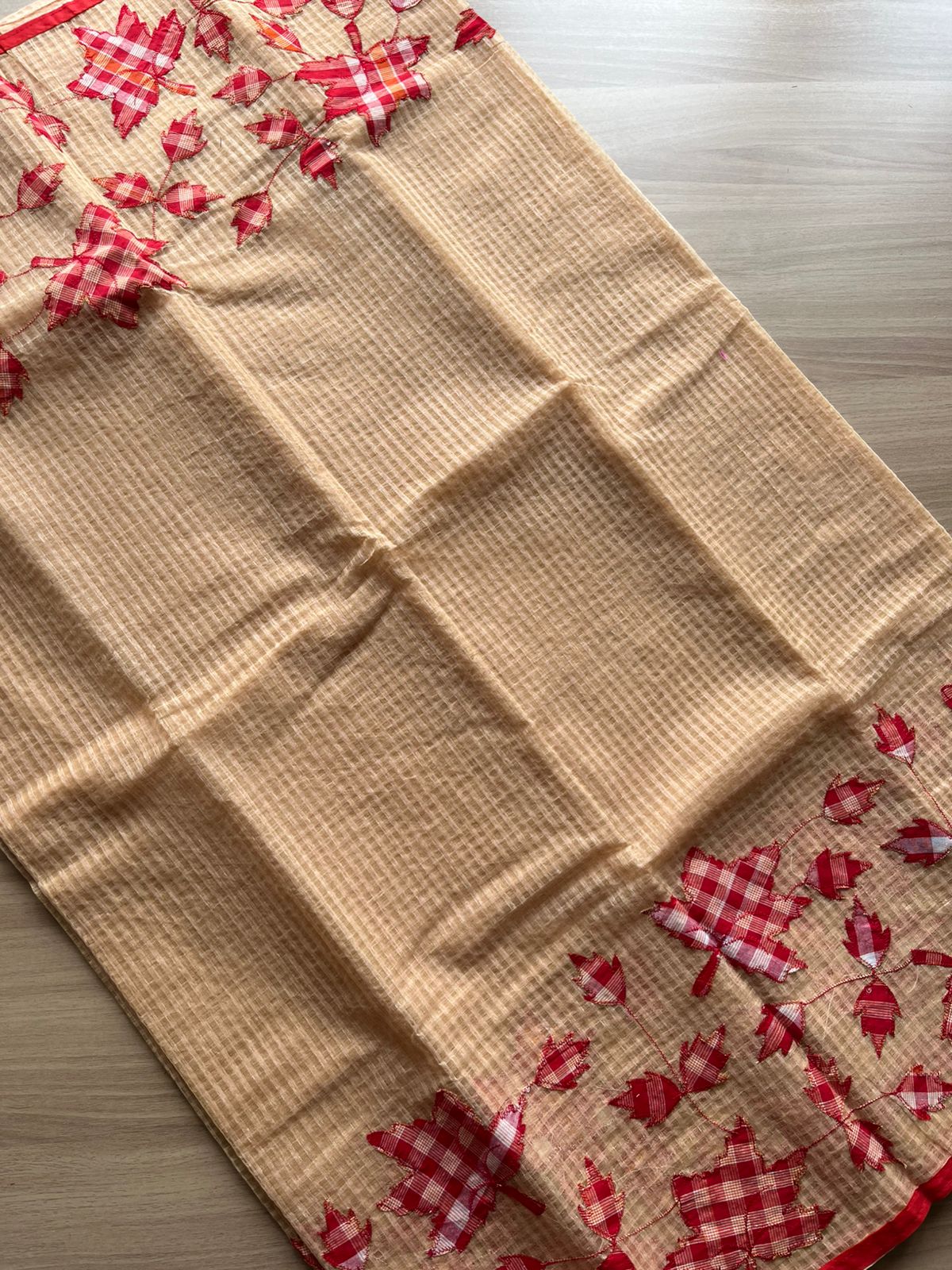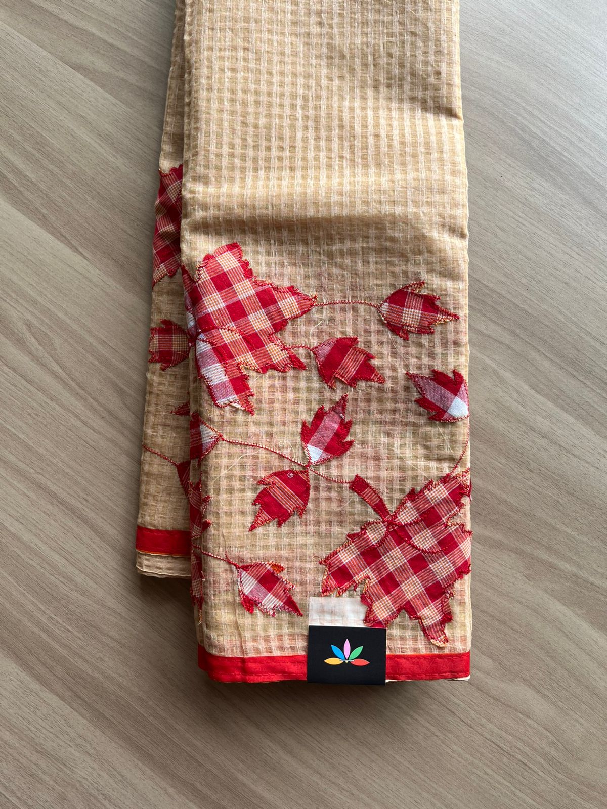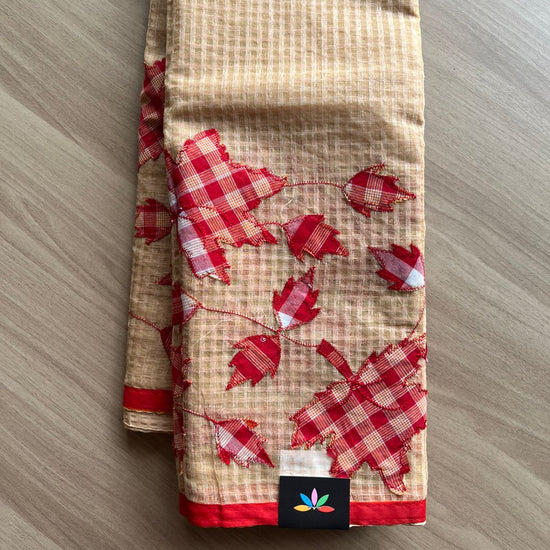 Appliqué work Kota Checks Saree (Without blouse) -22965