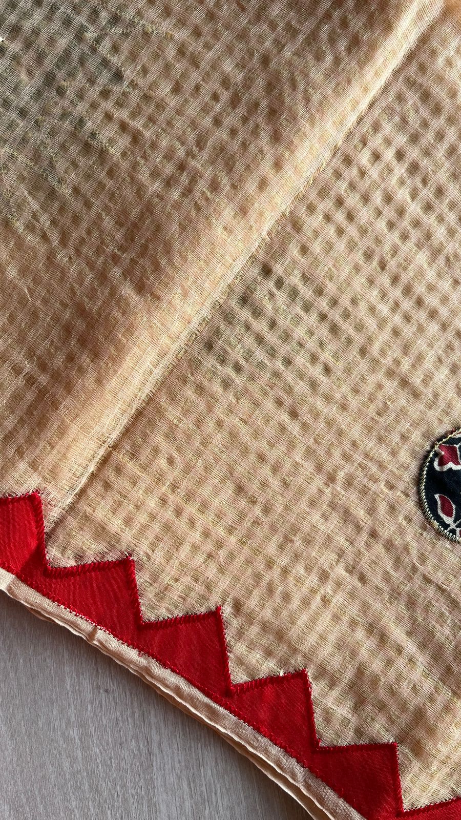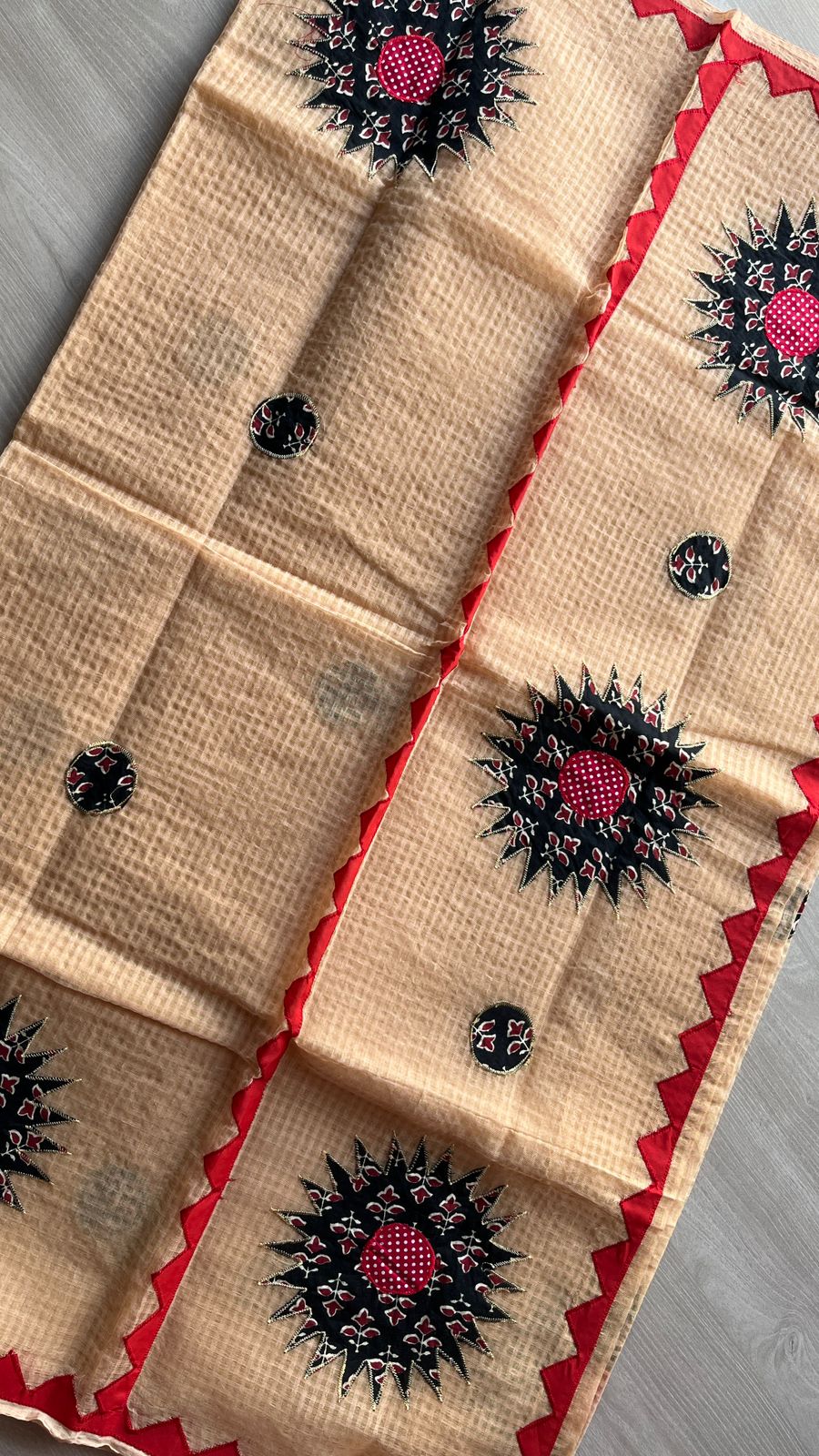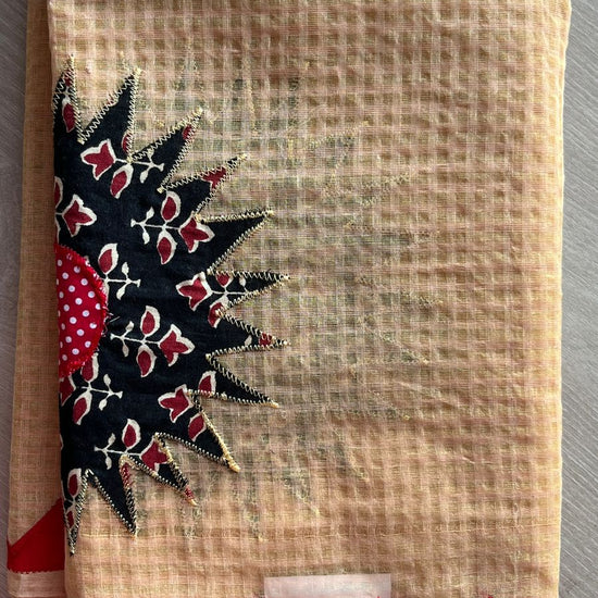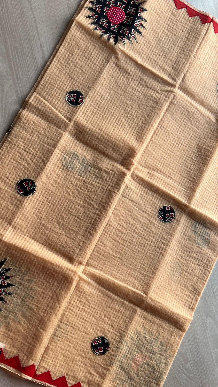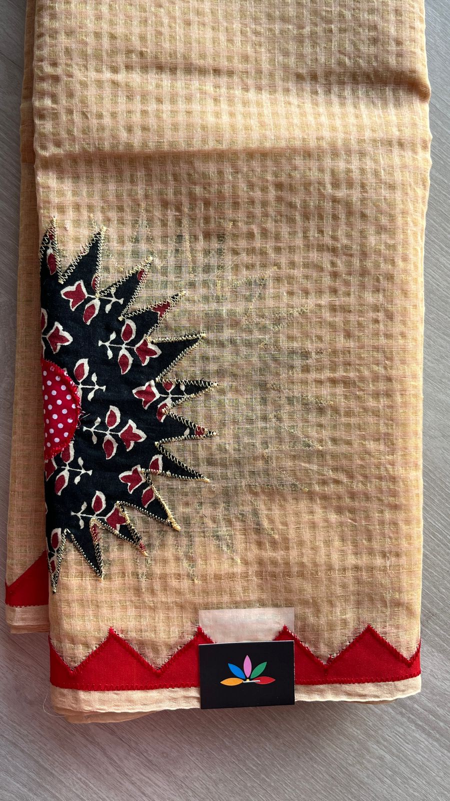 Appliqué work Kota Checks Saree (Without blouse) -26002
