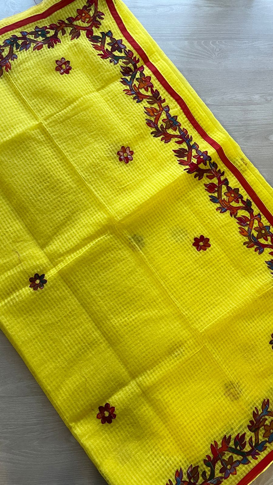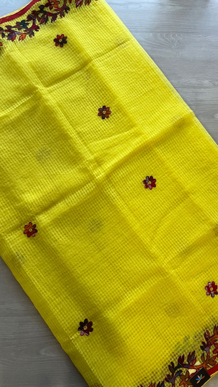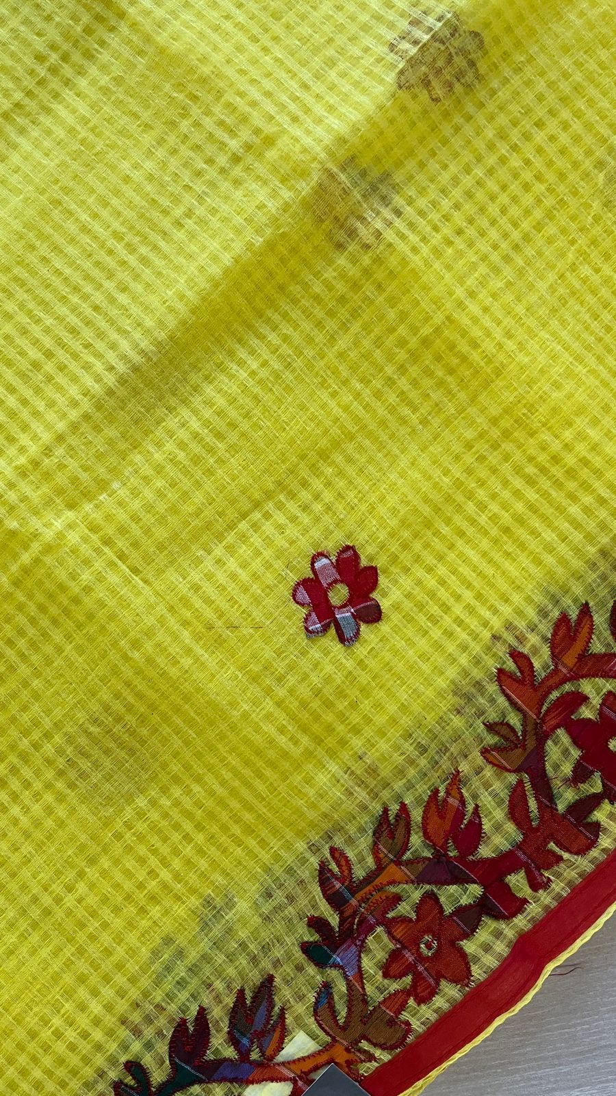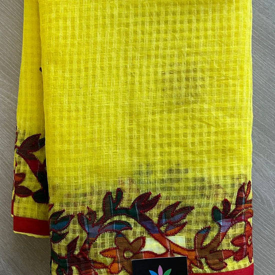 Appliqué work Kota Checks Saree (Without blouse) -26003