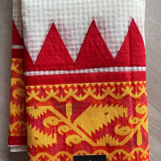 Appliqué work Kota Checks Saree (Without blouse)