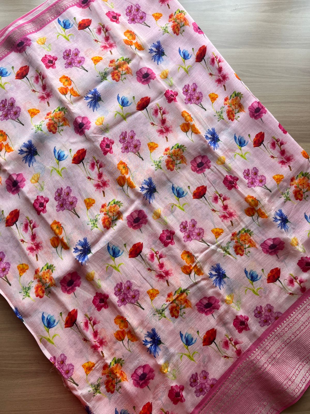 Big Border Digital Printed Mangalagiri Silk Cotton Saree