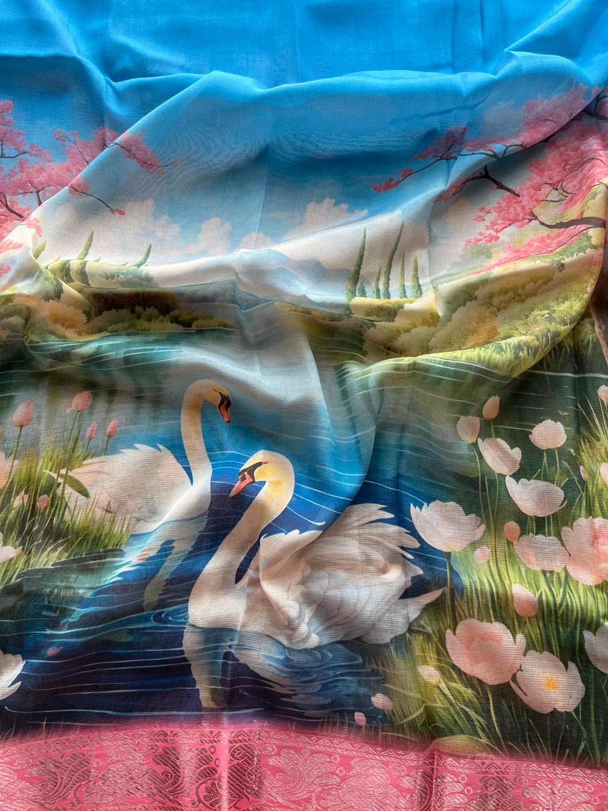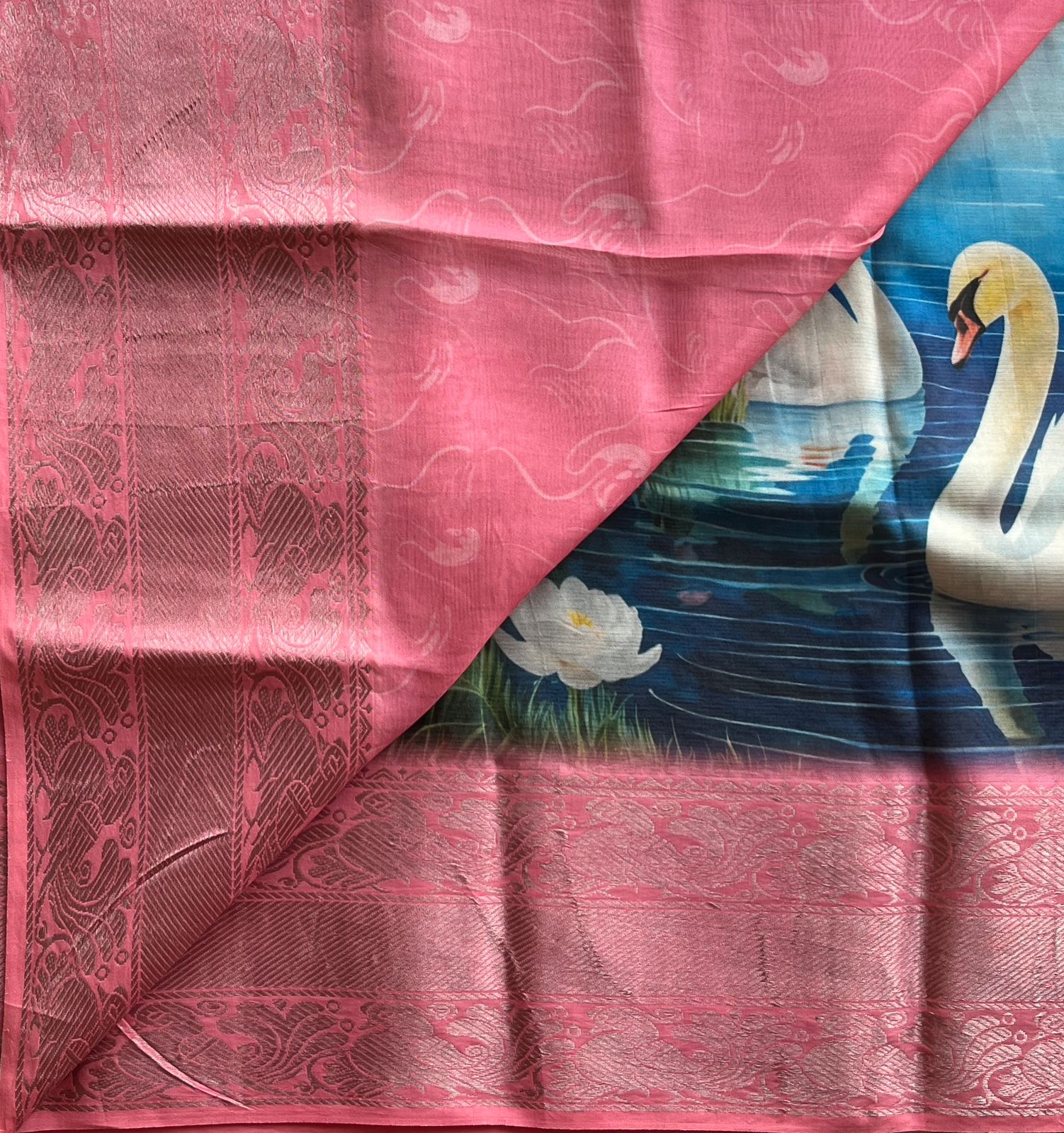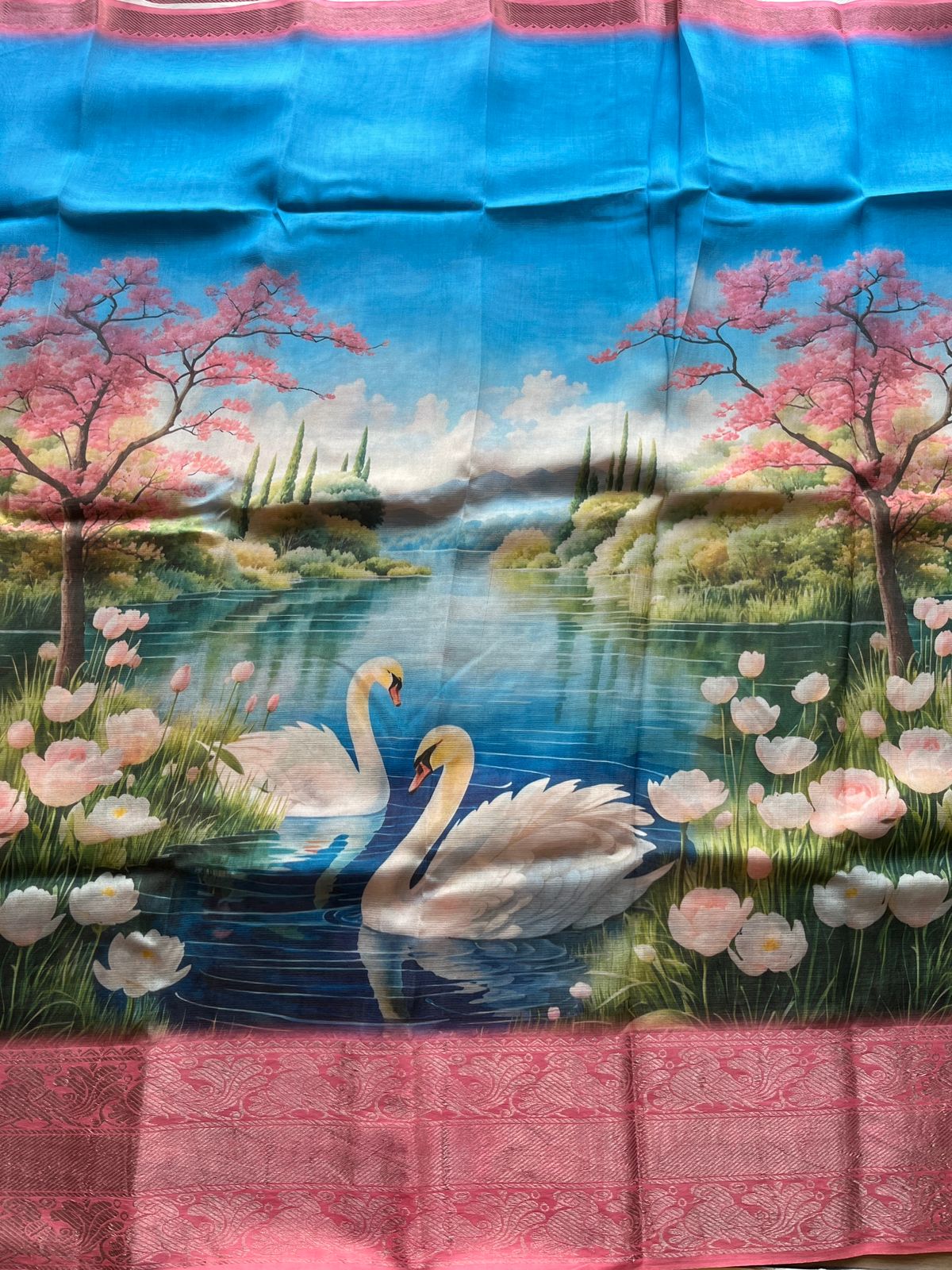Big Border Digital Printed Mangalagiri Silk Cotton Saree