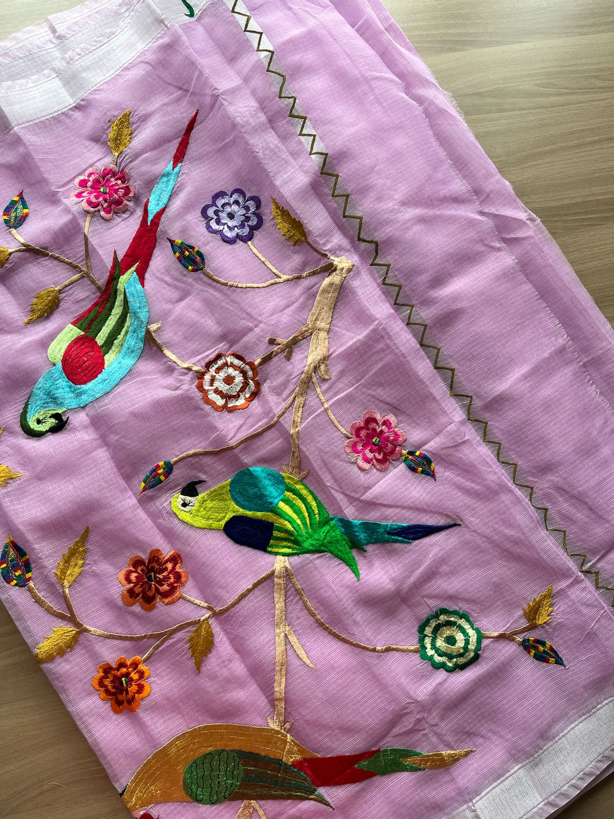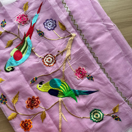 Bird And Floral Embroidered Pallu Blended Kota Saree