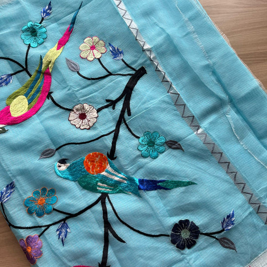 Bird And Floral Embroidered Pallu Blended Kota Saree