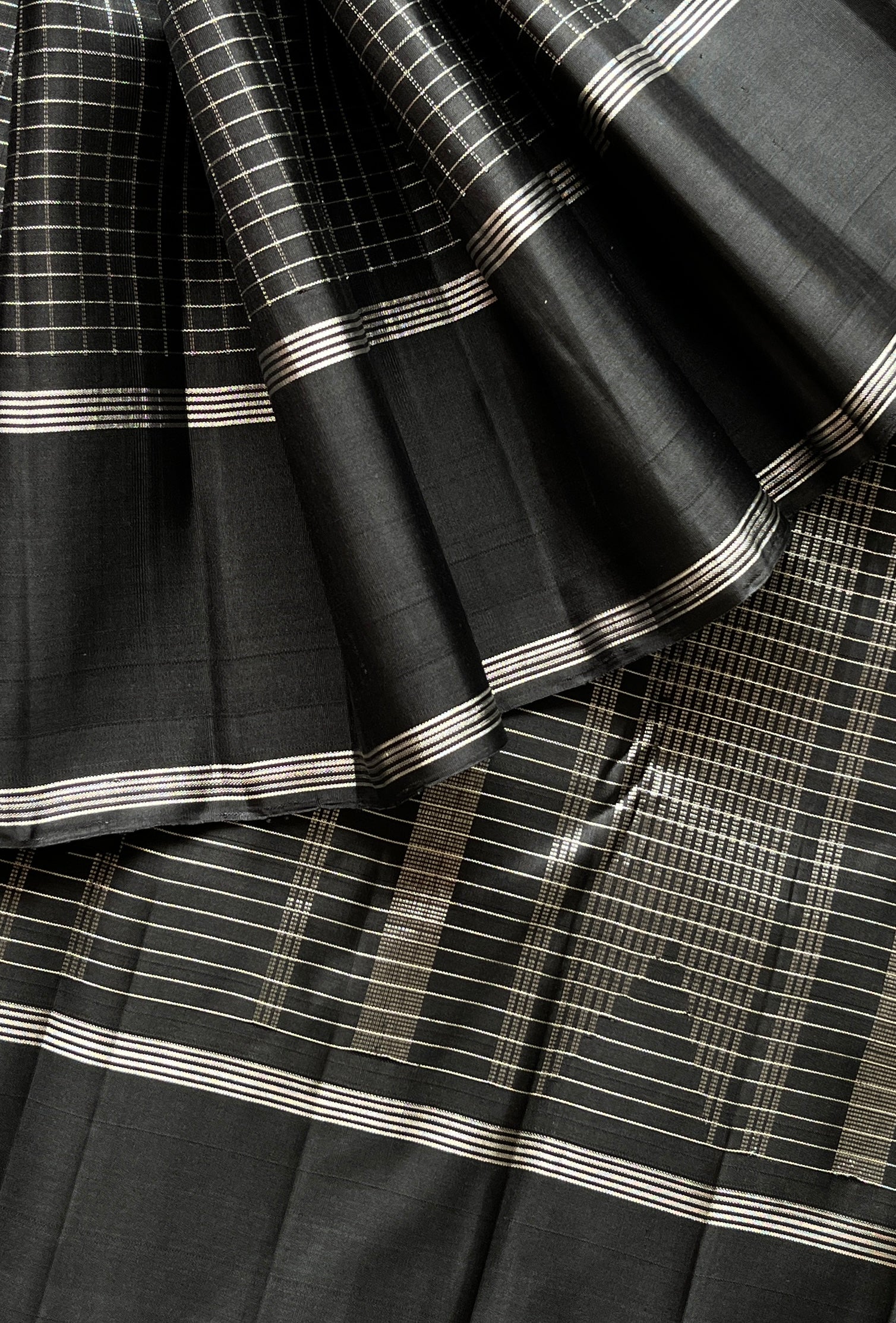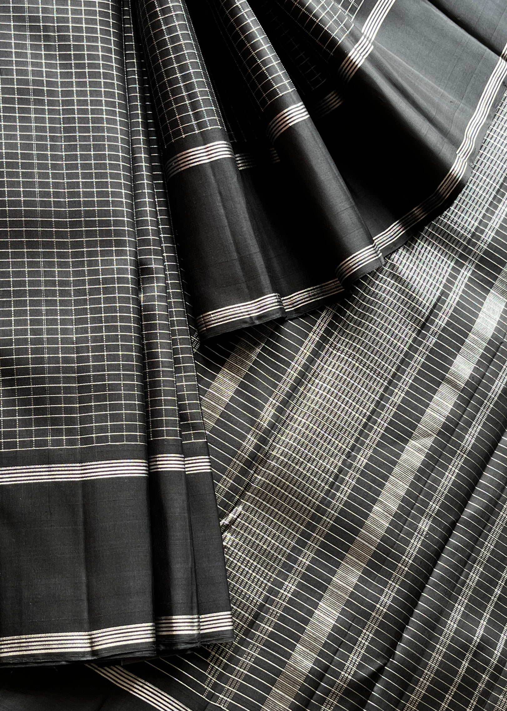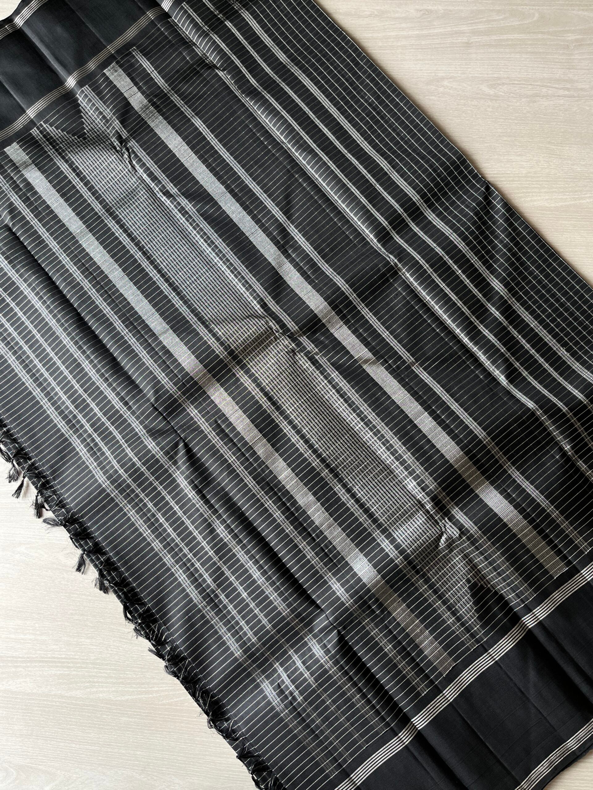 Black Kattam Handloom Pure Kancheevaram Silk Saree