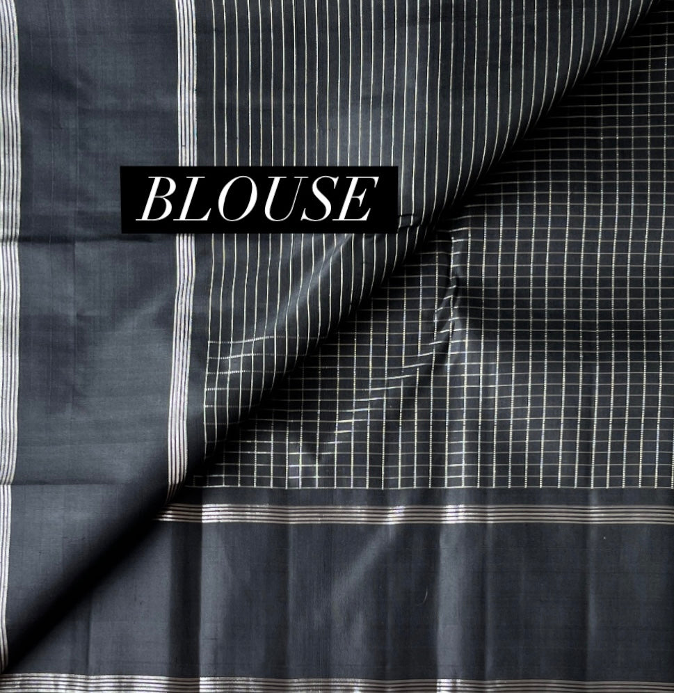 Black Kattam Handloom Pure Kancheevaram Silk Saree -108
