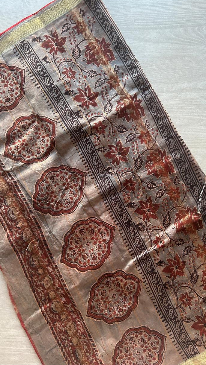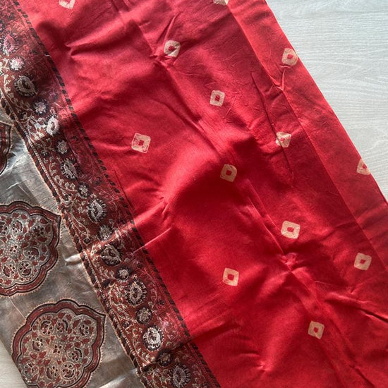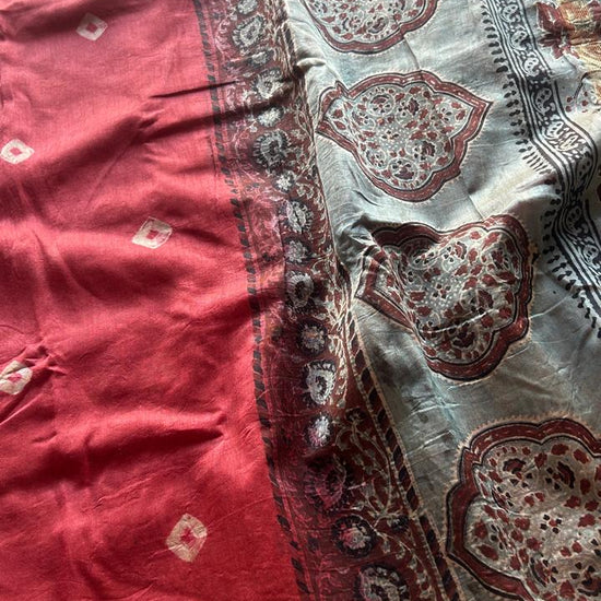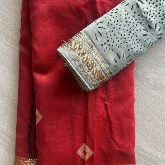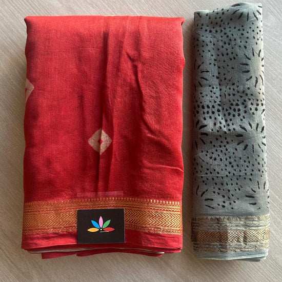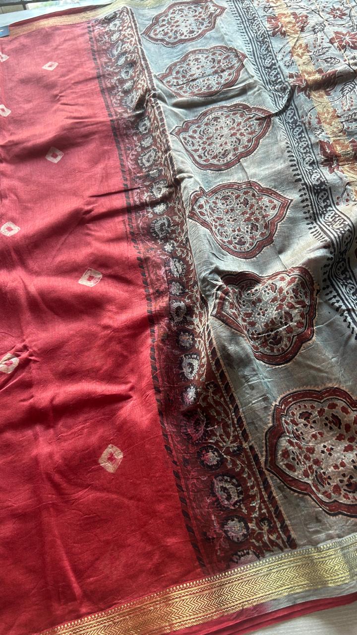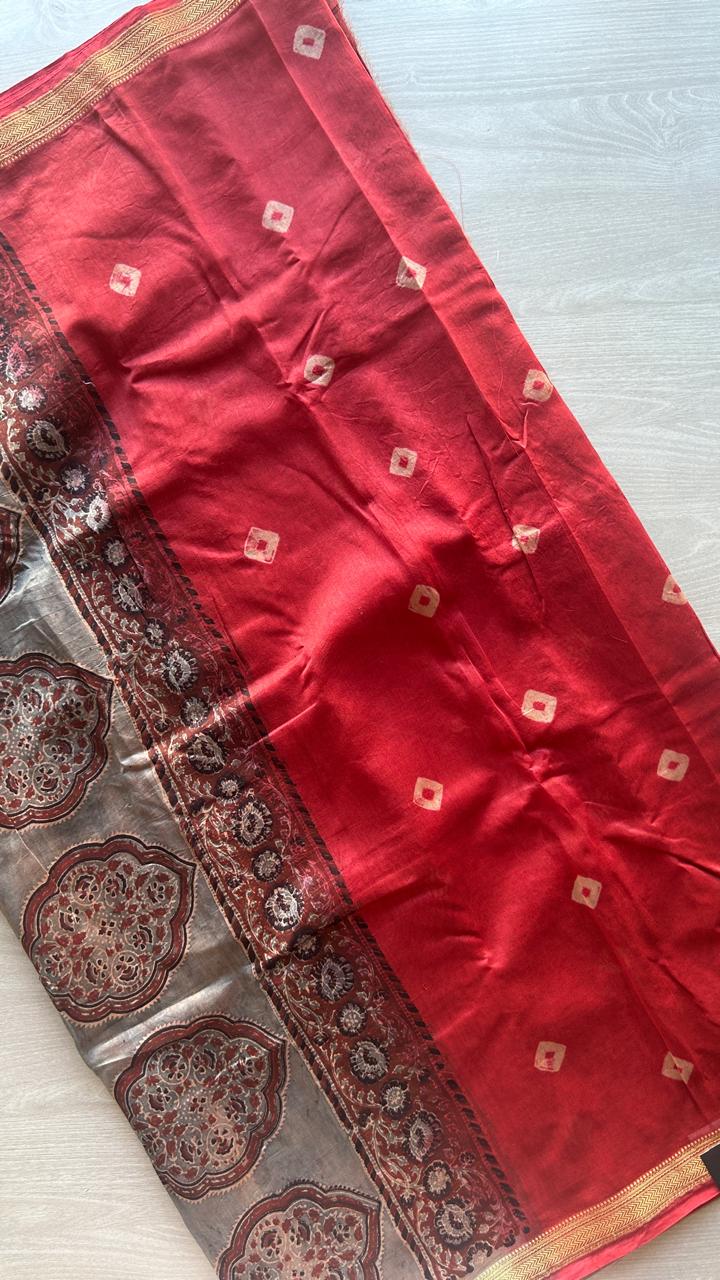 Chanderi Silk Cotton Saree with Ajrakh Pallu -24524-24525