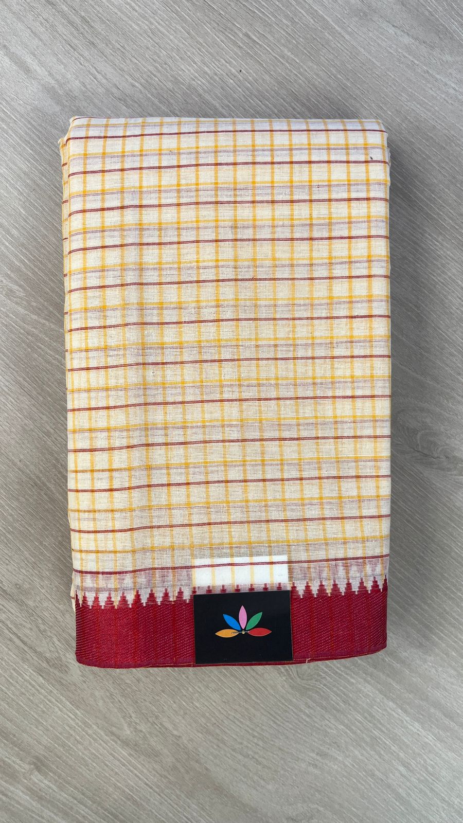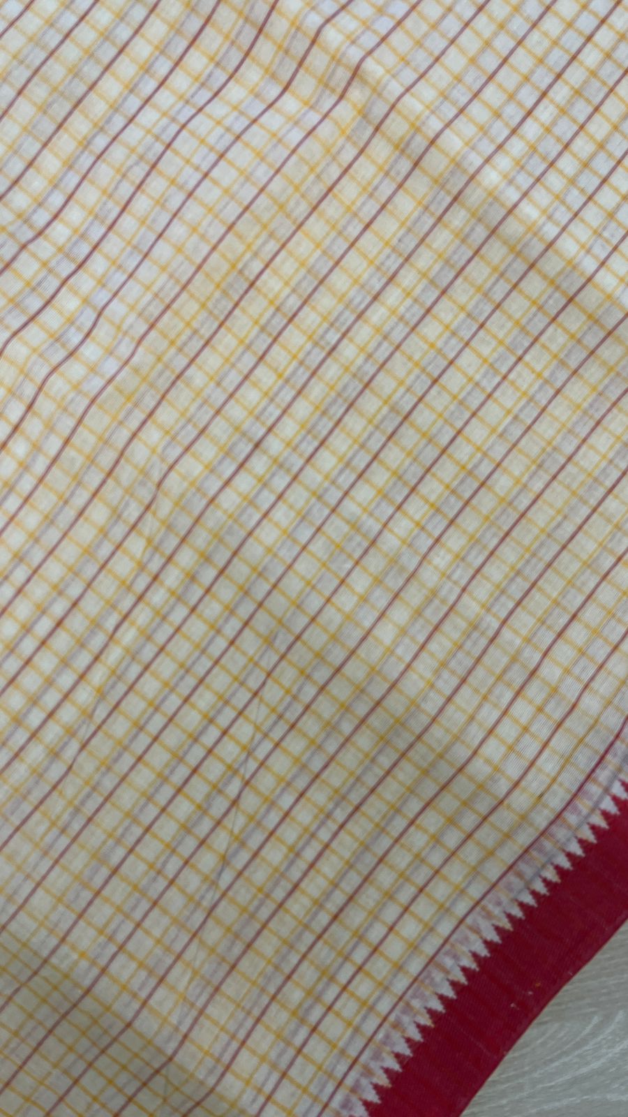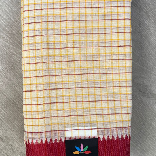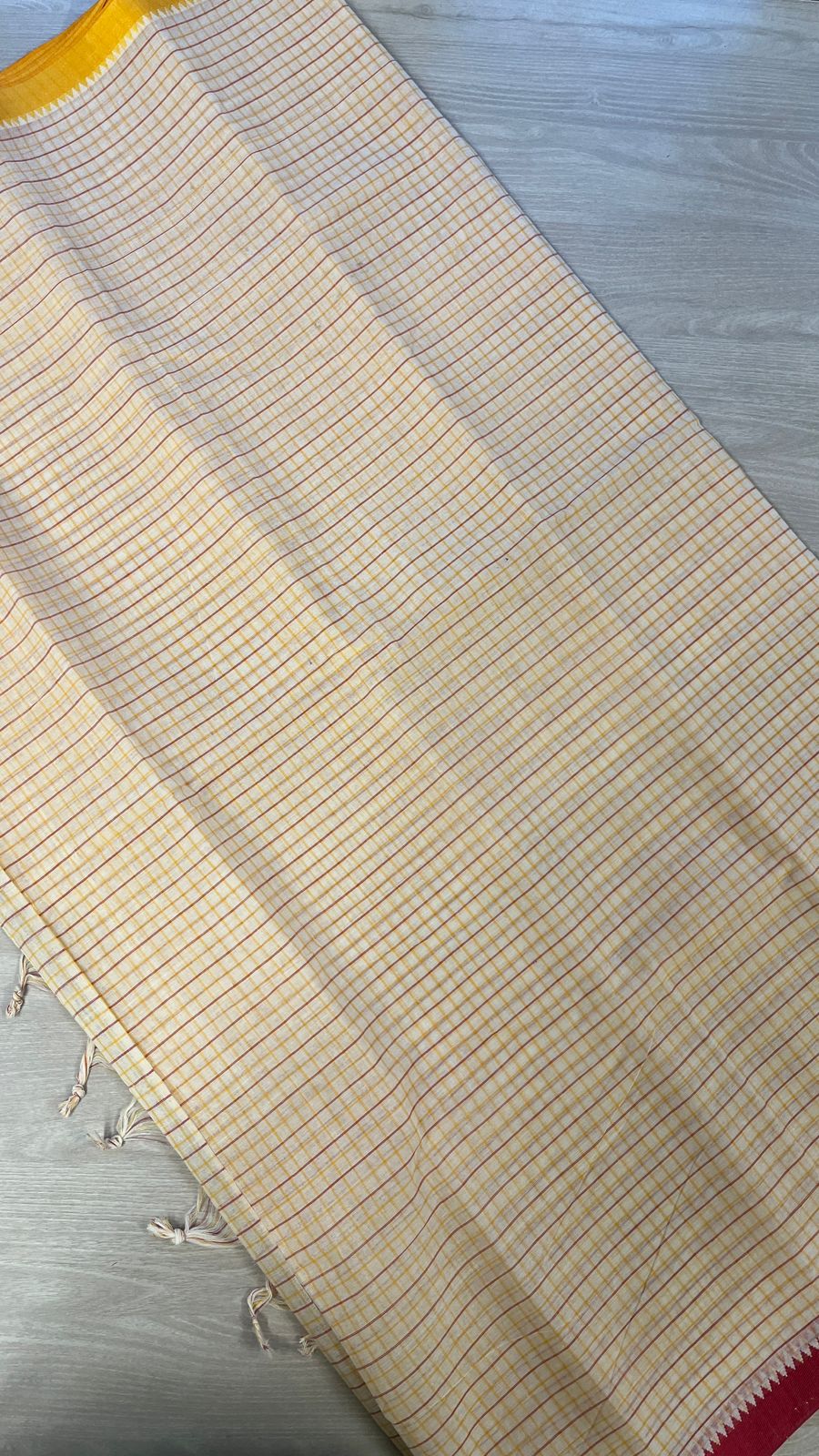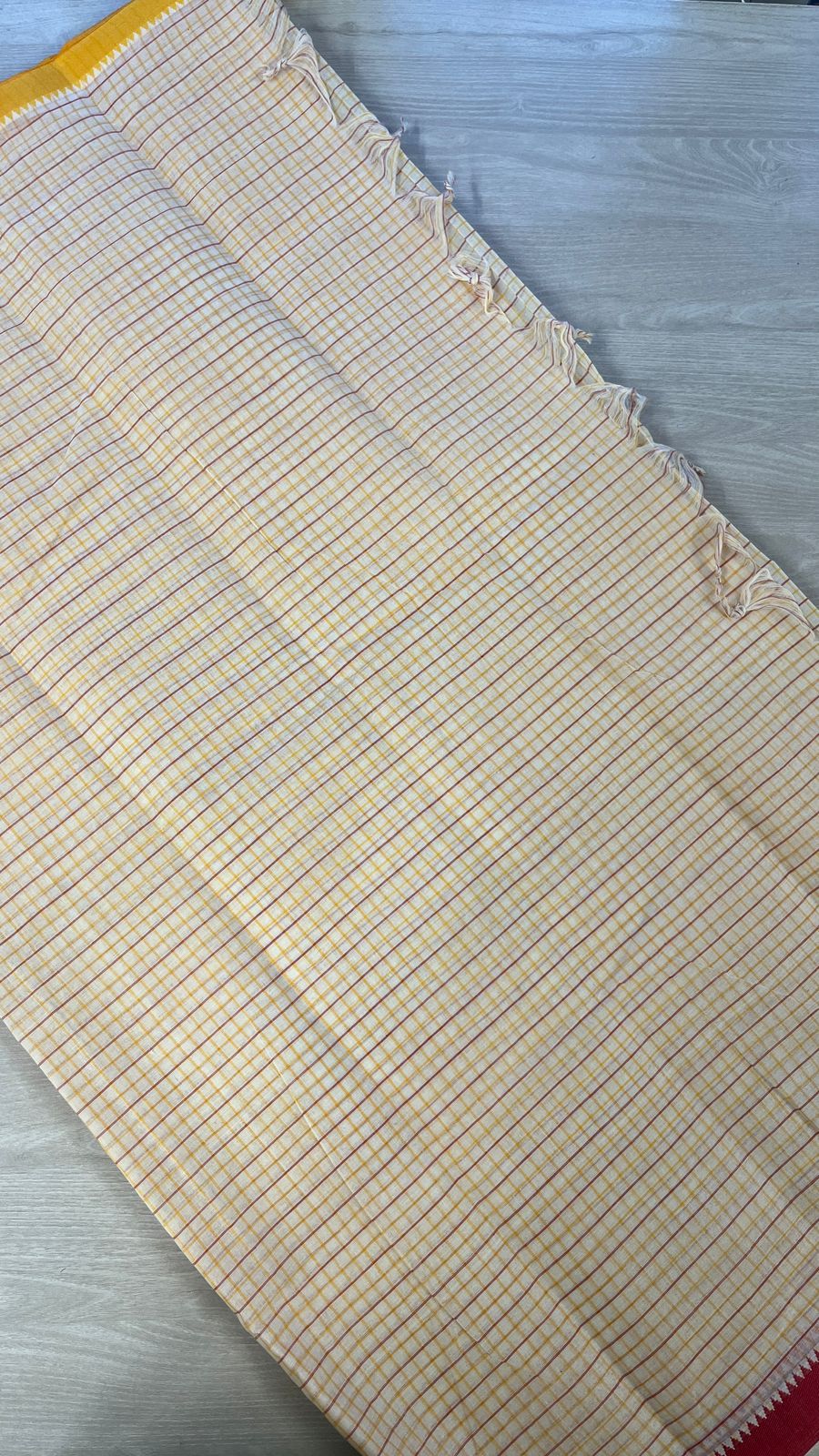 Checked Handloom Cotton Saree (Without blouse) -26083
