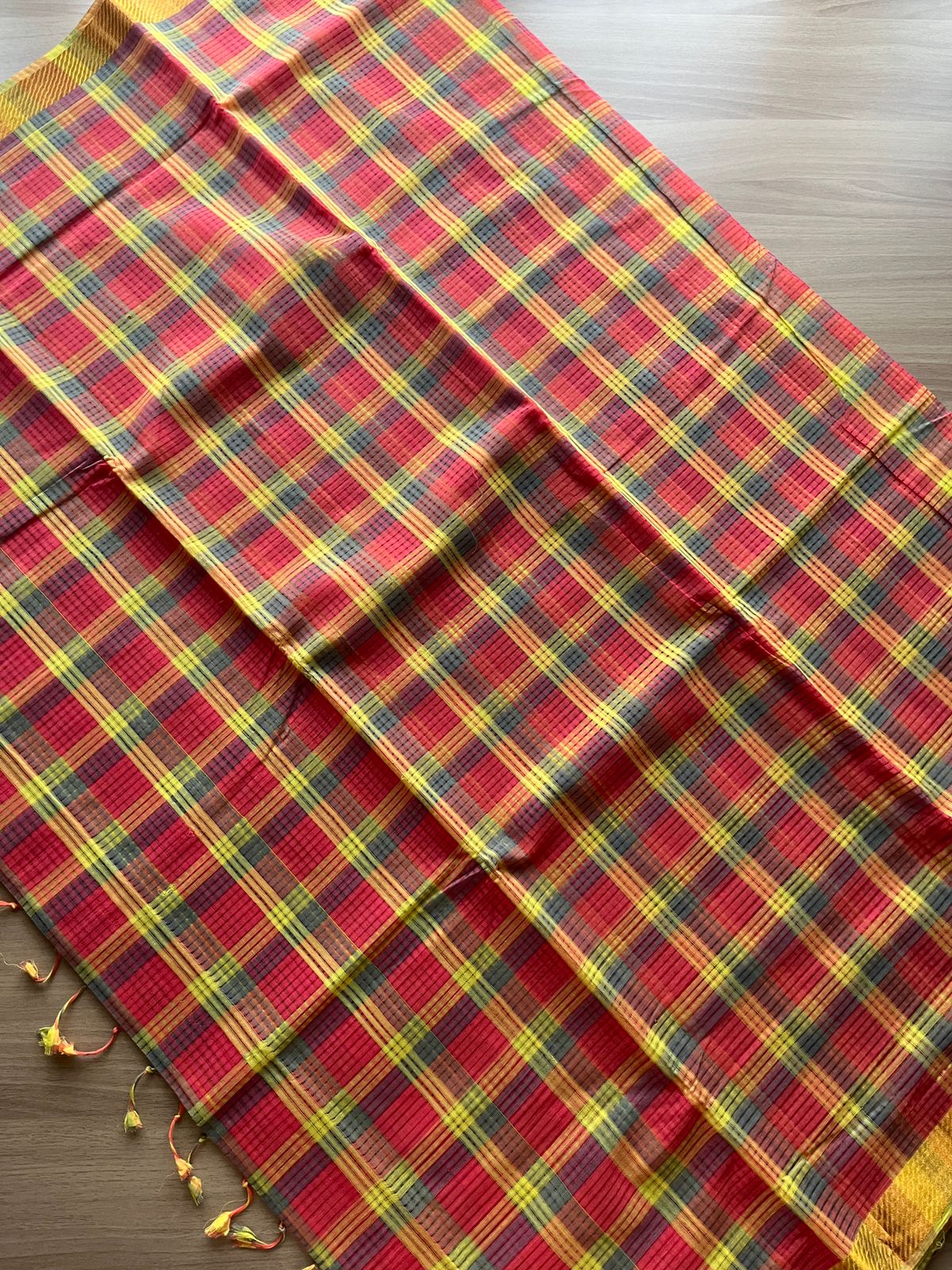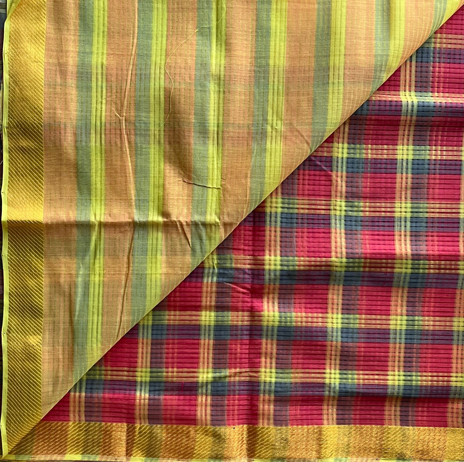 Checked Missing checks Handloom Mangalagiri Cotton Saree -15275