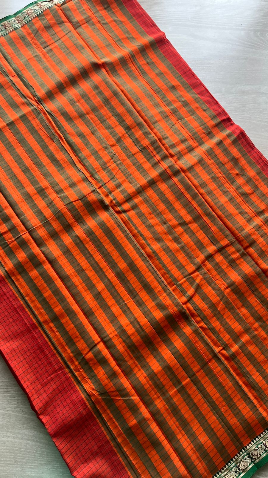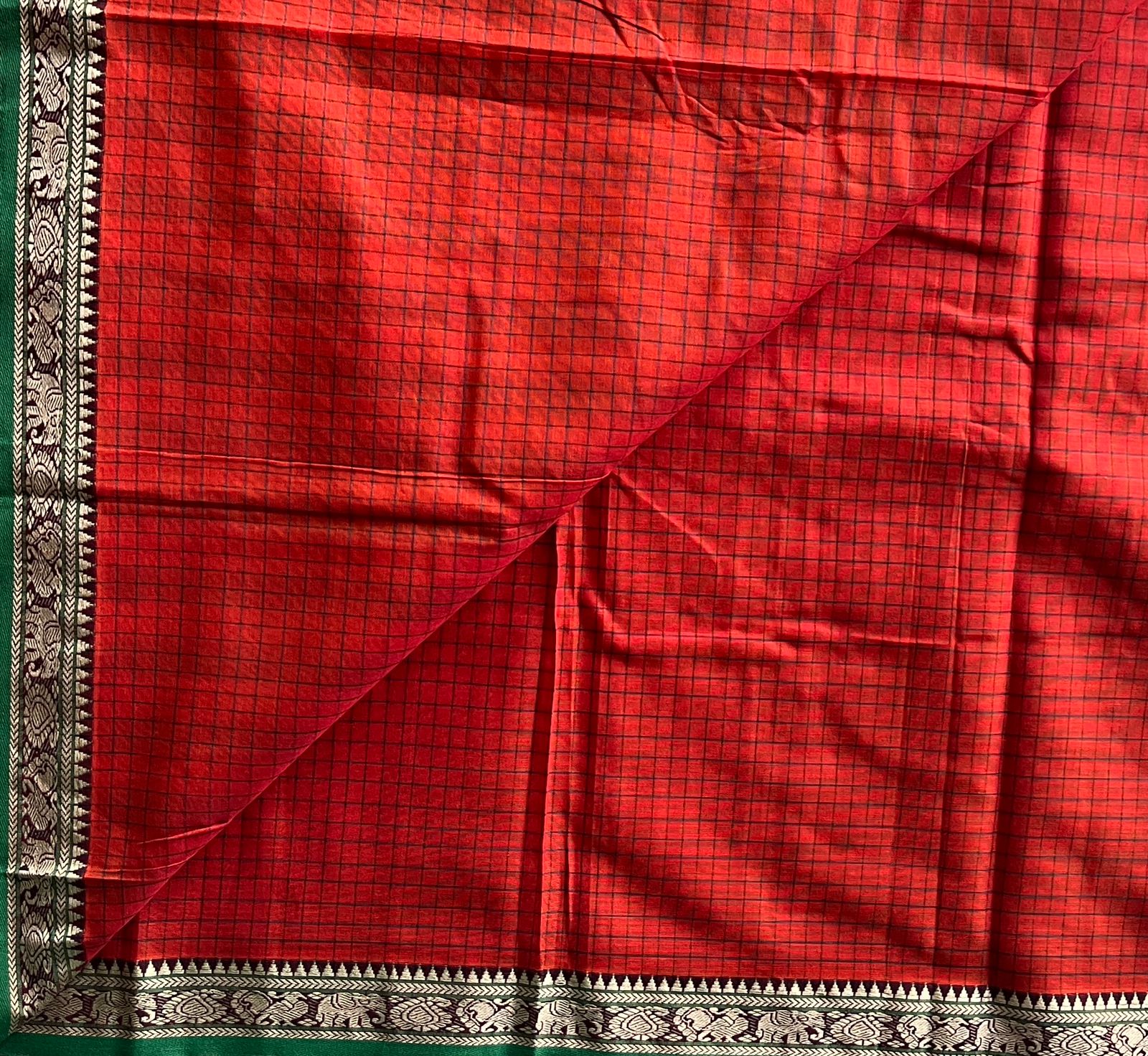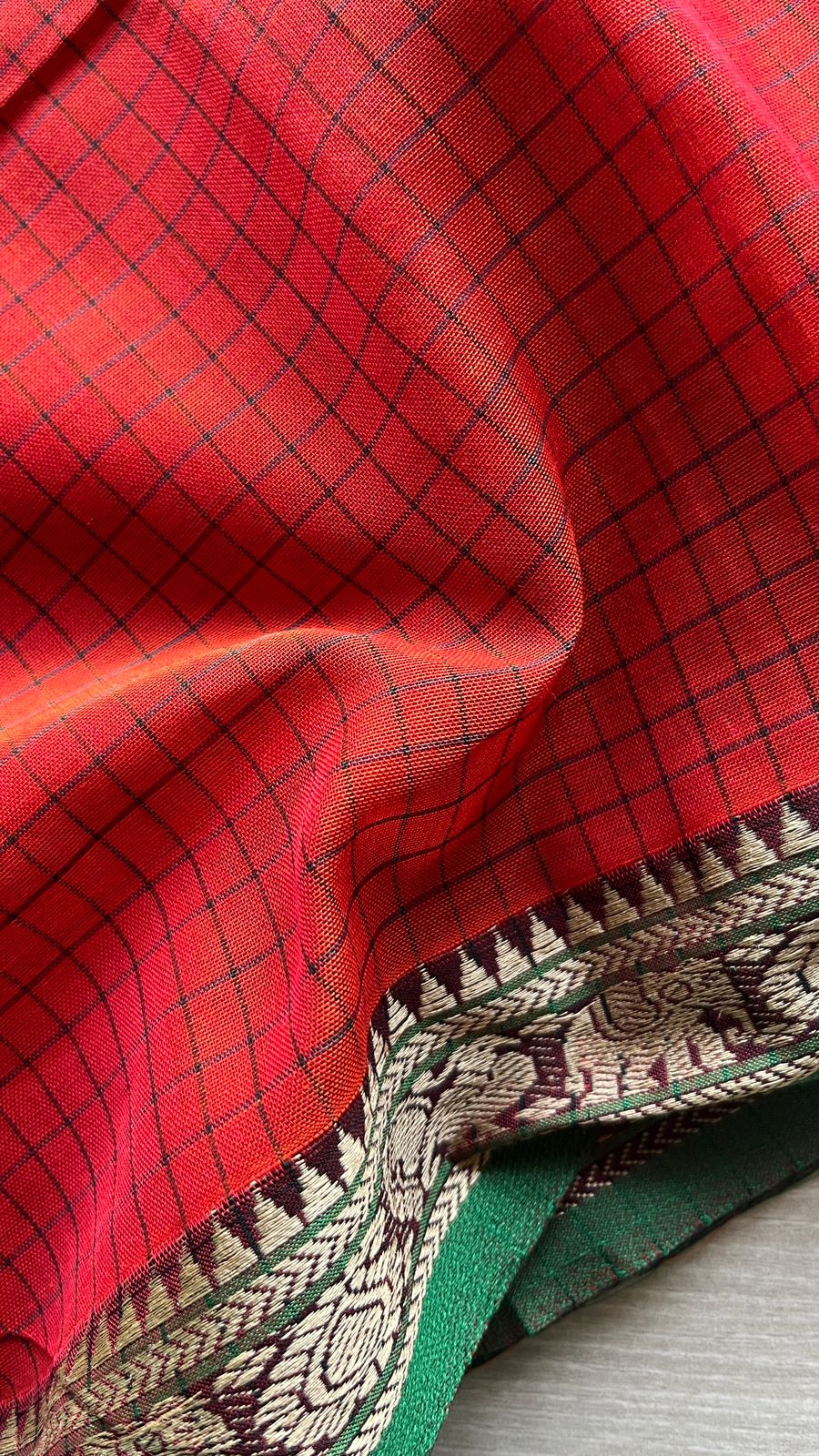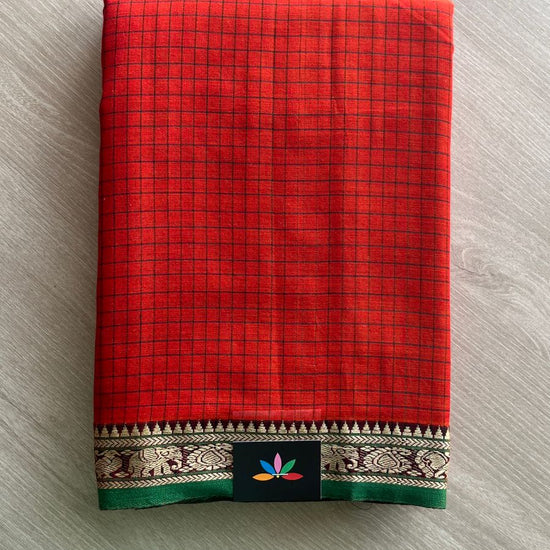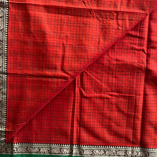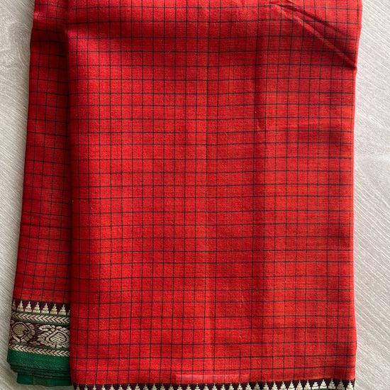 Checked Small Border Narayanpet Cotton Saree -25646