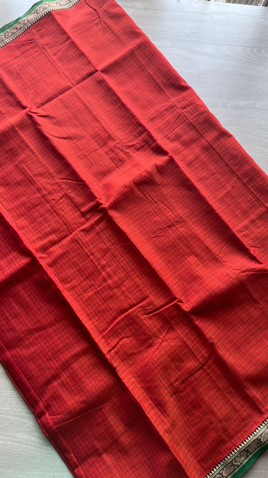 Checked Small Border Narayanpet Cotton Saree