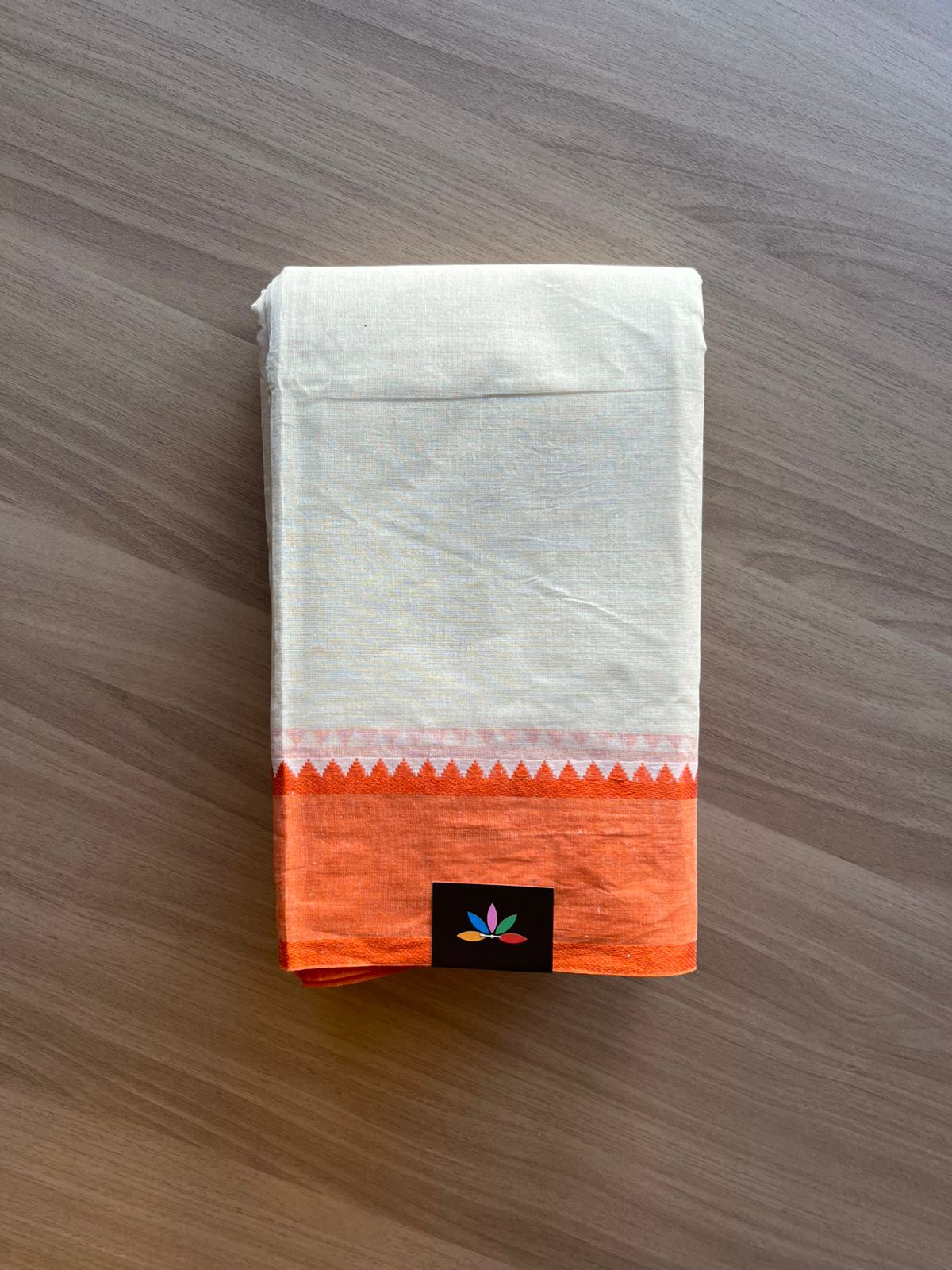 Contrast Temple Border Plain Cotton Saree - (Starched) -23102
