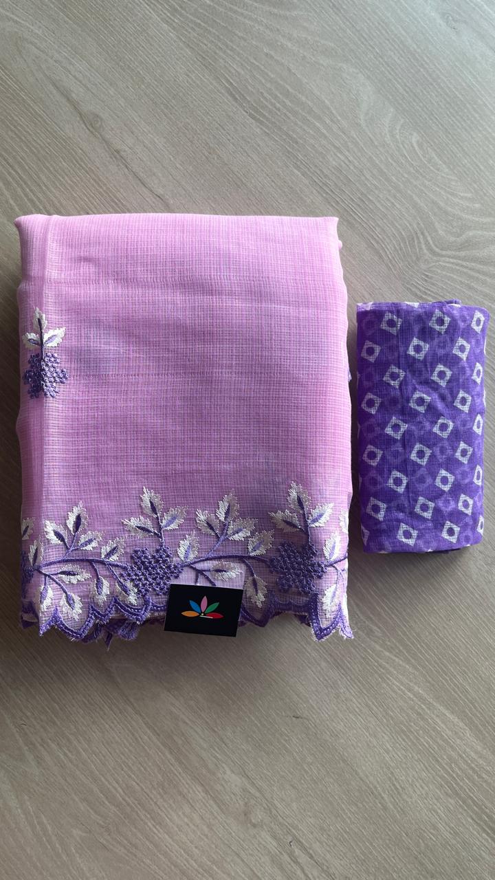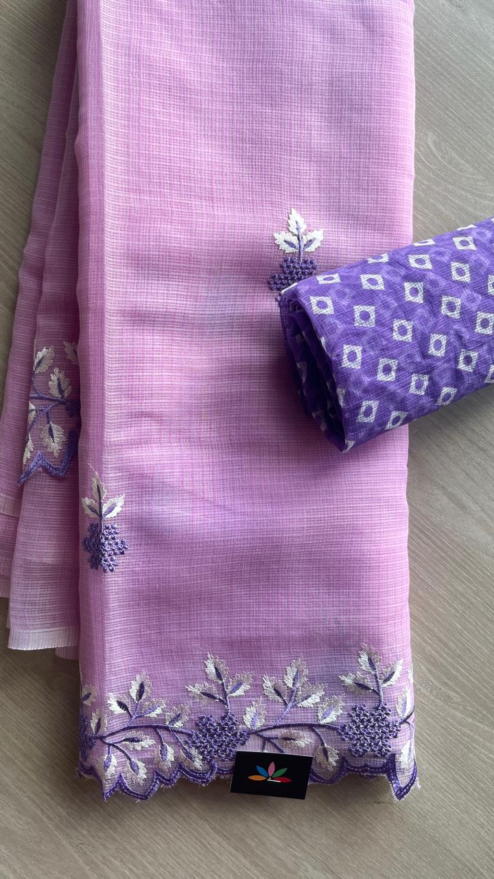 Cutwork Border Embroidered Kota Saree with Blouse