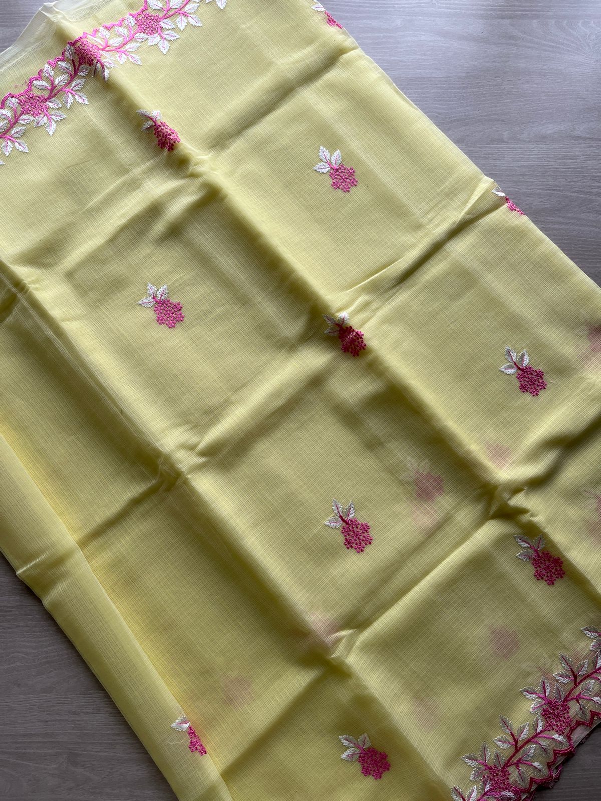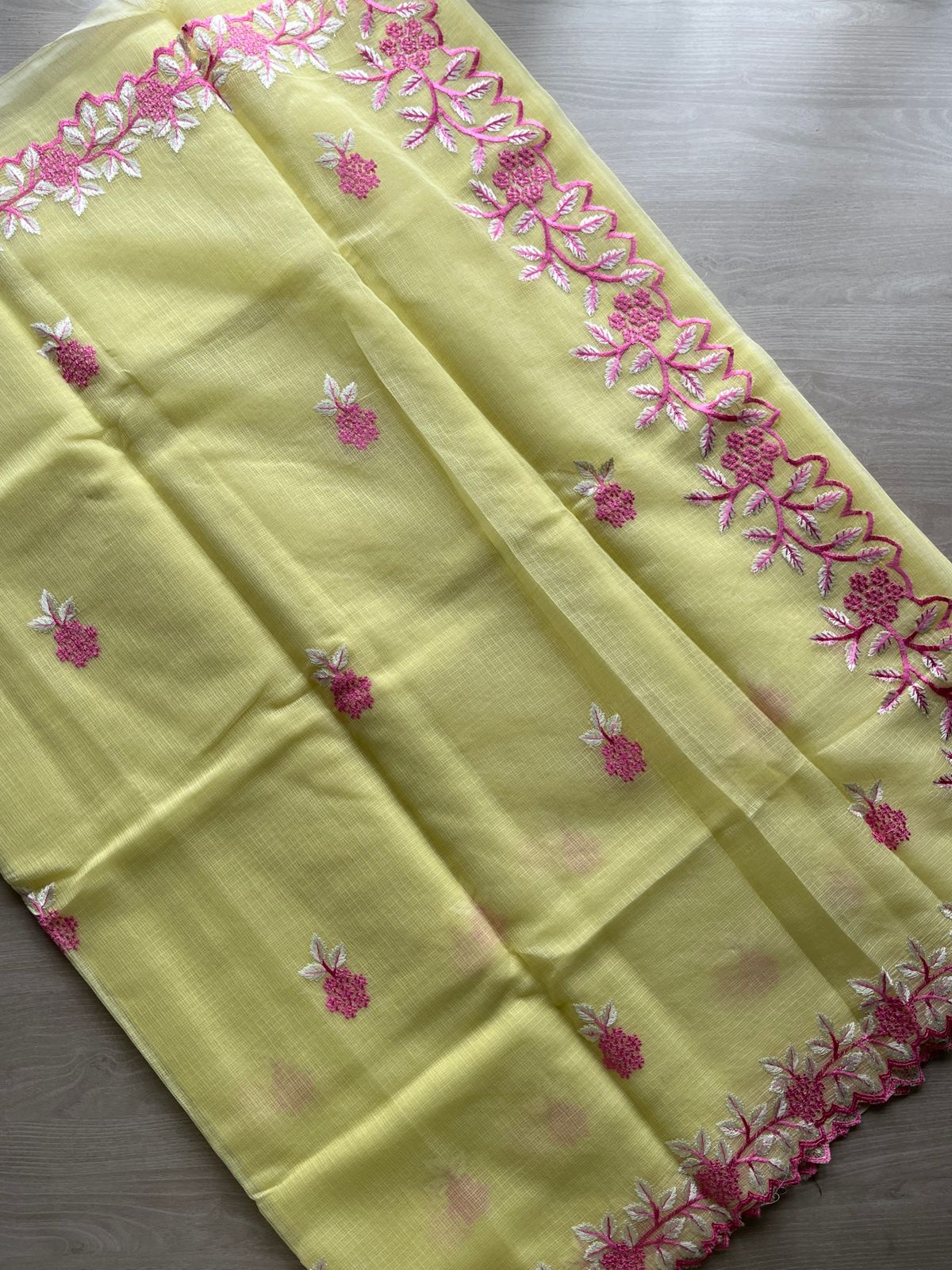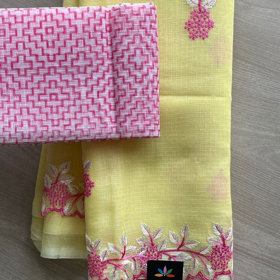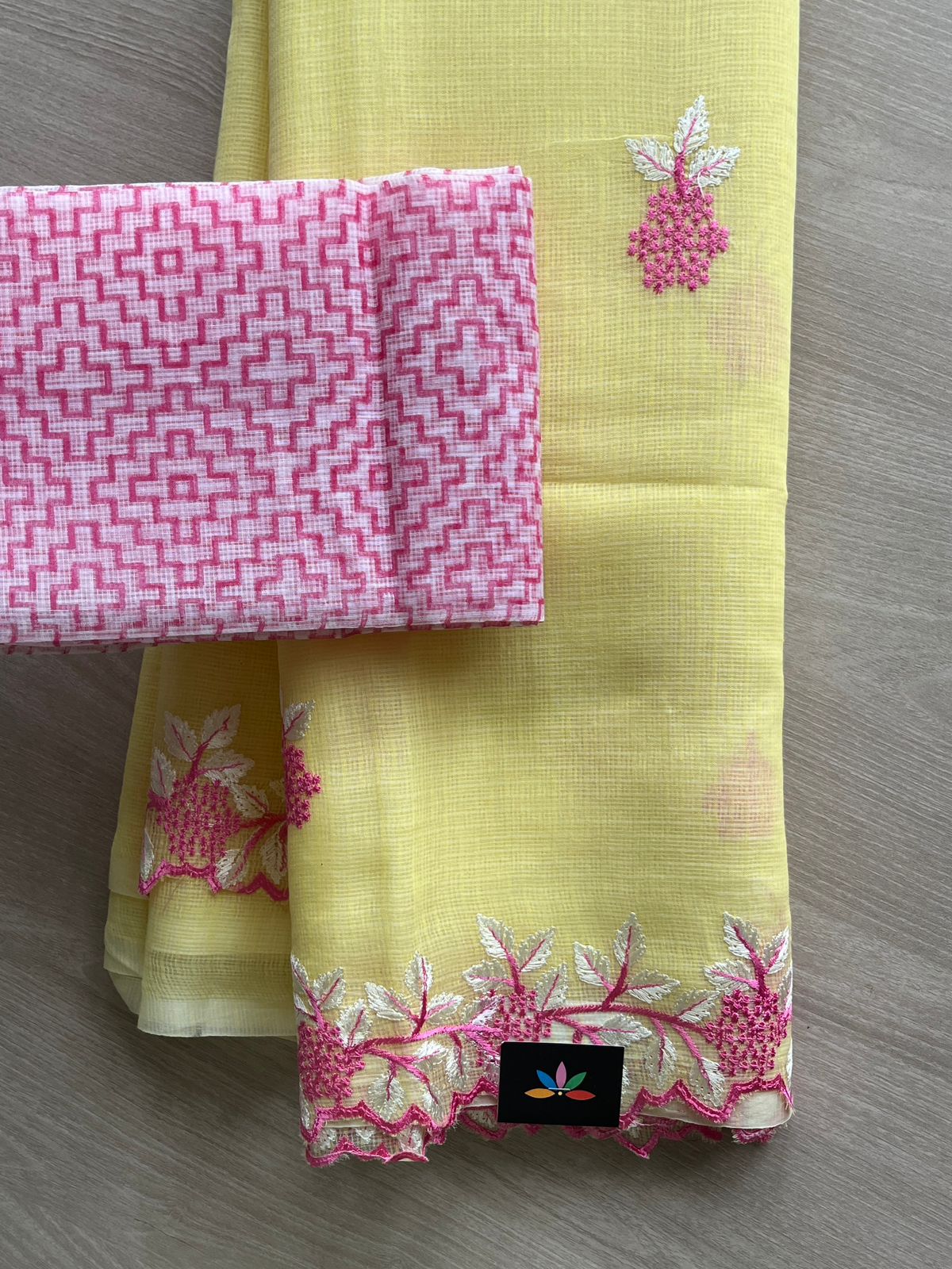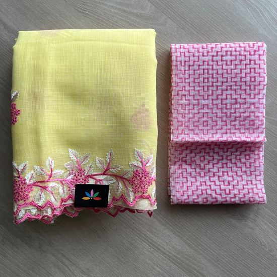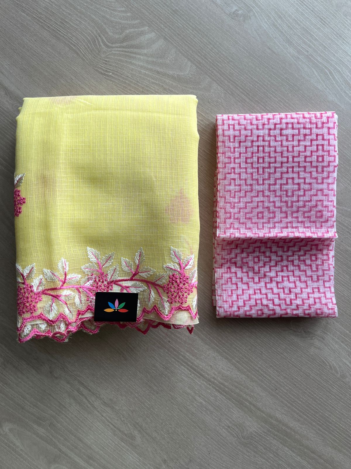 Cutwork Border Embroidered Kota Saree with Blouse- 27324