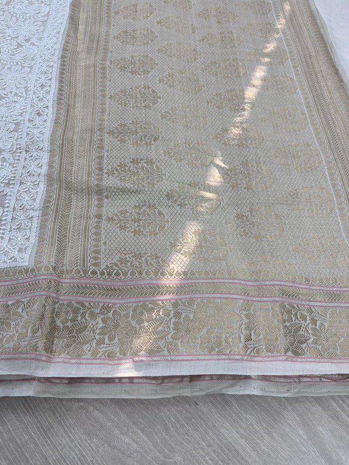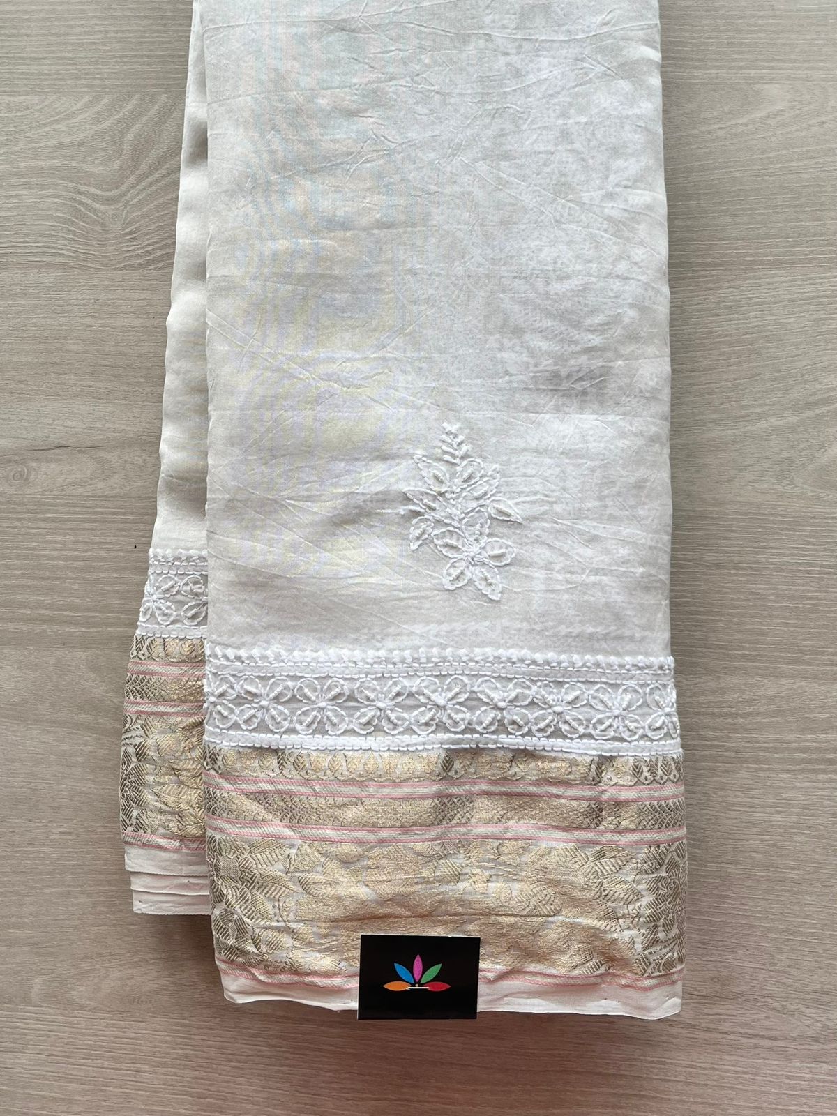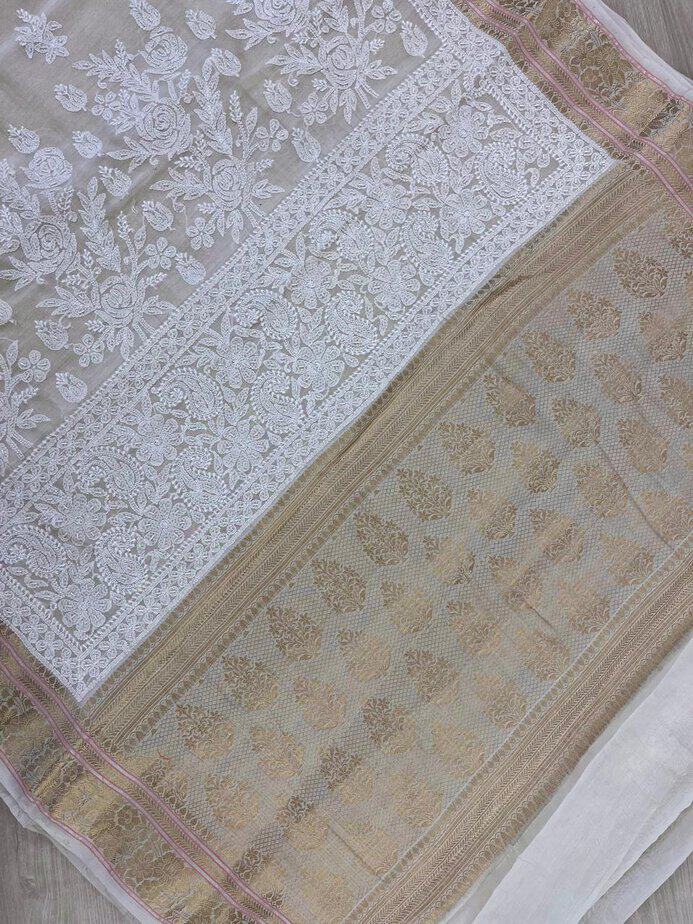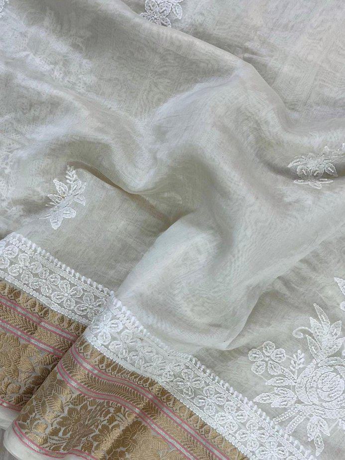 Designer Cutdana Chikankari Hand Embroidered Chanderi Silk Cotton Saree