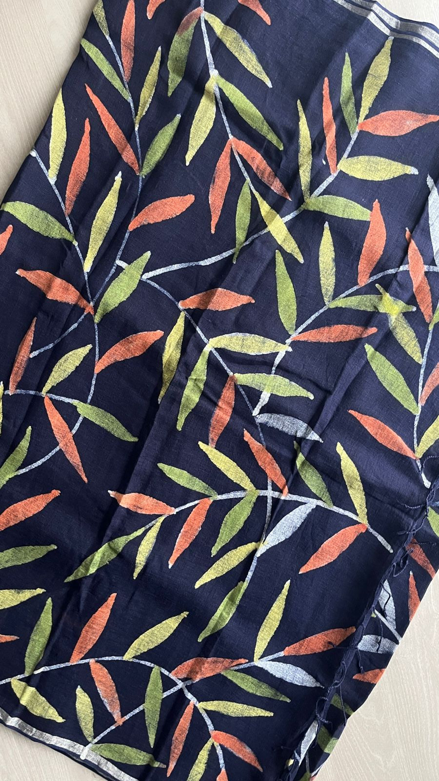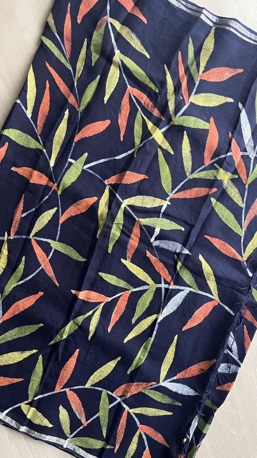Designer Handblock Printed Fine Linen Saree