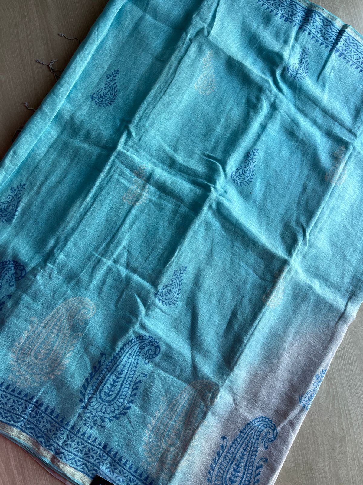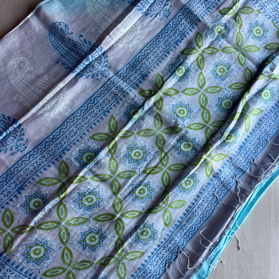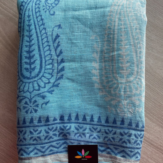 Designer Handblock Printed Fine Linen Saree- 28019