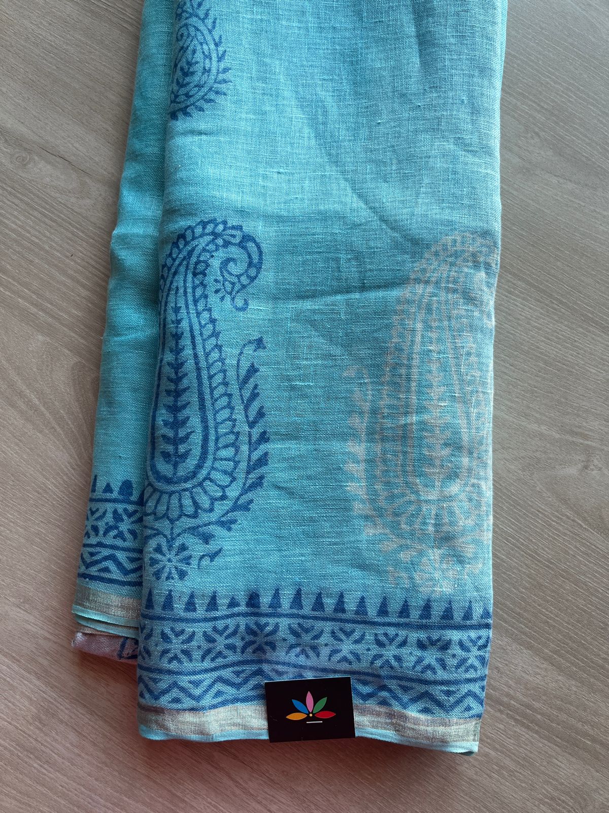 Designer Hand Block Printed Fine Linen Saree