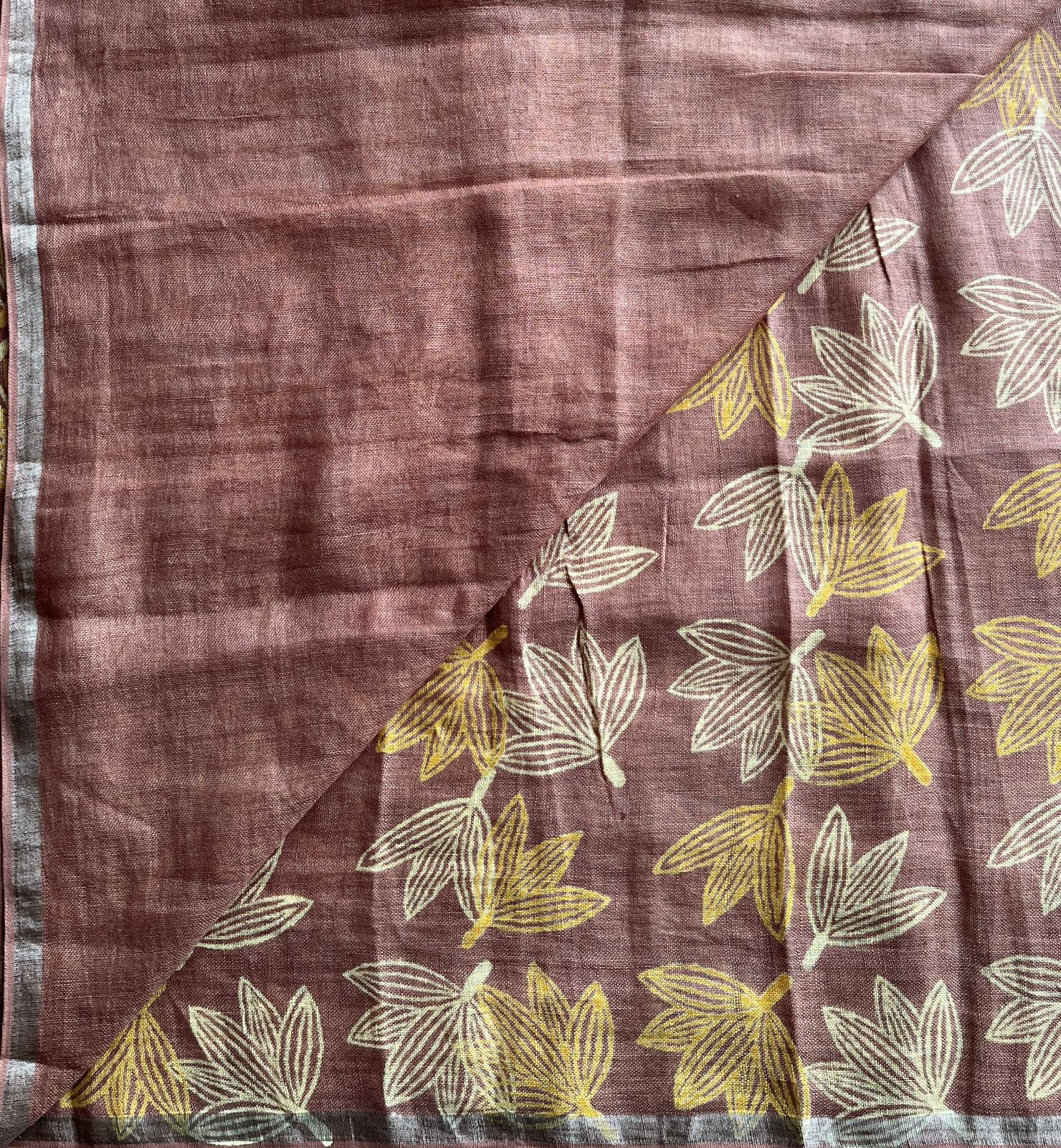 Designer Handblock Printed Fine Linen Saree
