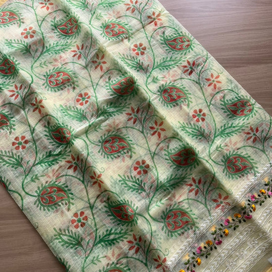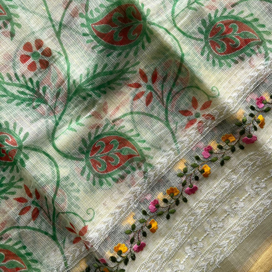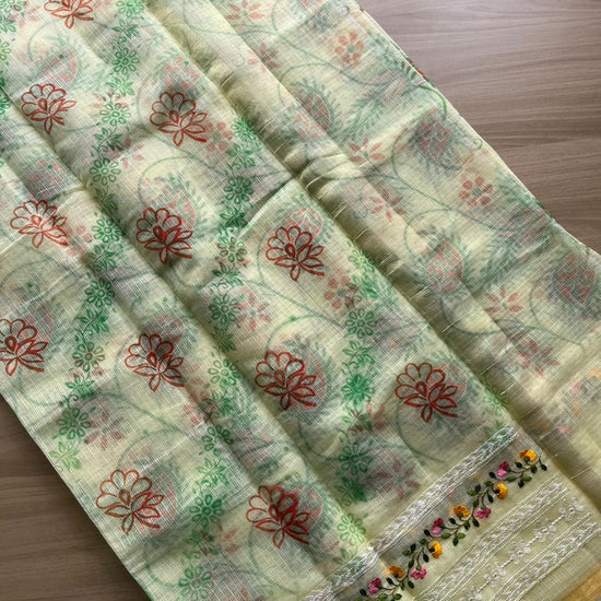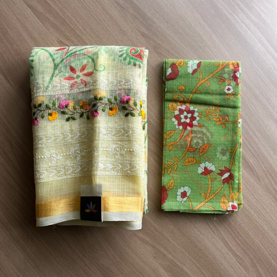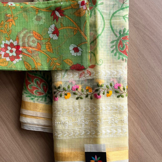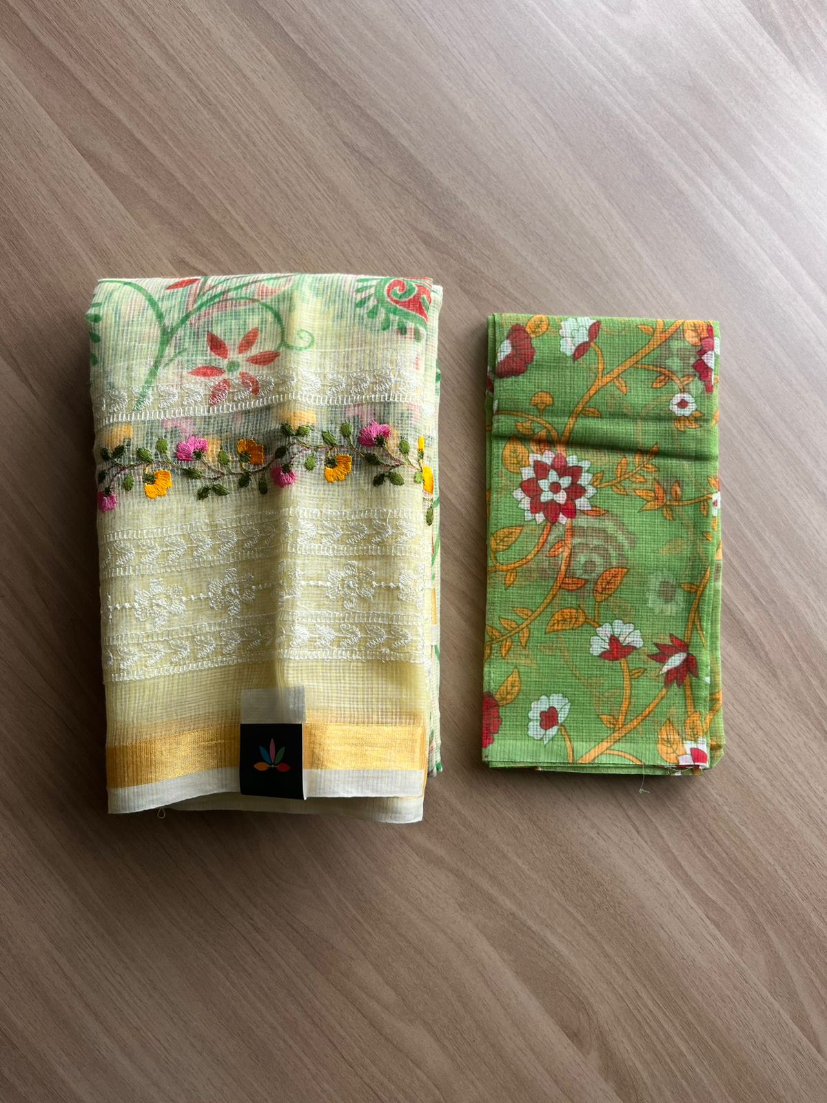 Embroidered Printed Kota Saree with Contrast Blouse-22721
