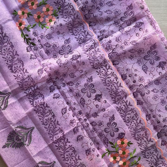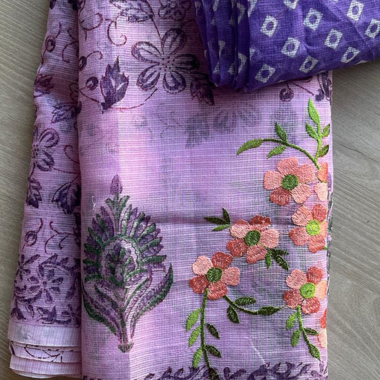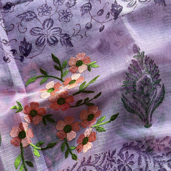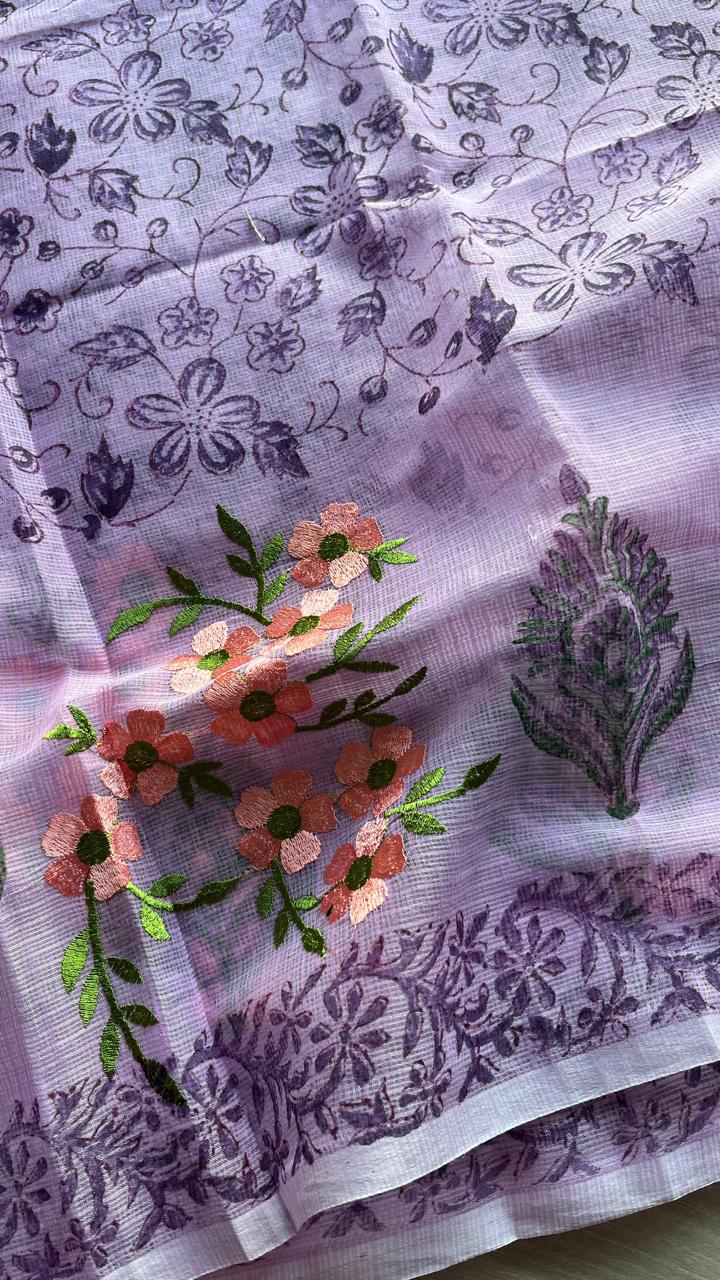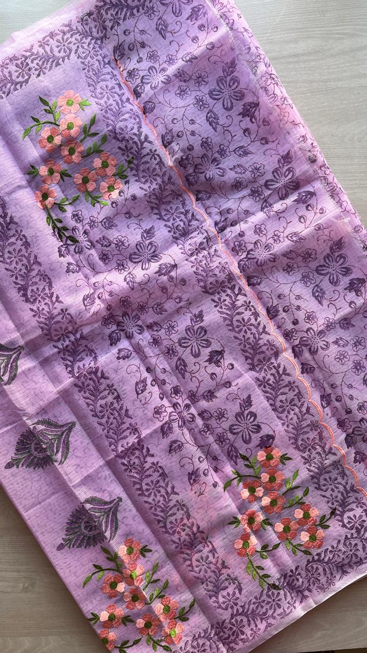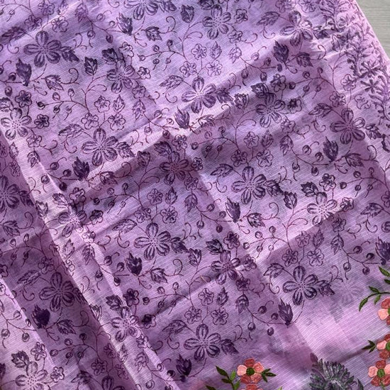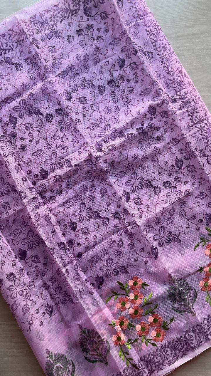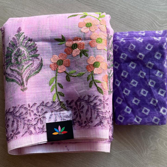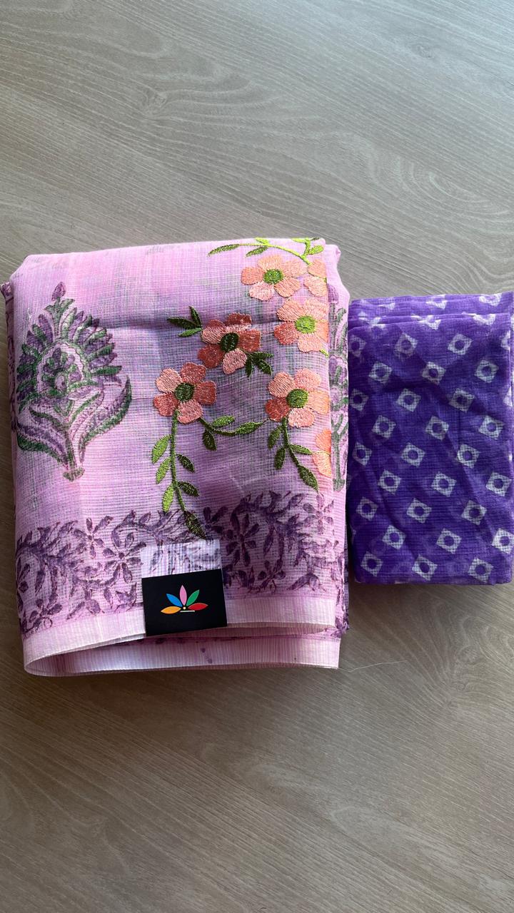 Embroidered Printed Kota Saree with Contrast Blouse-24613