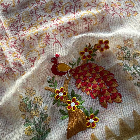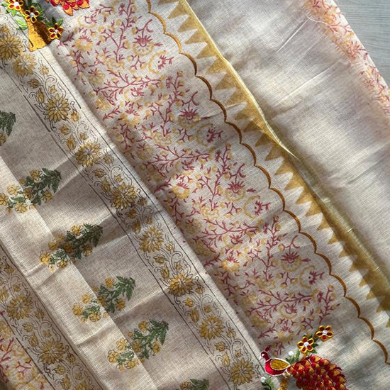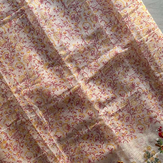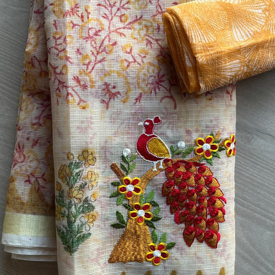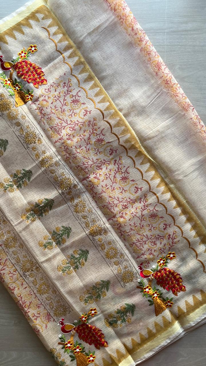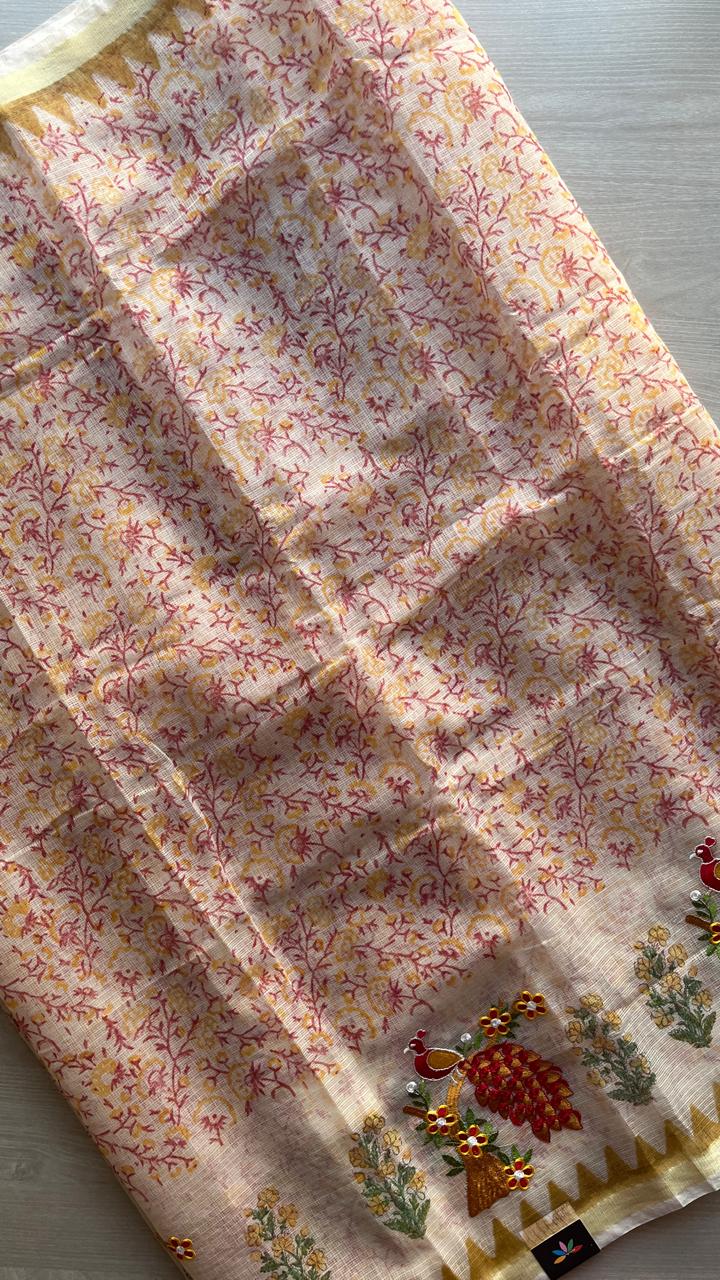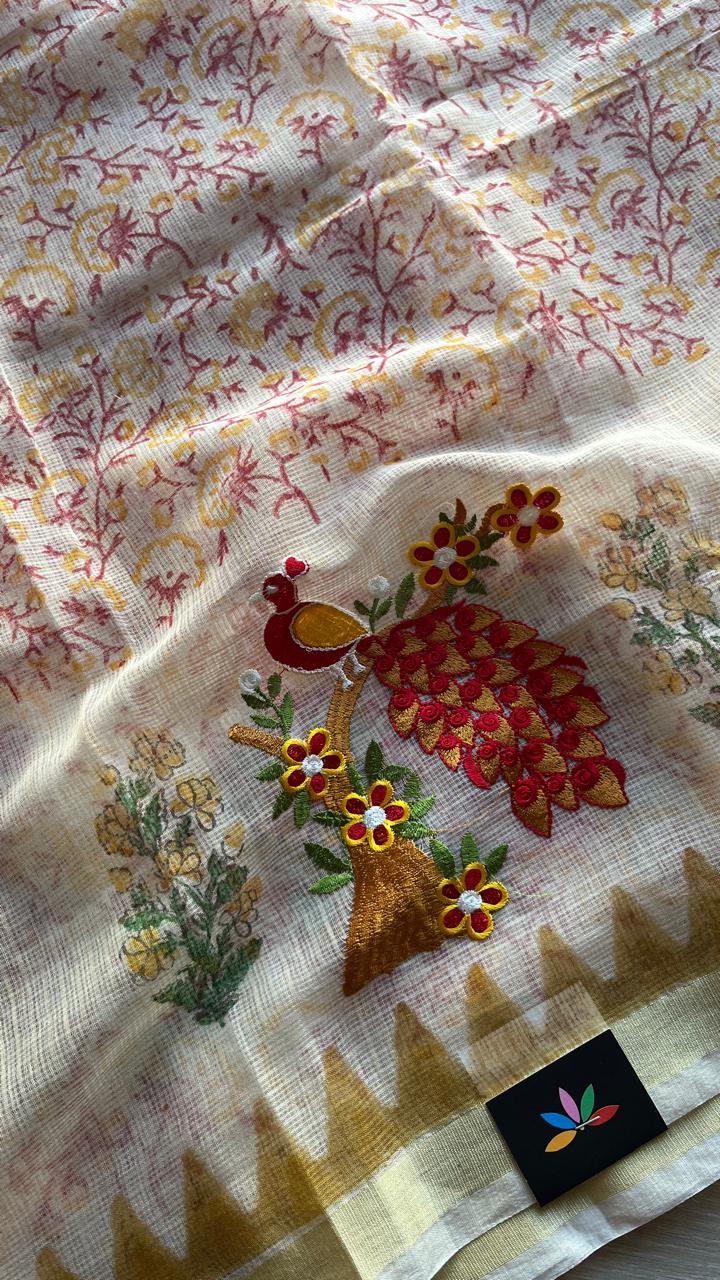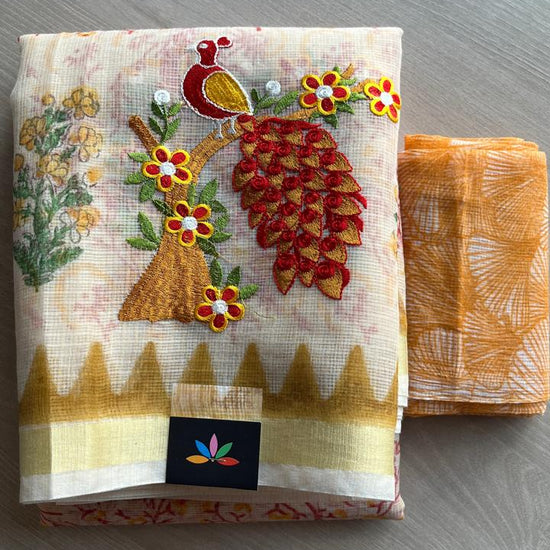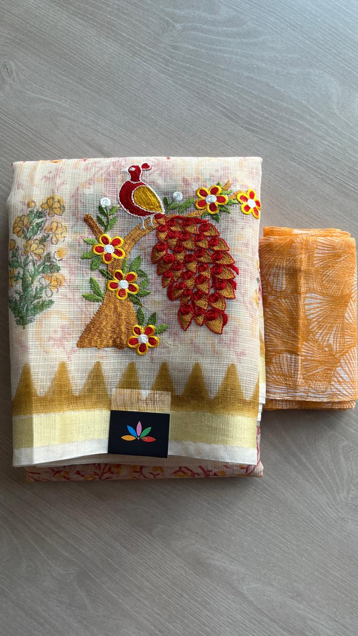 Embroidered Printed Kota Saree with Contrast Blouse-24614