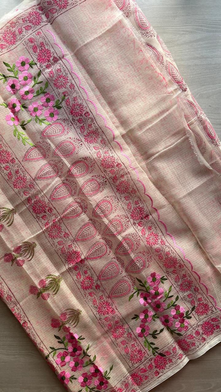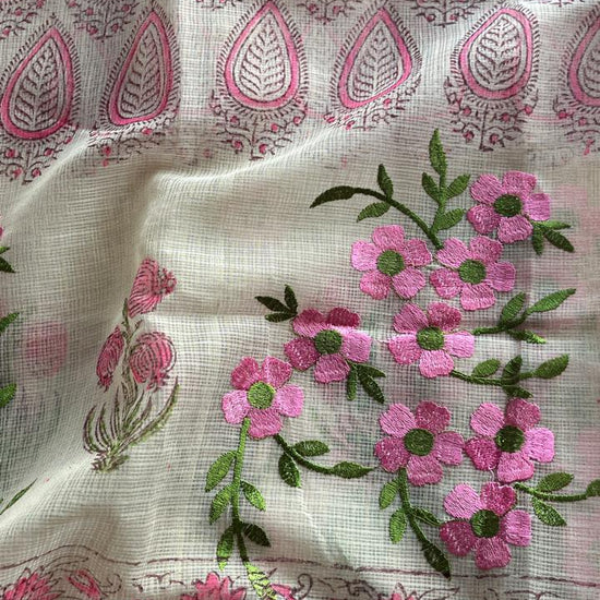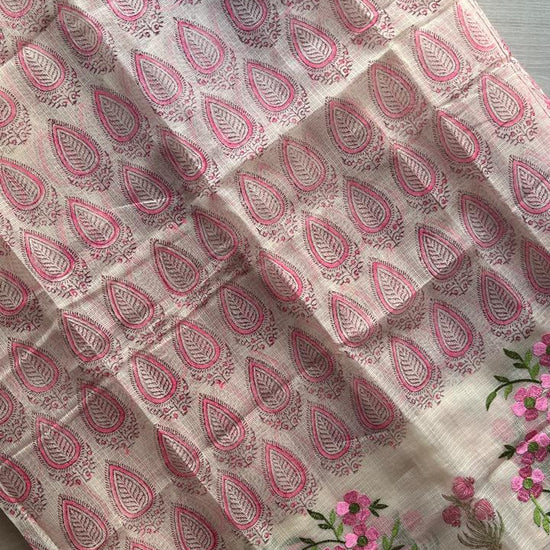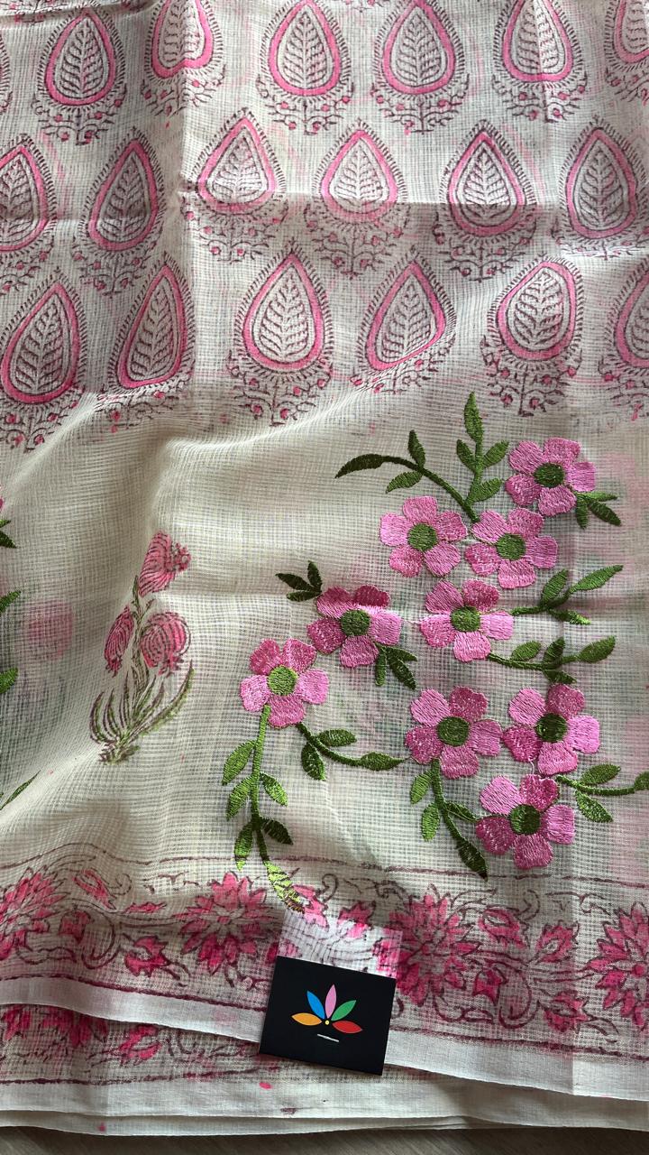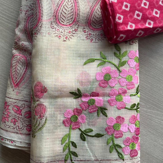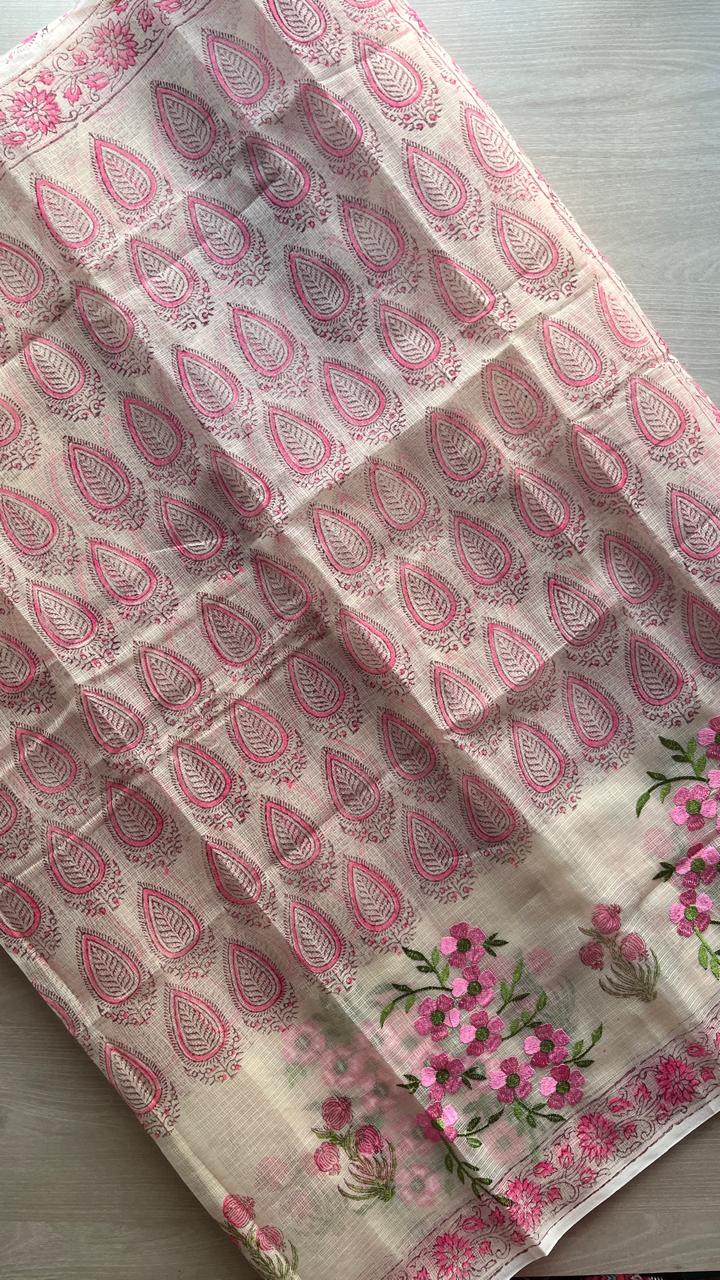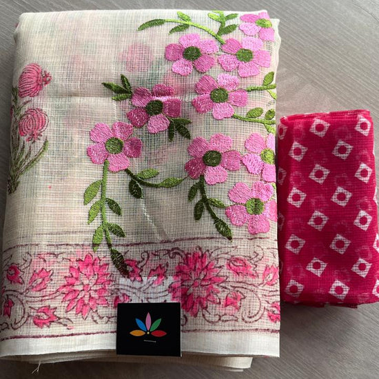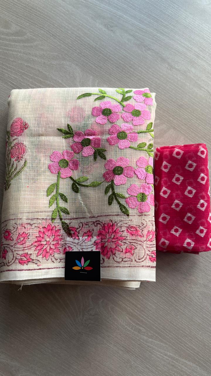 Embroidered Printed Kota Saree with Contrast Blouse-24619