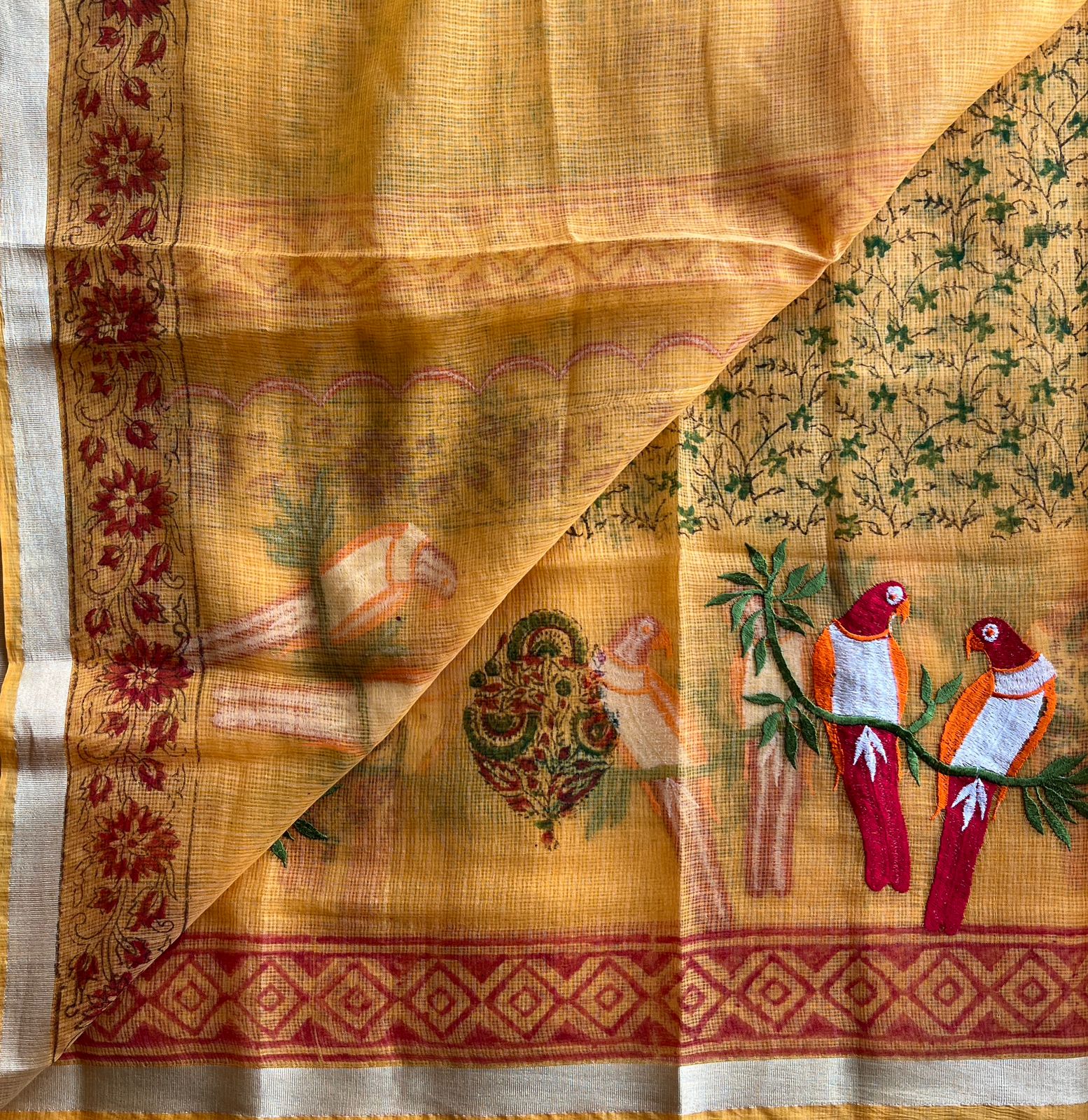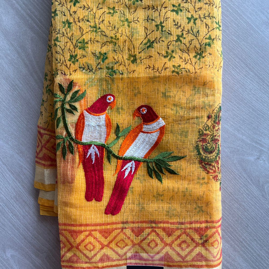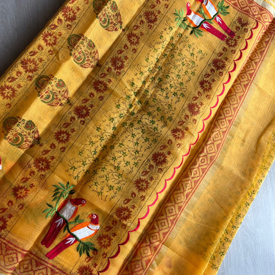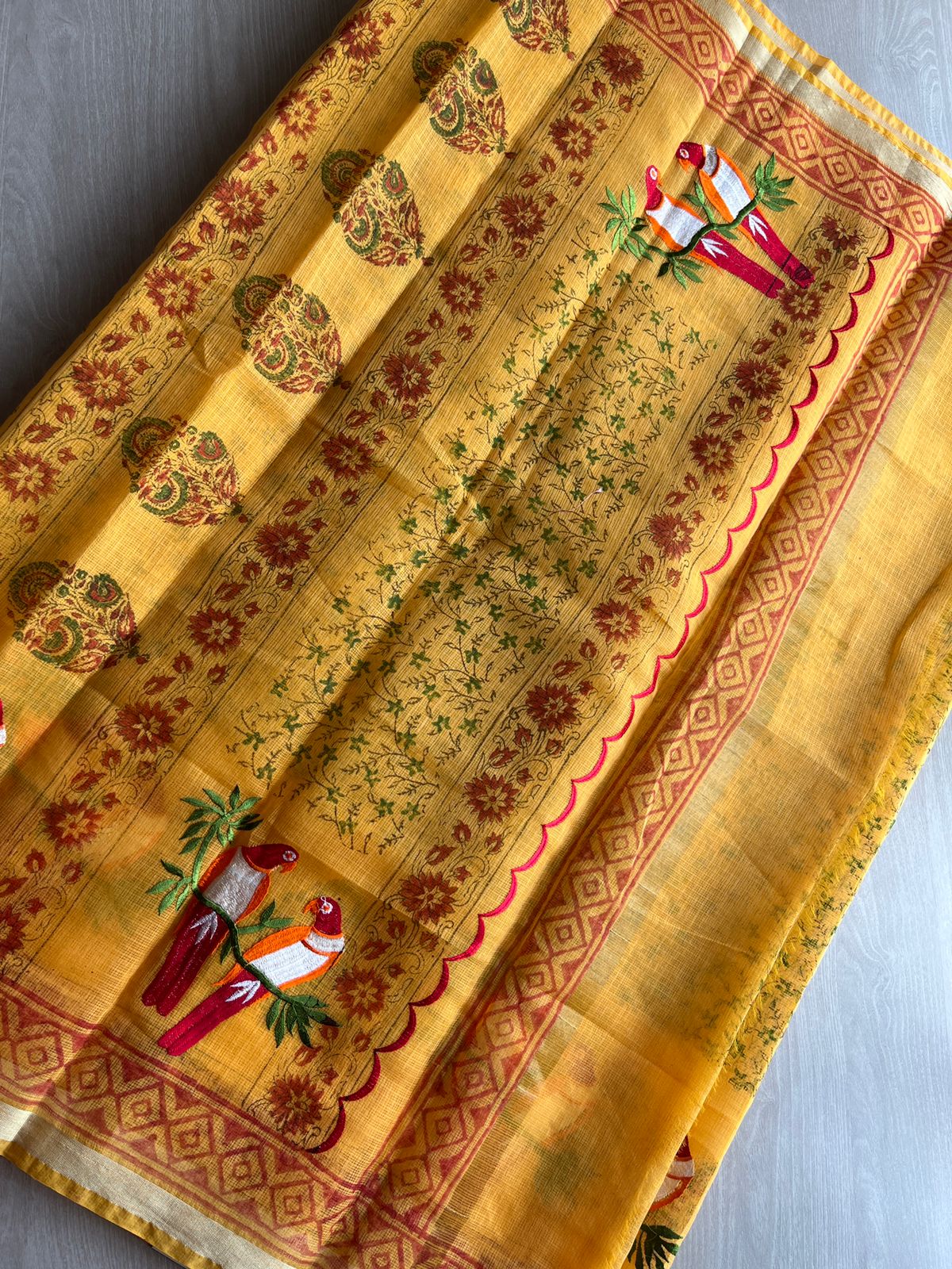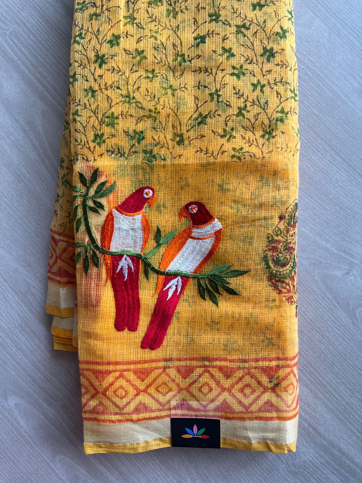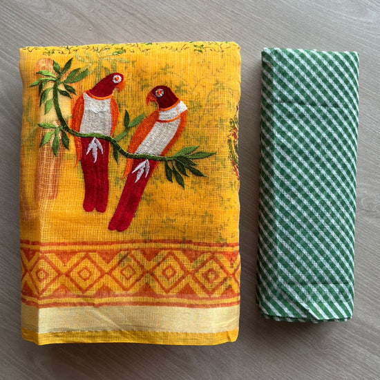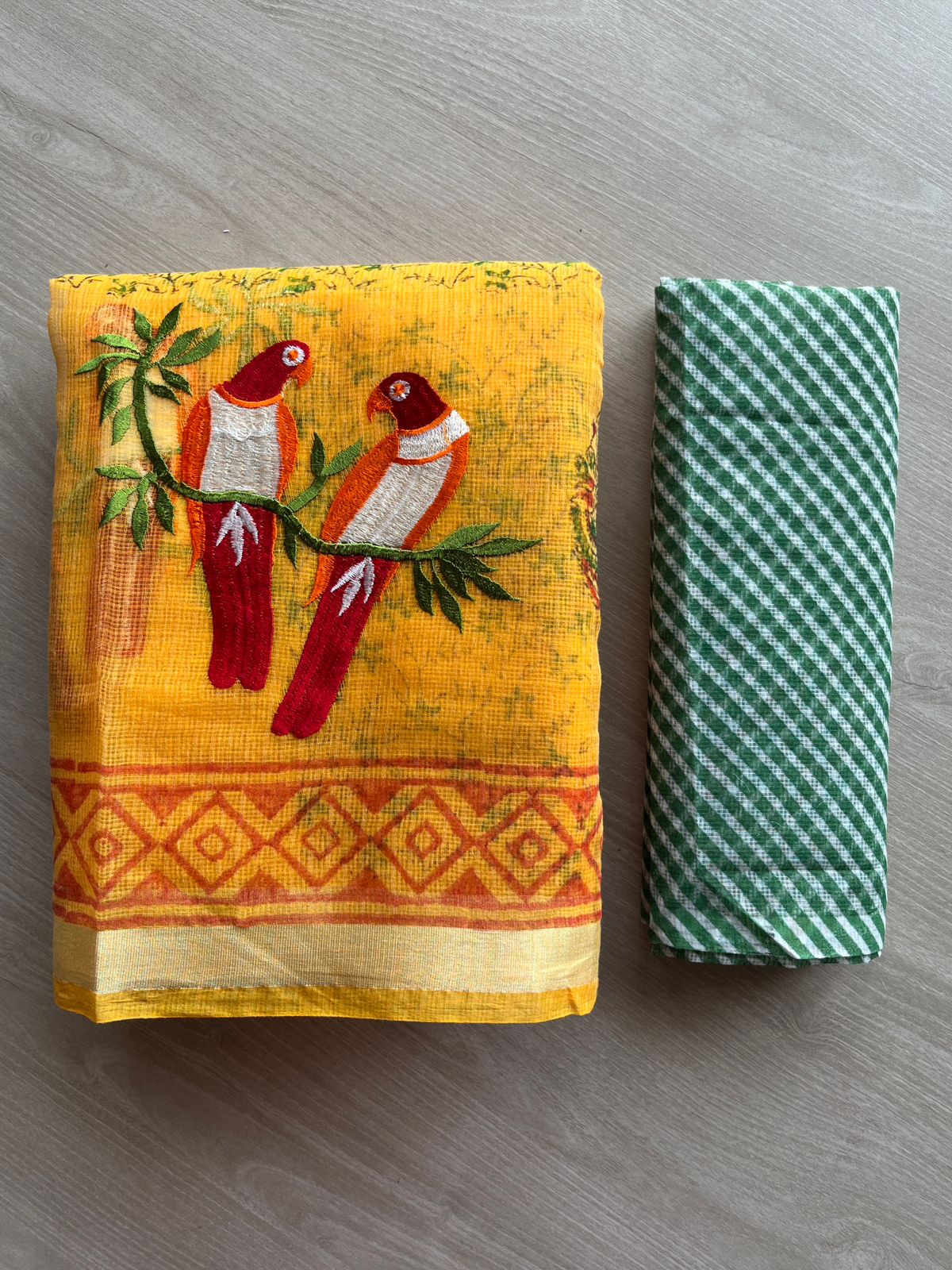 Embroidered Printed Kota Saree with Contrast Blouse-26595