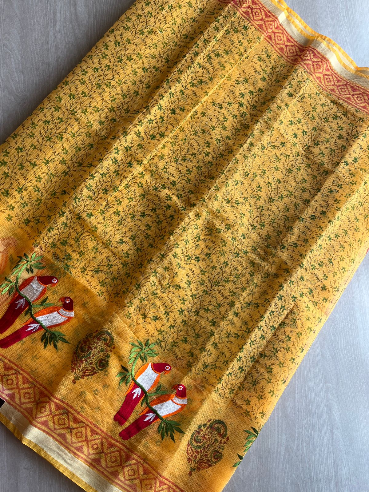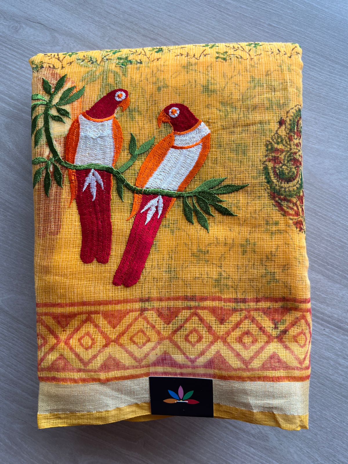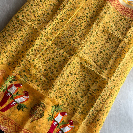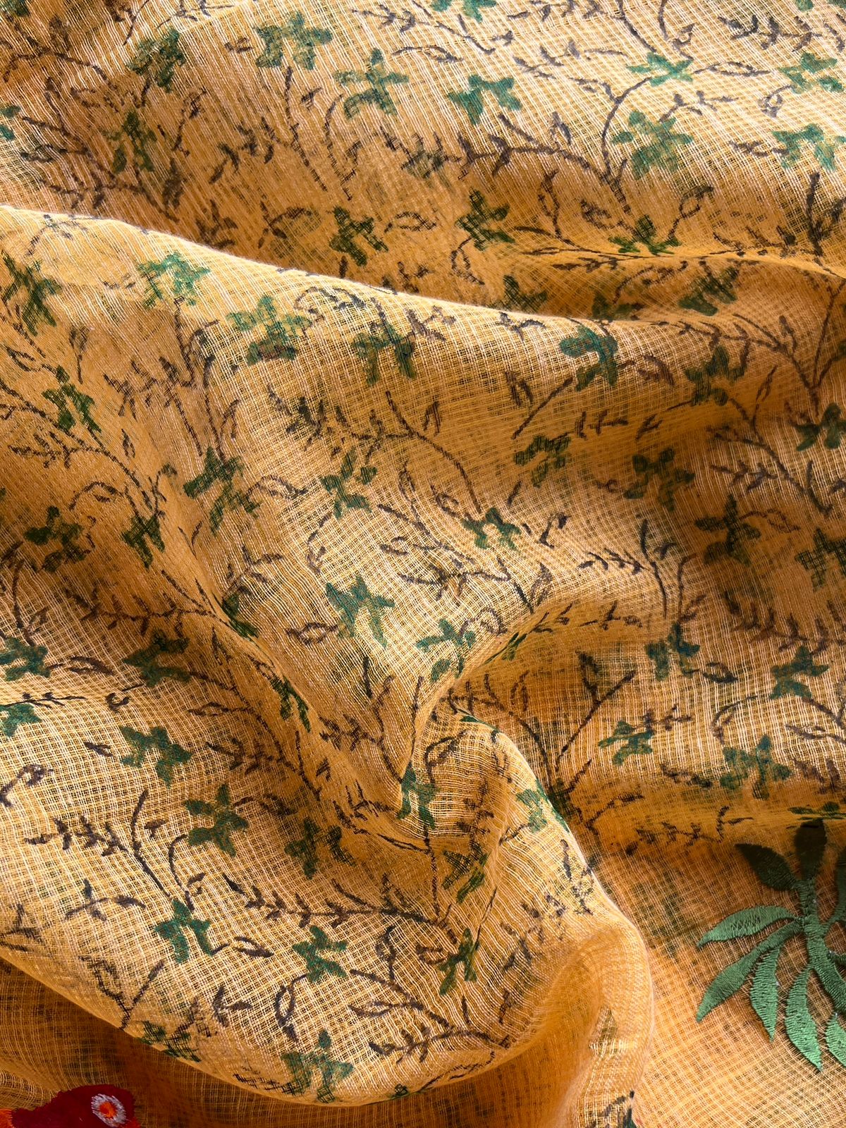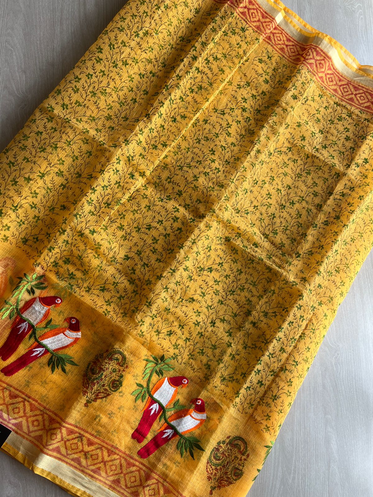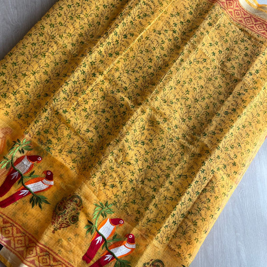 Embroidered Printed Kota Saree with Contrast Blouse-26595