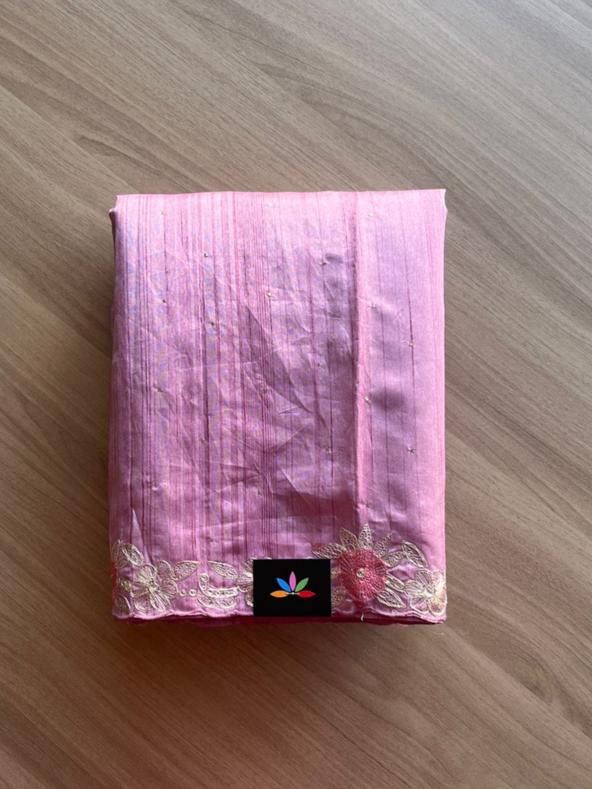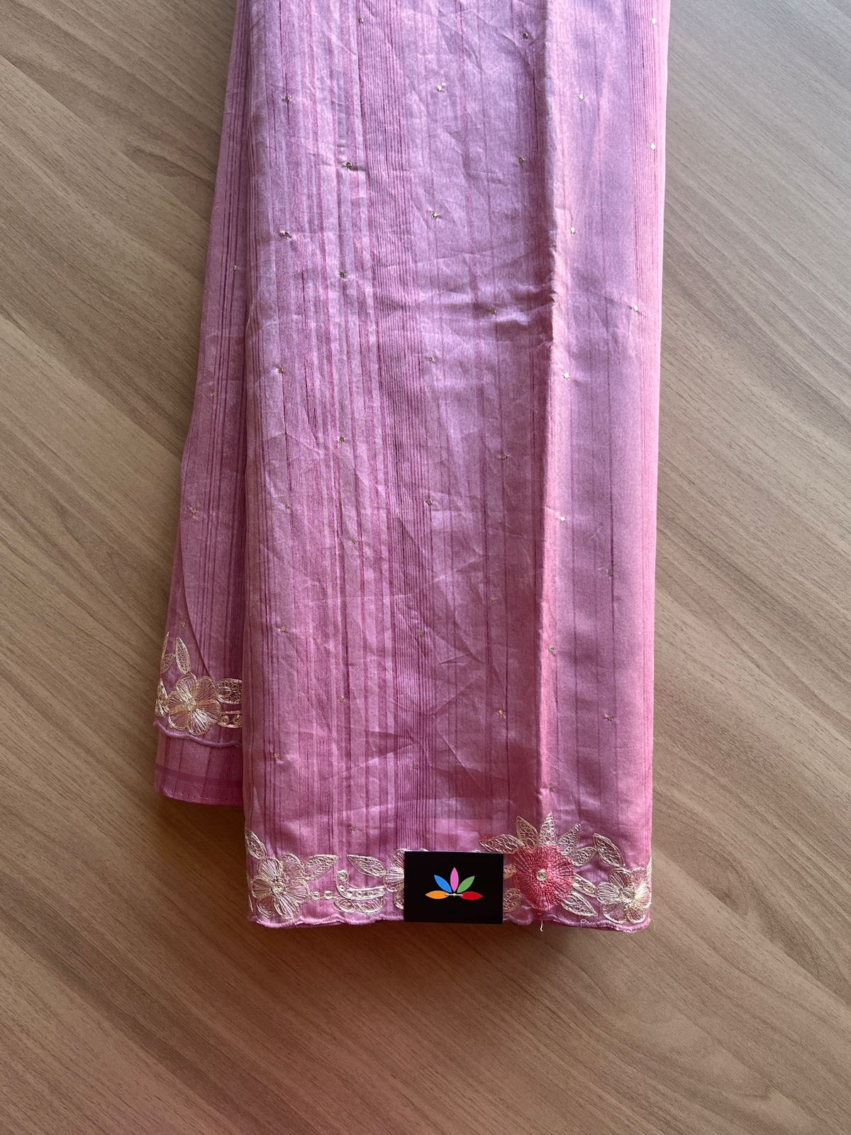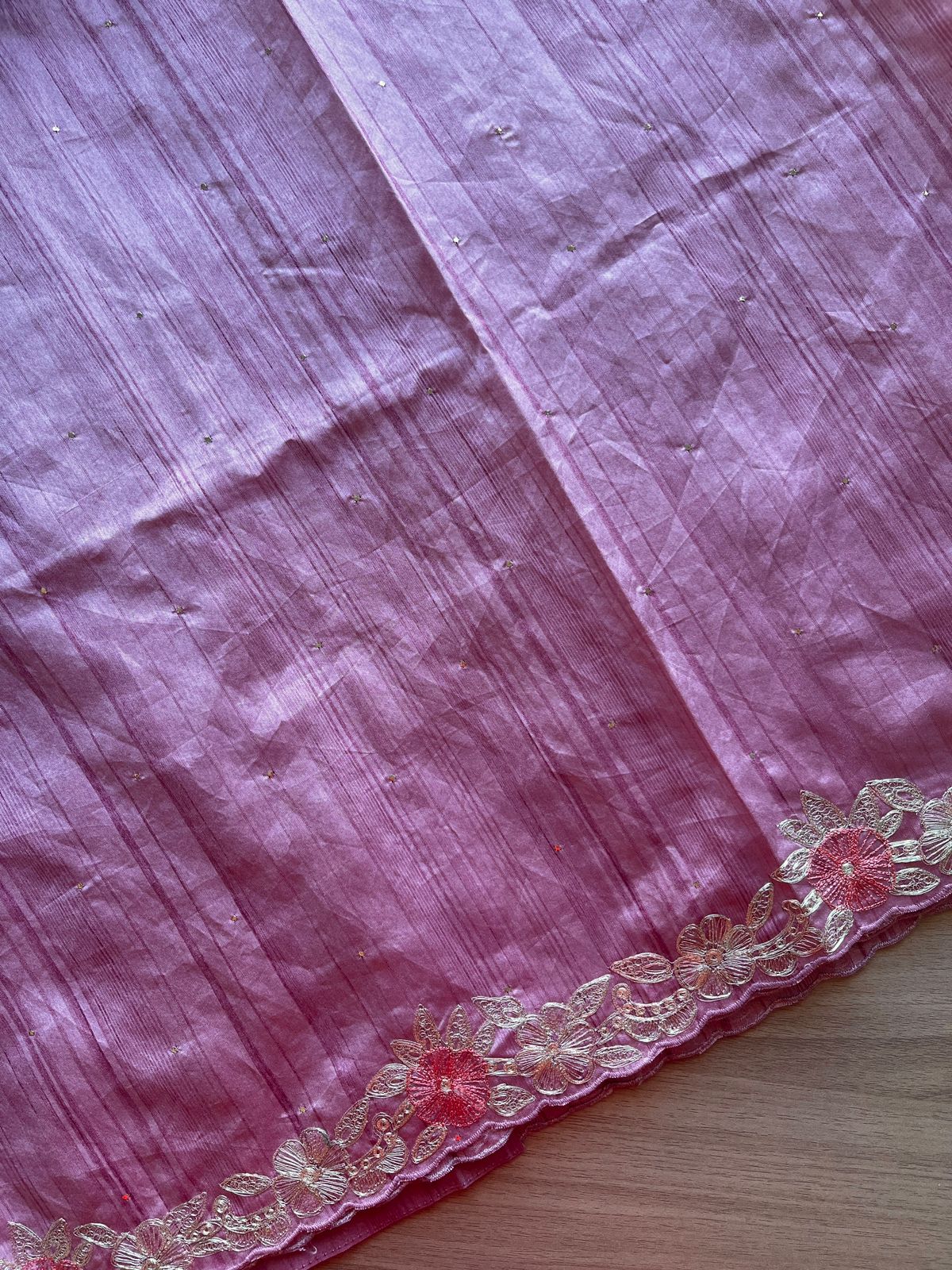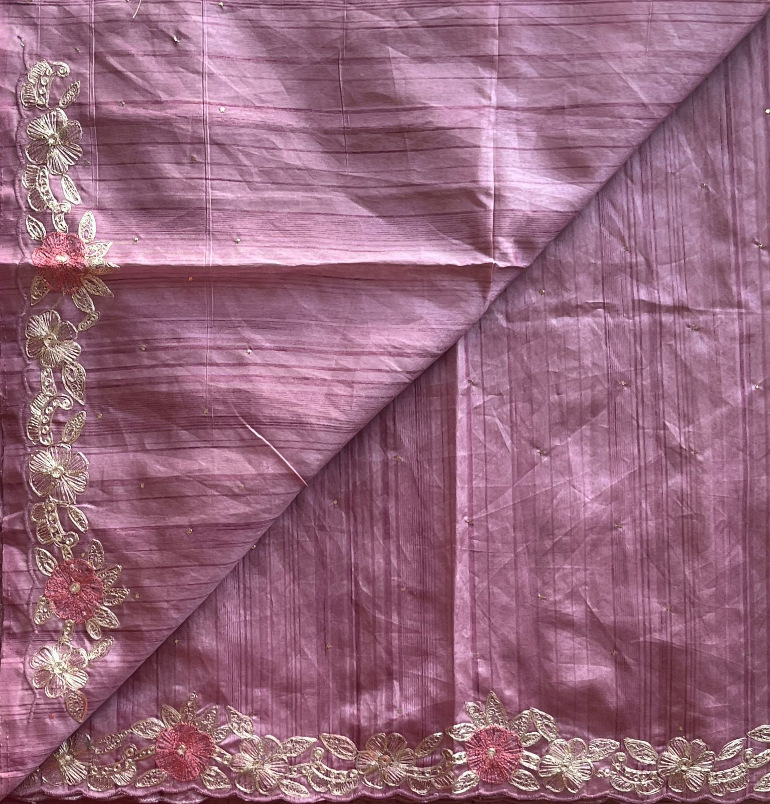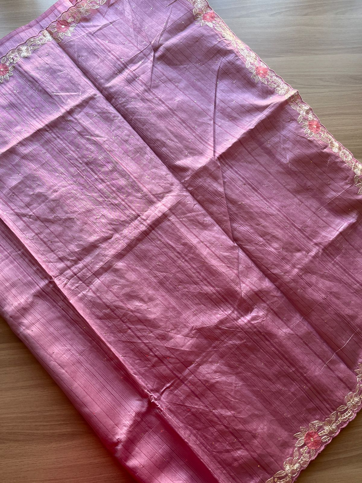 Embroidered Scallop Border Semi Tussar Silk Saree
