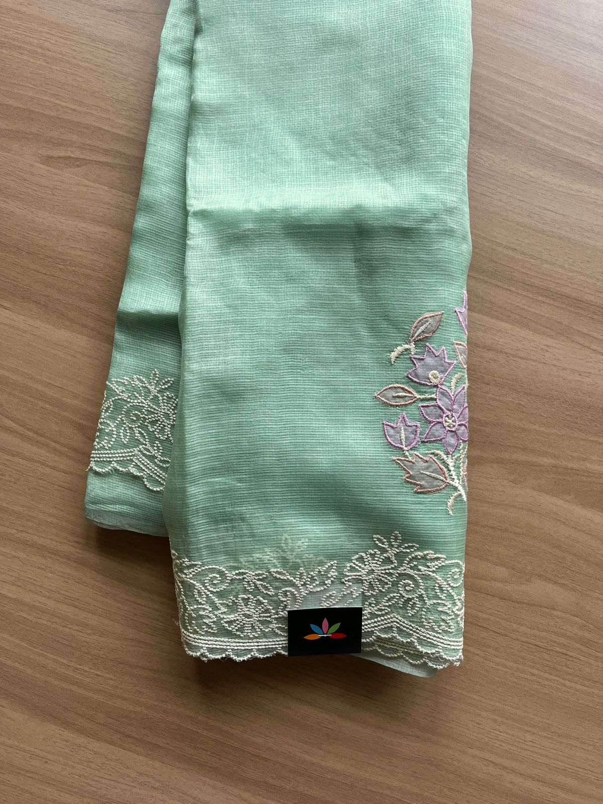 Embroidered Scallop Border Tussar Kota Silk Saree-14763