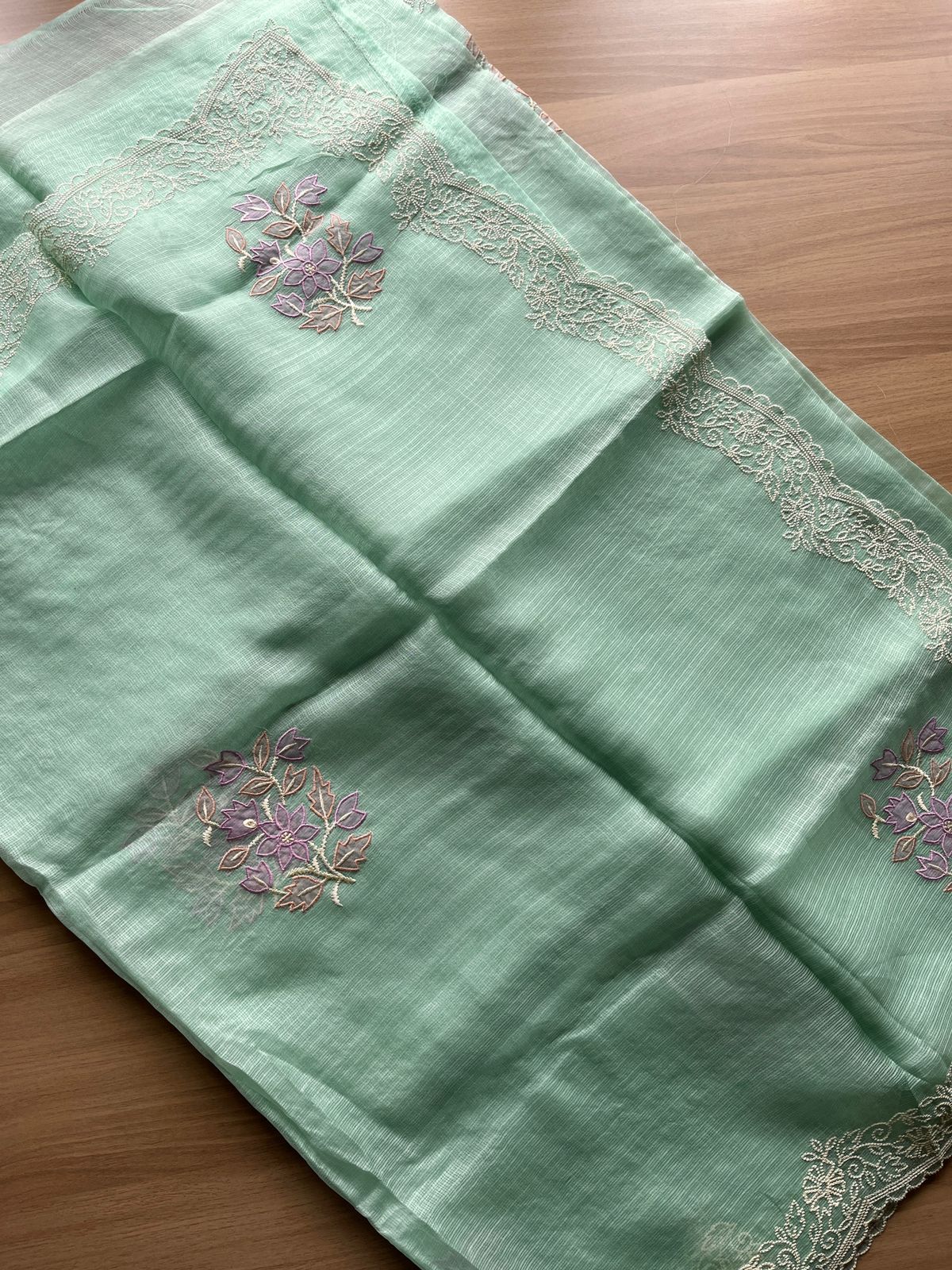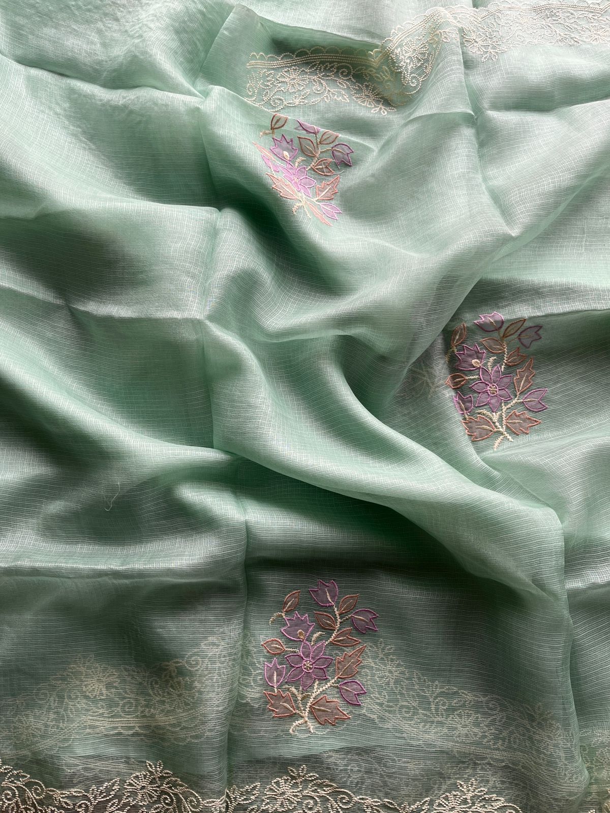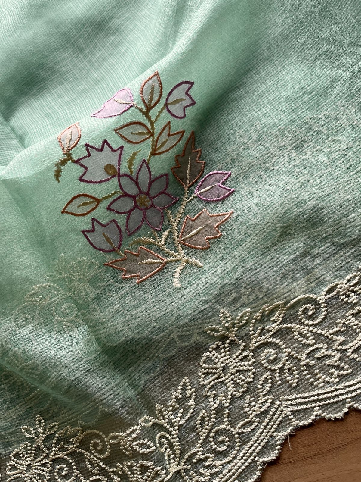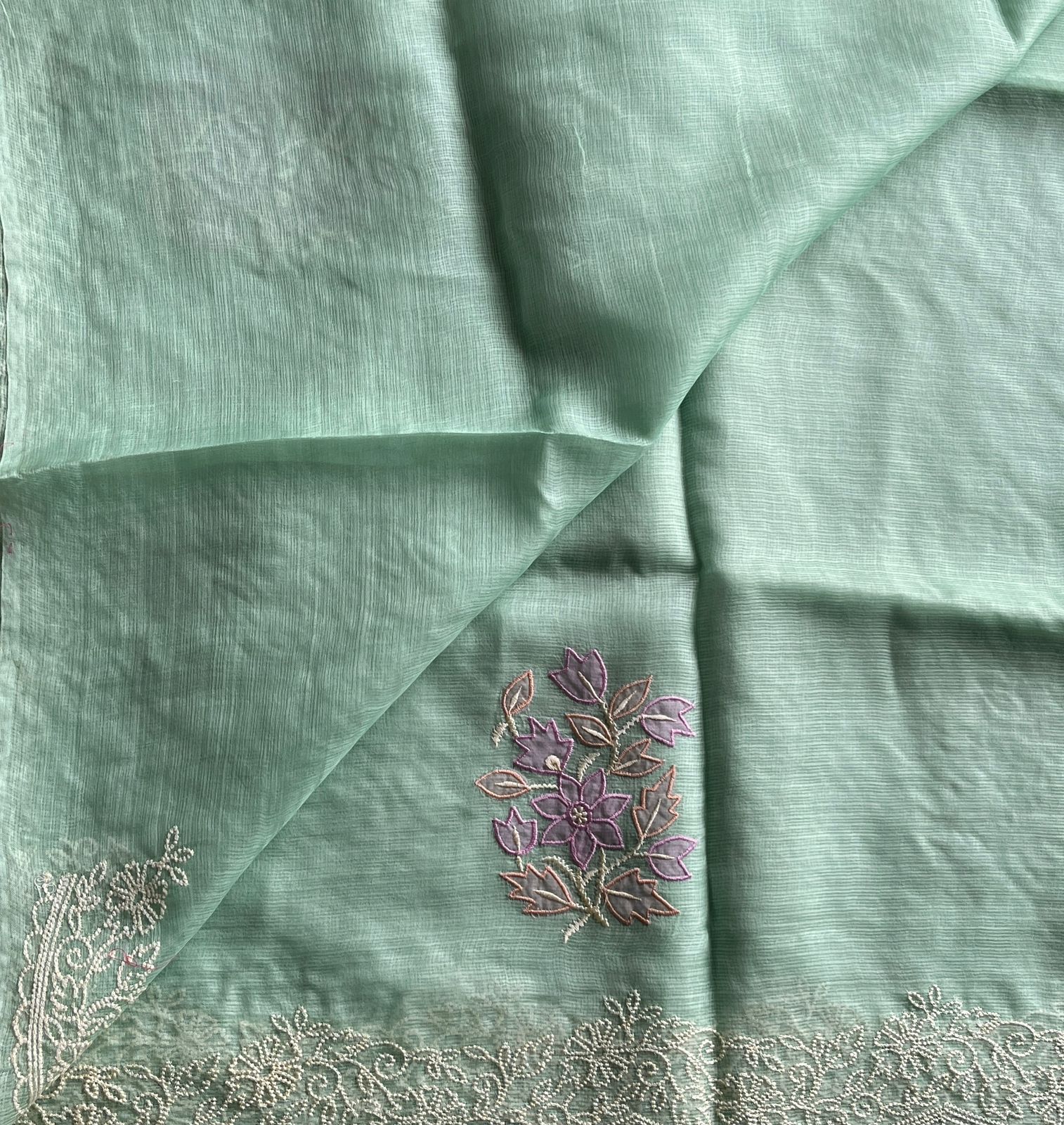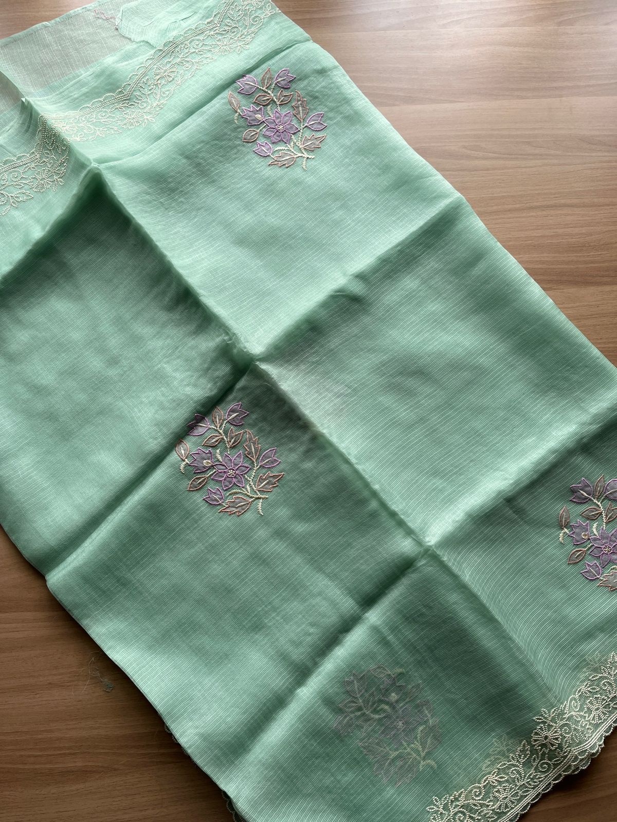 Embroidered Scallop Border Tussar Kota Silk Saree