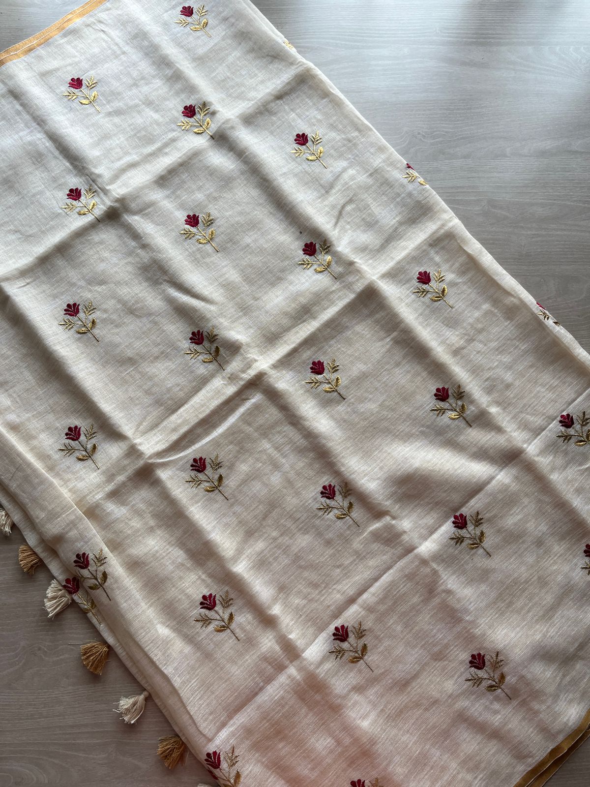 Exclusive Embroidered Linen Saree