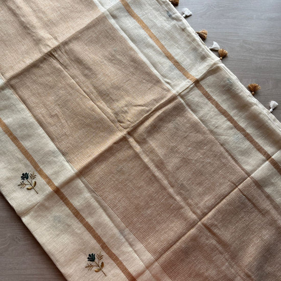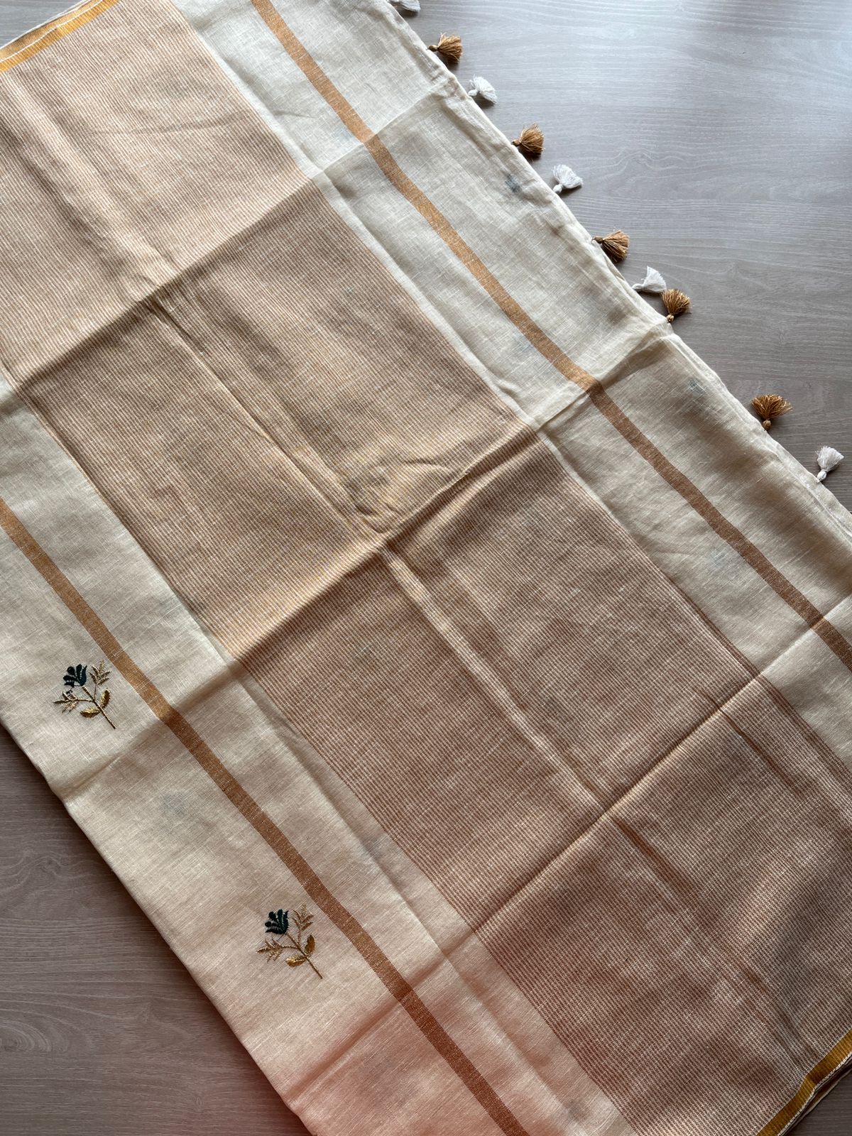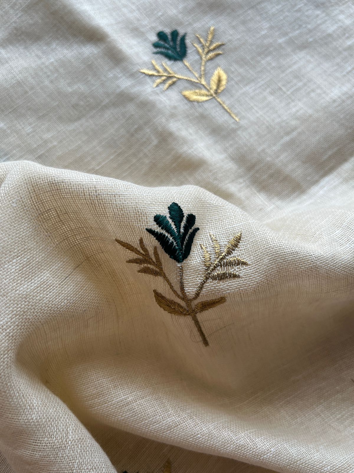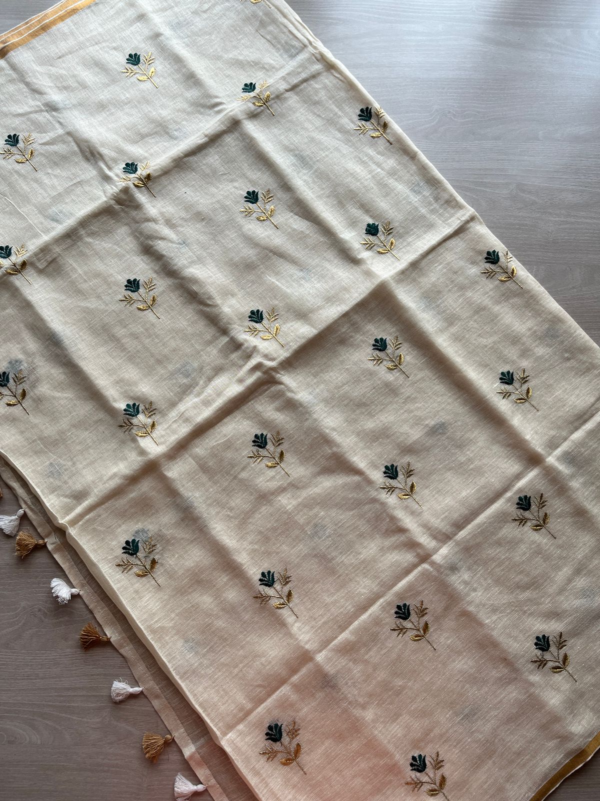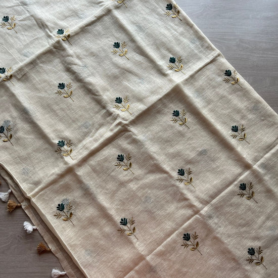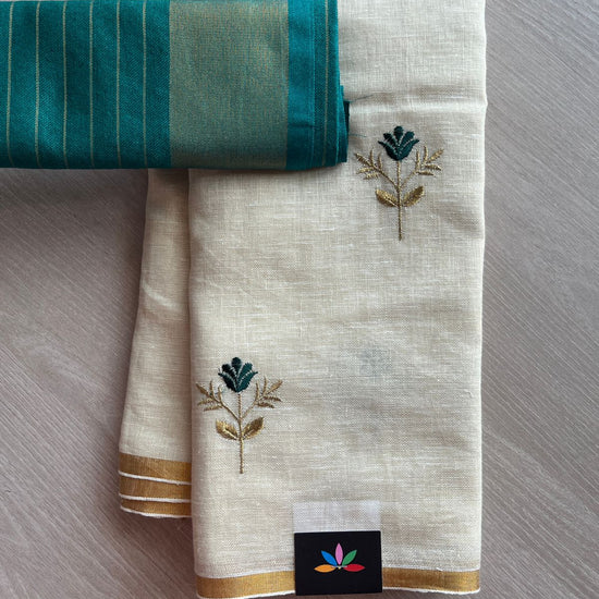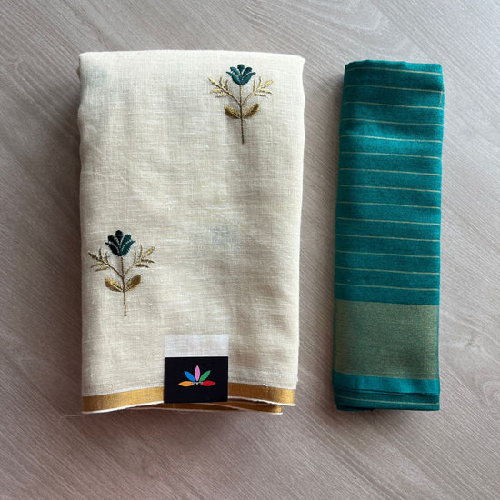 Exclusive Embroidered Linen Saree - 24140 -24141