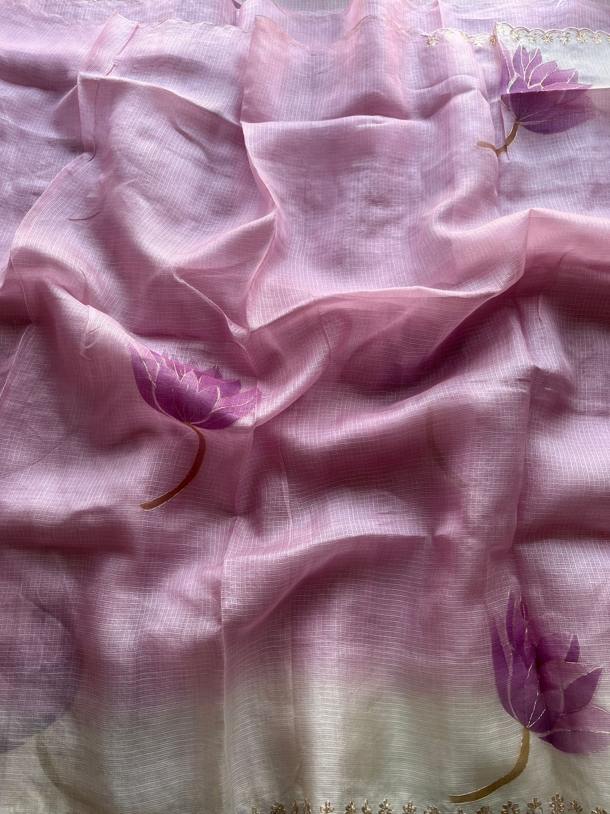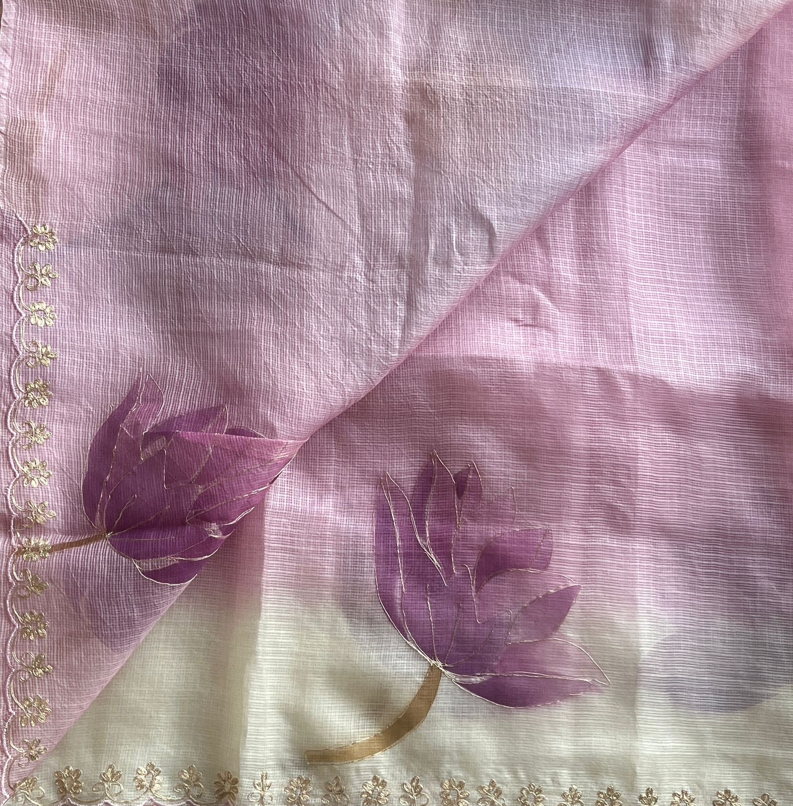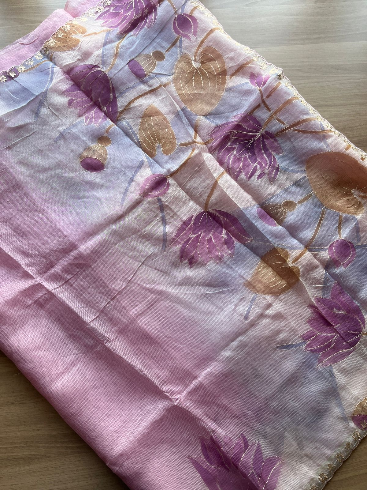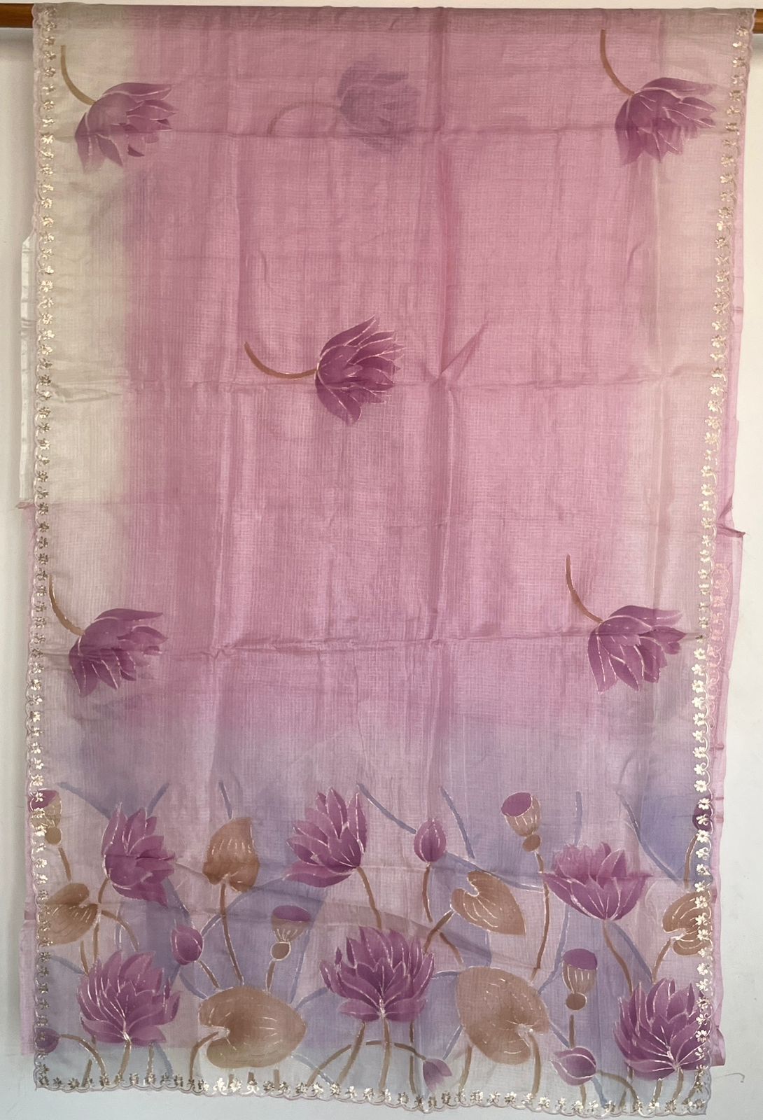 Floral Brush Print with Embroidery Tussar Kota Silk Saree-14786