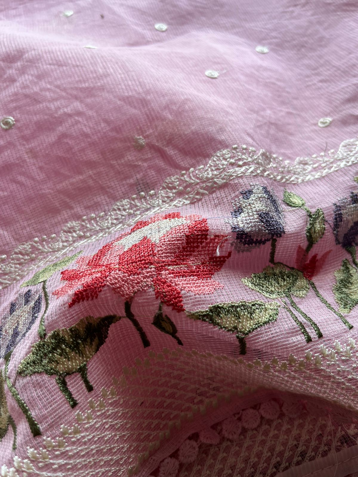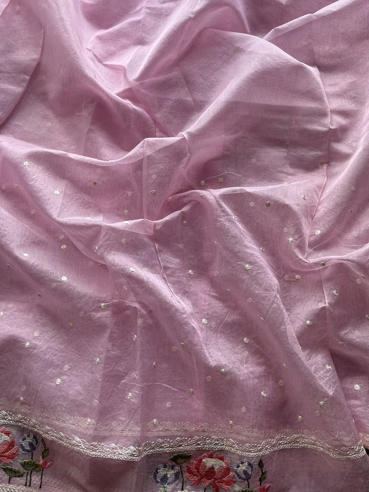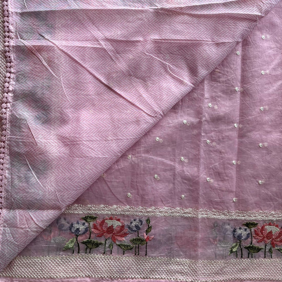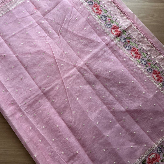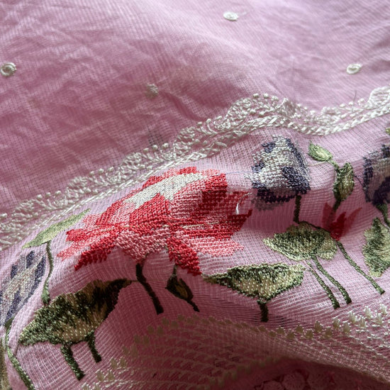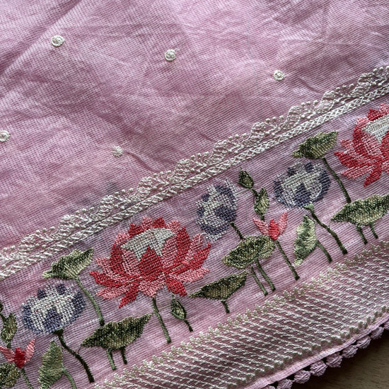 Floral Embroidered Border Semi Kota Check Saree