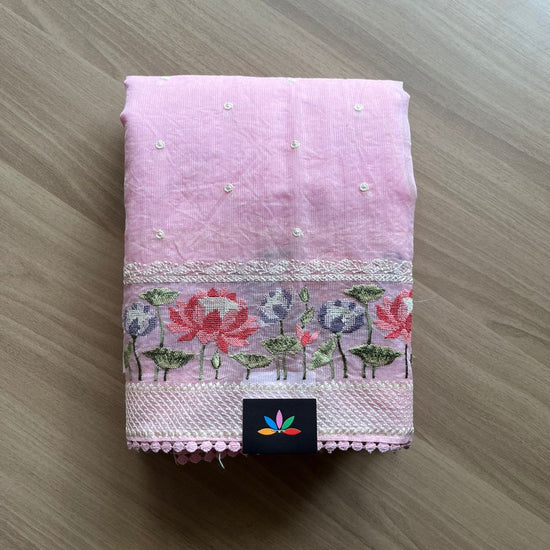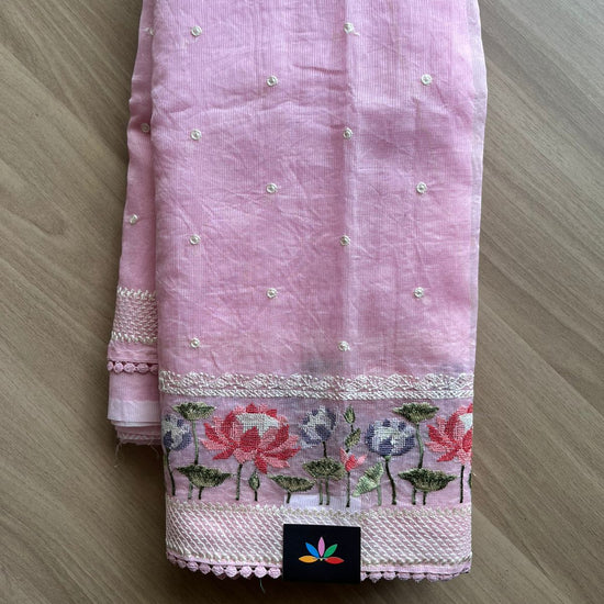 Floral Embroidered Border Semi Kota Check Saree -23370