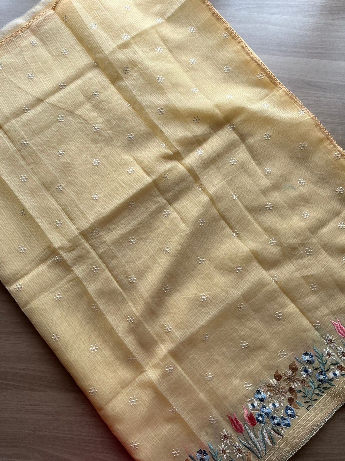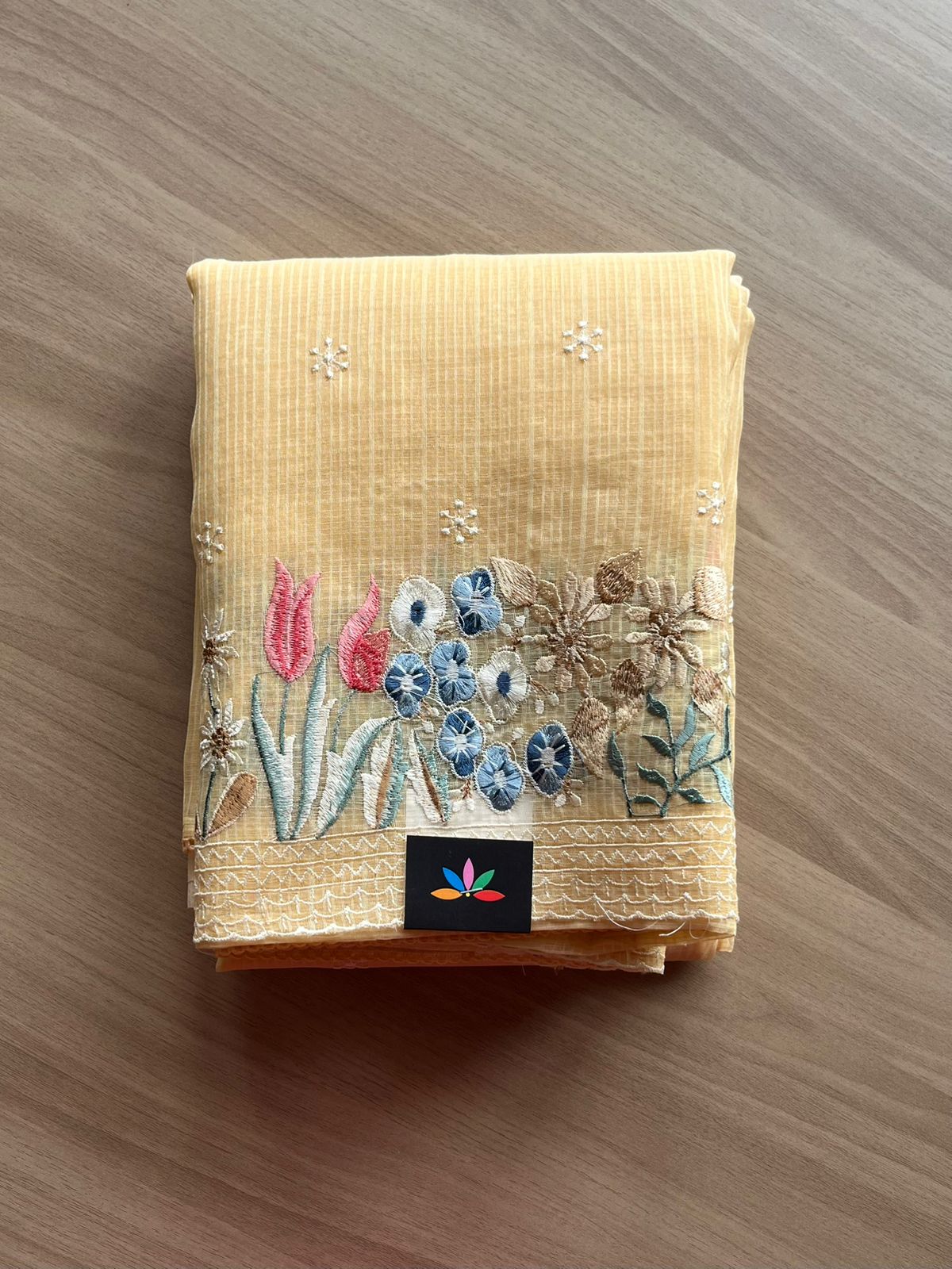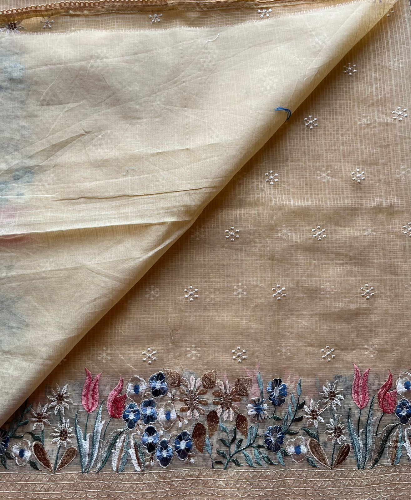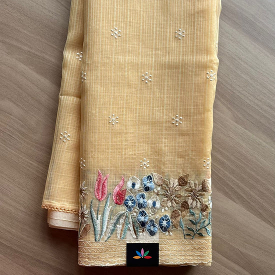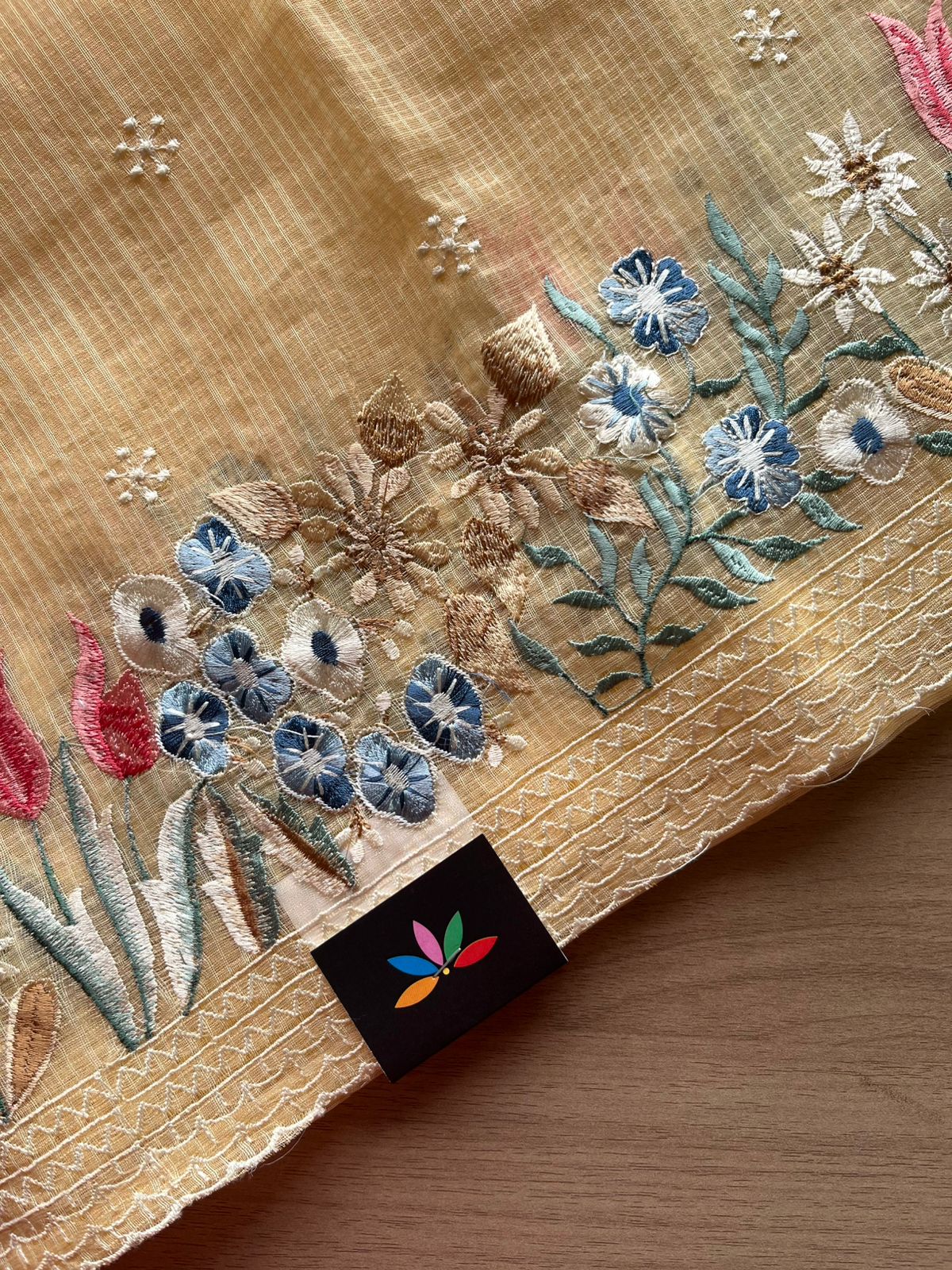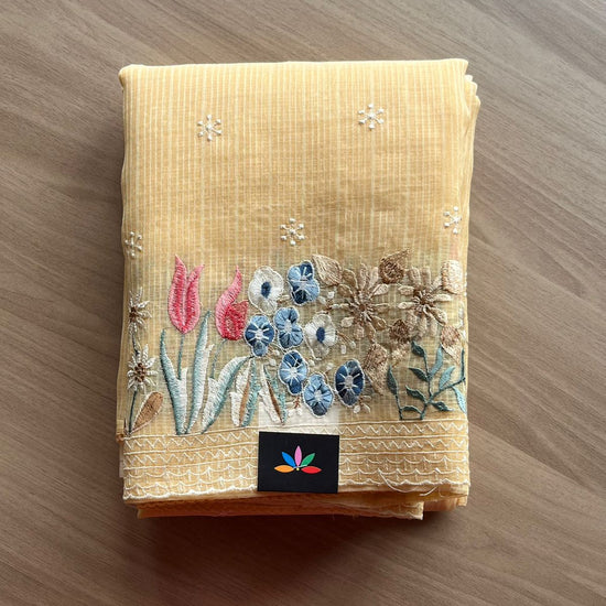 Floral Embroidered Border Semi Kota Check Saree -23400