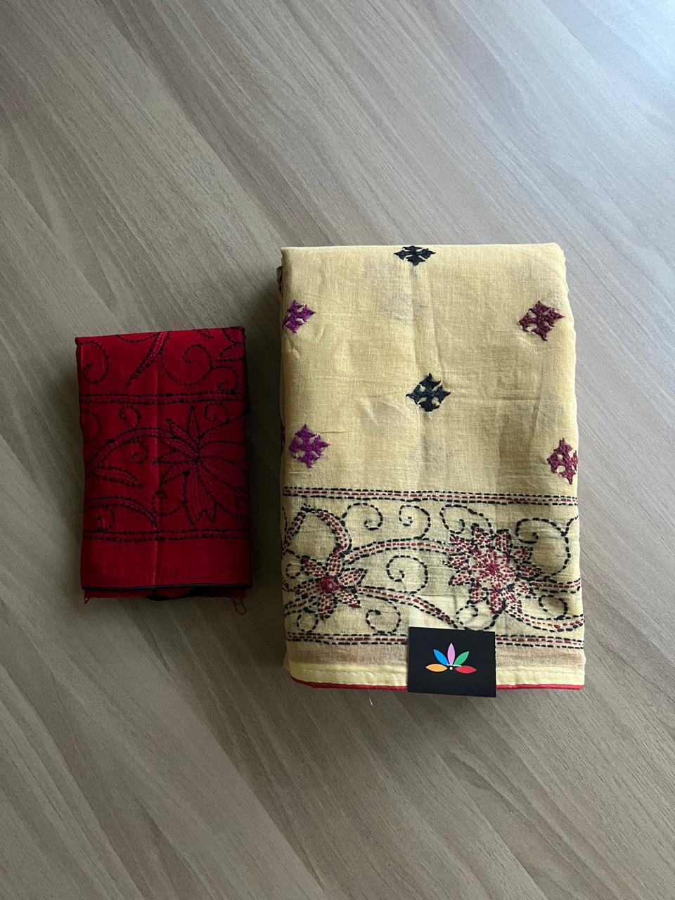 Gujarati Stitch with Kantha Stitch Cotton Saree
