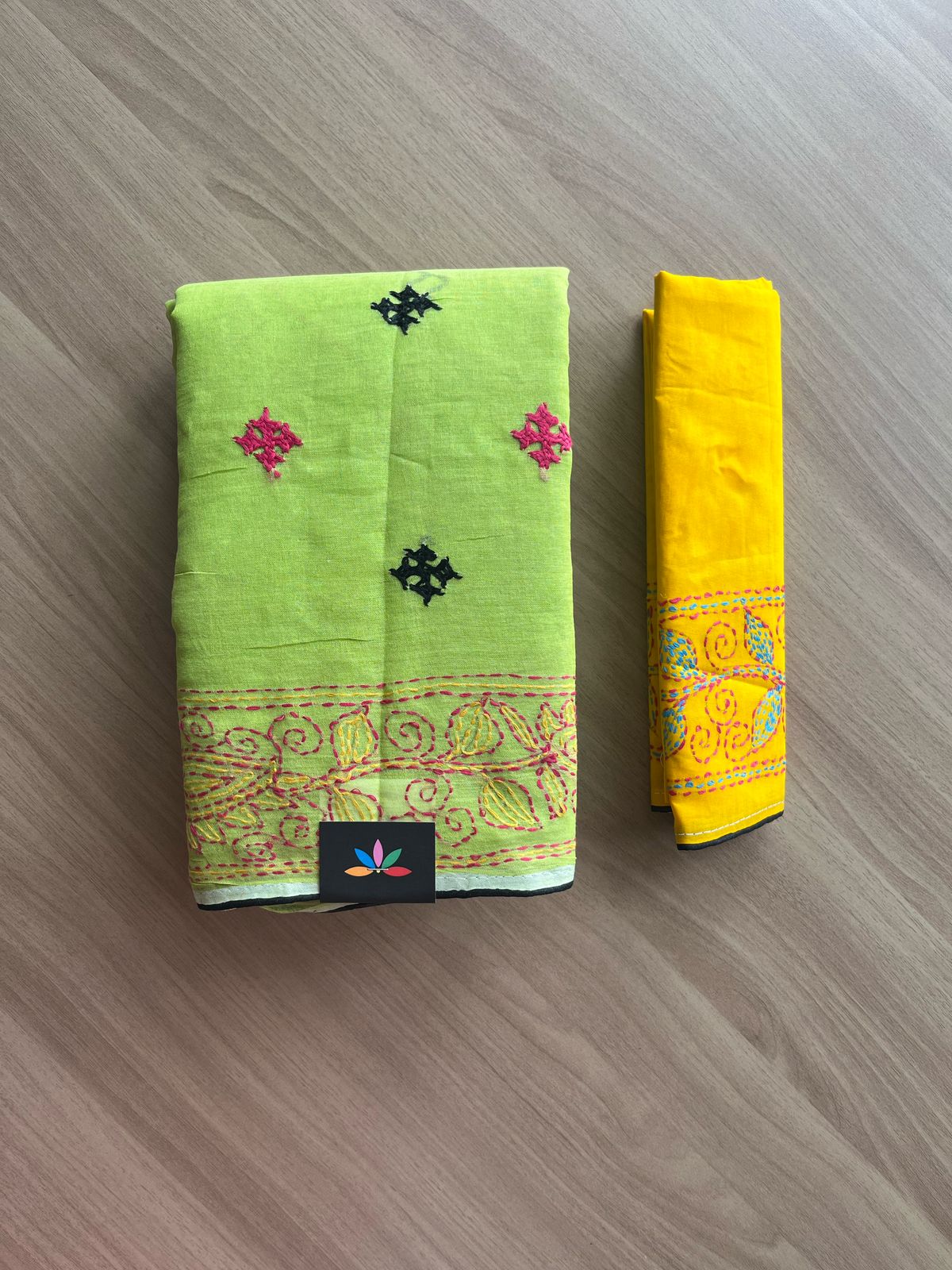 Gujarati Stitch with Kantha Stitch Cotton Saree