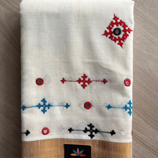 Gujarati Stitch with Kantha Stitch Kerala Cotton Saree